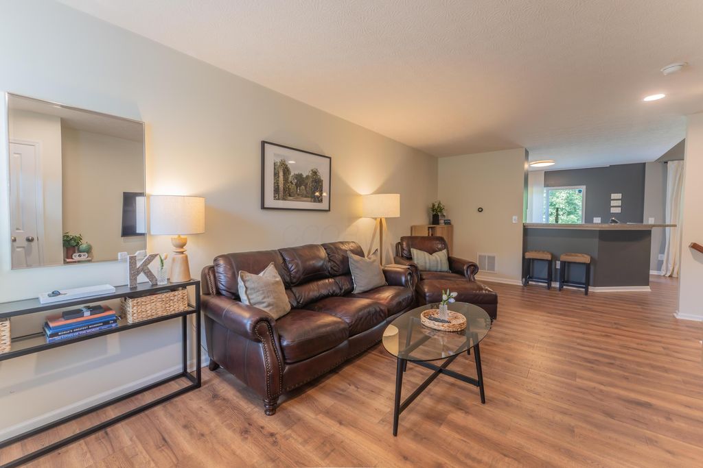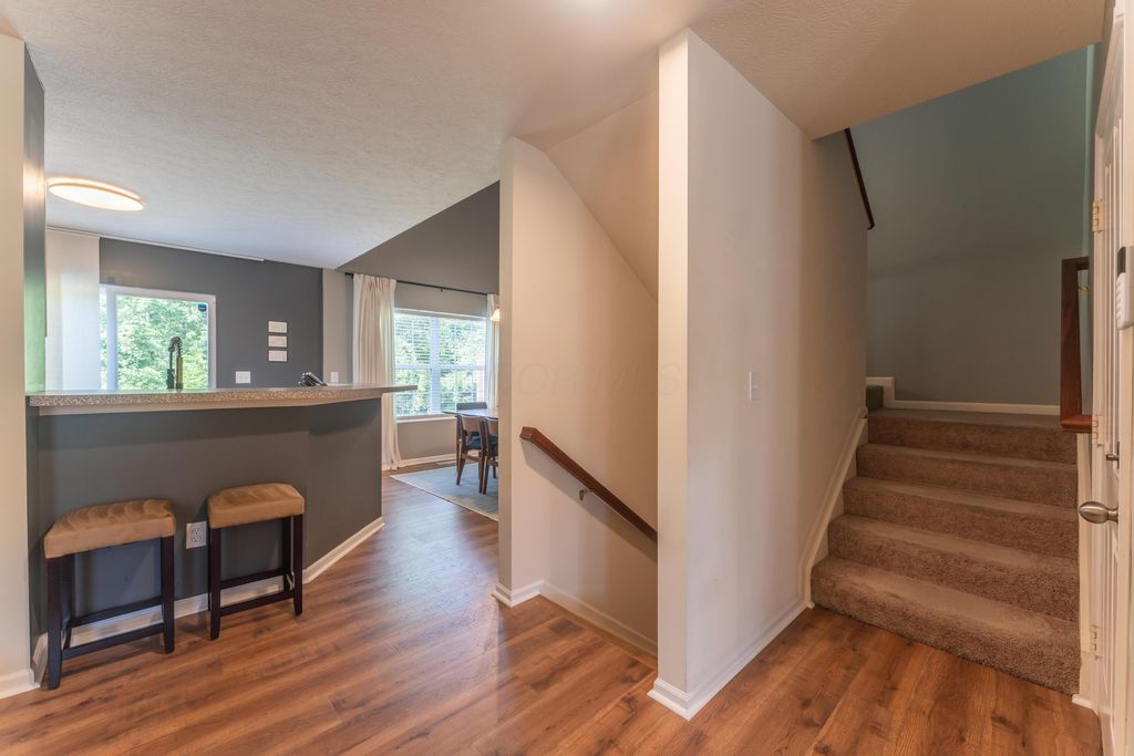 Luxurious, Move-in-Ready Condo Near Easton! Experience the best of Columbus living with this fully updated condo in The Traditions at Rocky Fork. Enjoy a maintenance-free lifestyle in a prime location just minutes from Easton, Hamilton Quarter, and the John Glenn airport. Welcome home to this meticulously updated condo in The Traditions at Rocky Fork, perfectly positioned near the best of Columbus. Step inside and feel instantly at ease with the open-concept layout, where brand-new LVP flooring, installed in 2025, reflects the warm glow of new recessed LED lighting. The living room is optimized for both storage and style with a chic fixed and floating entertainment center. The home flows into a two-story dining area and a well-maintained kitchen, refreshed in 2025 with a new sink, faucet, and light fixture, complemented by newer appliances from 2021. The upper level features two spacious, updated bedrooms and two full bathrooms. The luxurious primary suite includes a walk-in closet and a breathtakingly modernized ensuite bath, finished in 2025 with brand-new porcelain tile, a sleek vanity, and modern lighting, plus a special touch: a Bluetooth speaker and fan. The guest bedroom also shines with new lighting and a convenient new closet system. For additional living space, retreat to the finished basement, featuring a cozy fireplace, extra storage, and a half bath with new fixtures. Enjoy a maintenance-free lifestyle with the included HOA, which provides access to a pool and clubhouse, snow removal, and exterior maintenance. Surrounded by shopping centers, dining, and close to major highways, this well-maintained condo is the perfect place to settle in and enjoy all that Columbus has to offer. Schedule your private tour today!