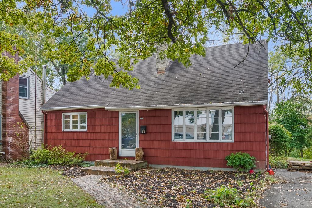 Location, Location, Location! Nestled on one of the most charming streets in the desirable Northwest Neighborhood, this adorable Cape Cod is full of potential and character! Situated on a scenic .22-acre ravine lot, this home offers a rare blend of privacy and natural beauty right in the heart of town. Featuring 4 spacious bedrooms, 2 on the main level and 2 upstairs, this layout provides flexibility for a variety of living arrangements. The home includes 1 full bath and a half bath rough-in upstairs, ready for your personal touch. Original hardwood floors, a cozy family room with fireplace, and a bright eat-in kitchen add to the home's warm, inviting charm. The basement boasts two finished rec rooms, perfect for a home office, playroom, or additional living space, along with a laundry area. Step outside to a peaceful deck overlooking the wooded ravine lot, ideal for relaxing evenings or entertaining guests.