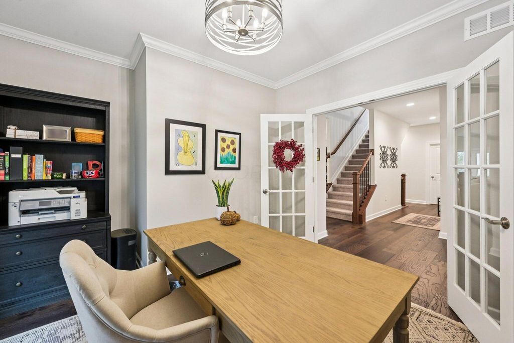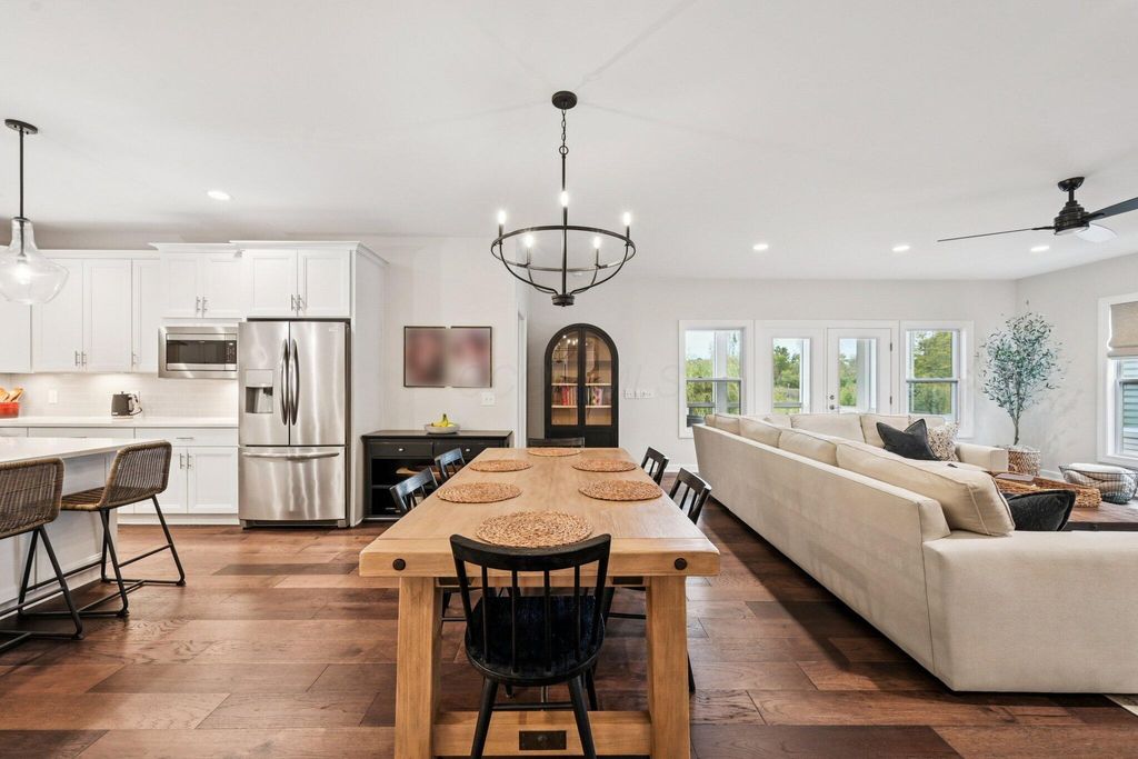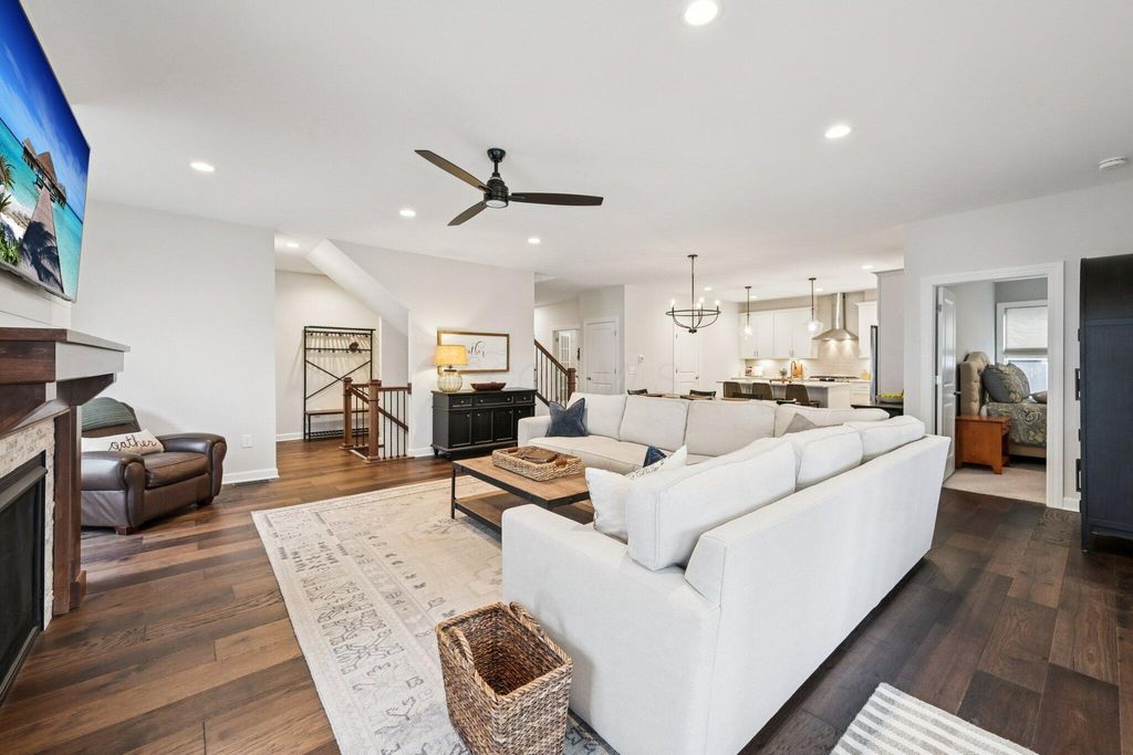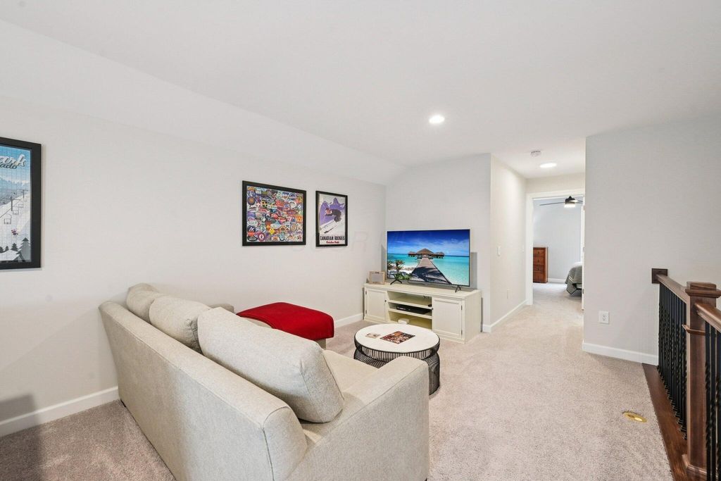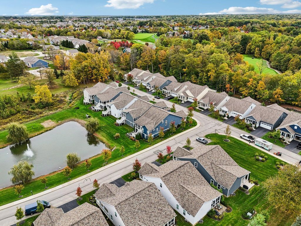 Welcome Home! Built in 2021, this beautiful 4-bedroom, 4-bath home offers the perfect blend of modern design, comfortable living, and scenic surroundings. The inviting great room features a cozy fireplace and large windows that fill the space with natural light while showcasing stunning views of the pond and its peaceful fountain. The kitchen is a showstopper, with crisp white cabinetry, stainless steel appliances, and plenty of counter space for cooking, entertaining, or casual dining. Step out to the screened porch for morning coffee or unwind on the lower-level patio overlooking the water"”ideal spaces for relaxing or hosting friends. The finished walkout lower level adds exceptional flexibility with a full bathroom, plenty of room for a media or fitness area, and abundant storage space. Upstairs, you'll find a spacious loft that's perfect for a home office, play area, or second living space, along with the fourth bedroom and a full bathroom. This home offers the perfect combination of function and style. Located in a desirable community convenient to Powell and Dublin, you'll enjoy easy access to shopping, dining, and parks. With its modern finishes, beautiful pond views, and like-new condition, this home is truly move-in ready and designed for the way you live today