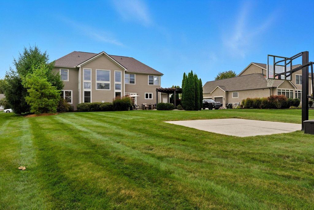 This beautifully maintained home offers 4 bedrooms, 4 full bathrooms, and a half bath. Enjoy brand-new carpeting on the second level and gleaming hardwood floors throughout the main level. The sunlit great room seamlessly flows into the open kitchen and dining areas, creating an inviting space for everyday living and entertaining. You'll find a dedicated home office, plus a versatile flex space perfect for a playroom, studio, or additional office. The mudroom, located just off the three-car garage, includes ample storage and washer/dryer hookups for added convenience. The finished basement extends your living space with a family room, workout area, game room, and a second laundry area. Step outside to a private patio, ideal for entertaining, and your very own basketball court. Recent updates include a new roof (within the last 3 years), as well as a newer stove, dishwasher, and refrigerator (all updated within the past 2 years). Close proximity to Alum Creek State Park, top-rated schools, shopping, and more"”this home has it all!