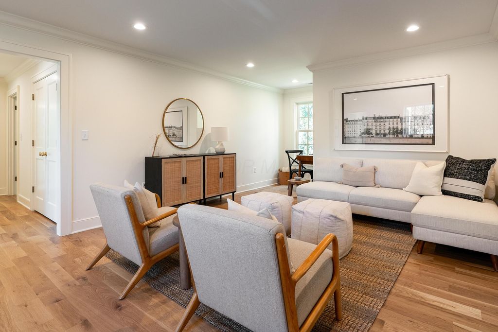 South of Lane New Build by Rex Fine Homes. Experience timeless craftsmanship and modern luxury in this newly built home by Rex General Contracting, ideally located South of Lane in Upper Arlington. Designed with exceptional detail, the home features extensive millwork and custom cabinetry throughout, paired with beautiful hardwood floors that flow through the open floor plan. The hard-to-find first-floor primary suite offers ease and convenience, while the upper and lower levels provide abundant living space for family and entertaining. The finished lower level includes a spacious rec room, bar, 5th bedroom, and exercise room. Outdoor living is elevated with a screened porch on the east side and a covered porch on the west, perfect for morning coffee or evening gatherings. Walk to the shops, restaurants, and conveniences of Lane Avenue while enjoying the comfort of a thoughtfully designed, custom-built home.