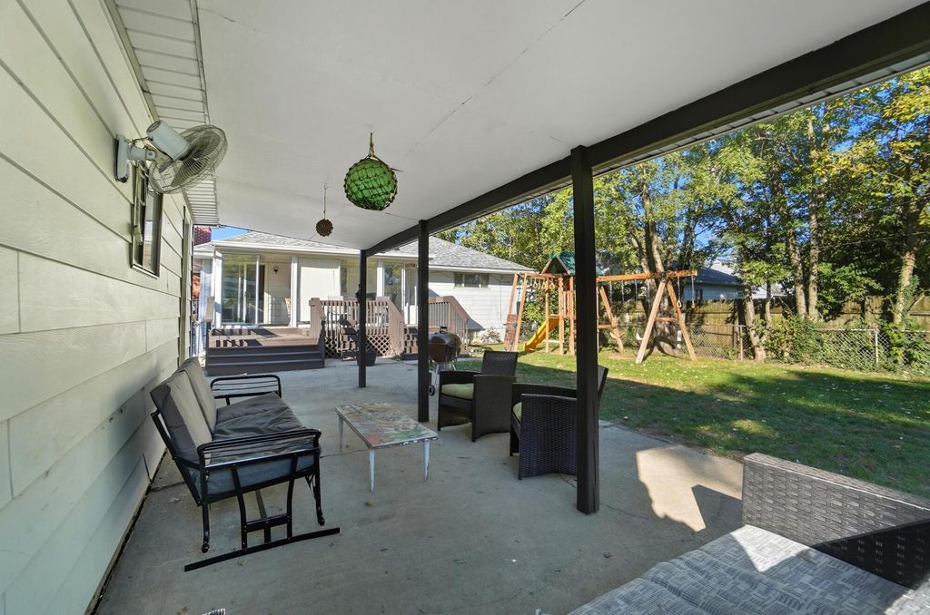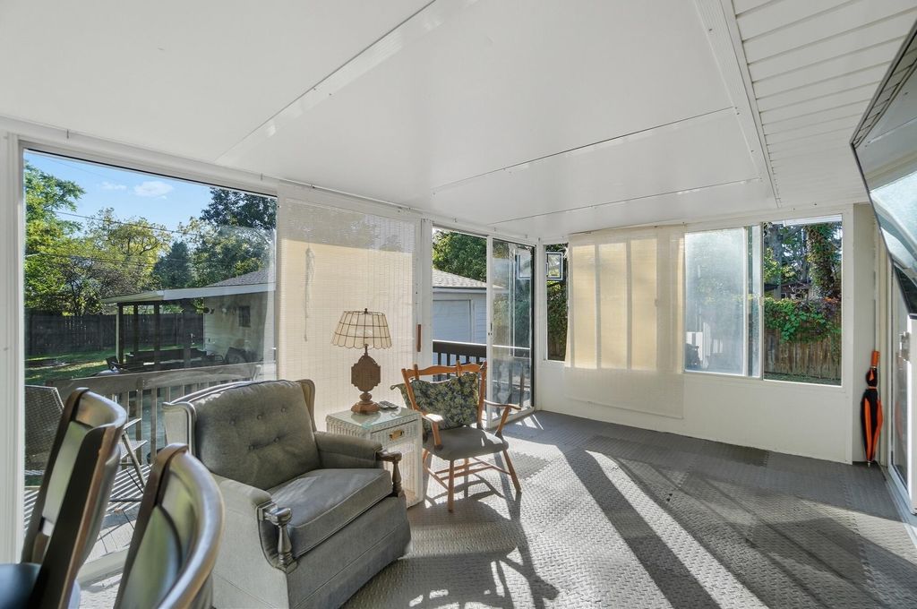 Welcome Home! OPEN HOUSE - SAT. 10/18 and SUN. 10/19. Adorable 3 Bed, 1 Bath Home with Full Basement, Oversized 2 Car Garage and plenty of room Inside & Outside to enjoy. The Beautiful front Living room has lots of Natural Light and a lovely Stone Fireplace. Hardwood floors throughout!!! Updated Kitchen with Gas stove and plenty of Storage. Head out to the 3-Season Room to watch the Game with Family & Friends or just sit back and read a book! Outside you will find several spaces to enjoy the weather! A large deck on the front of the home, as well as a deck on the back of the home and a cozy lounge area along with a firepit for those cool fall nights. This home has so much storage and space for those projects with the Oversized 2 Car Garage and Full Basement. The basement is partially finished to use as a Flex Room with beautiful Wood Panel walls. Roof is 2 years old!!! Washer & Dryer Convey. This is one you don't want to miss!