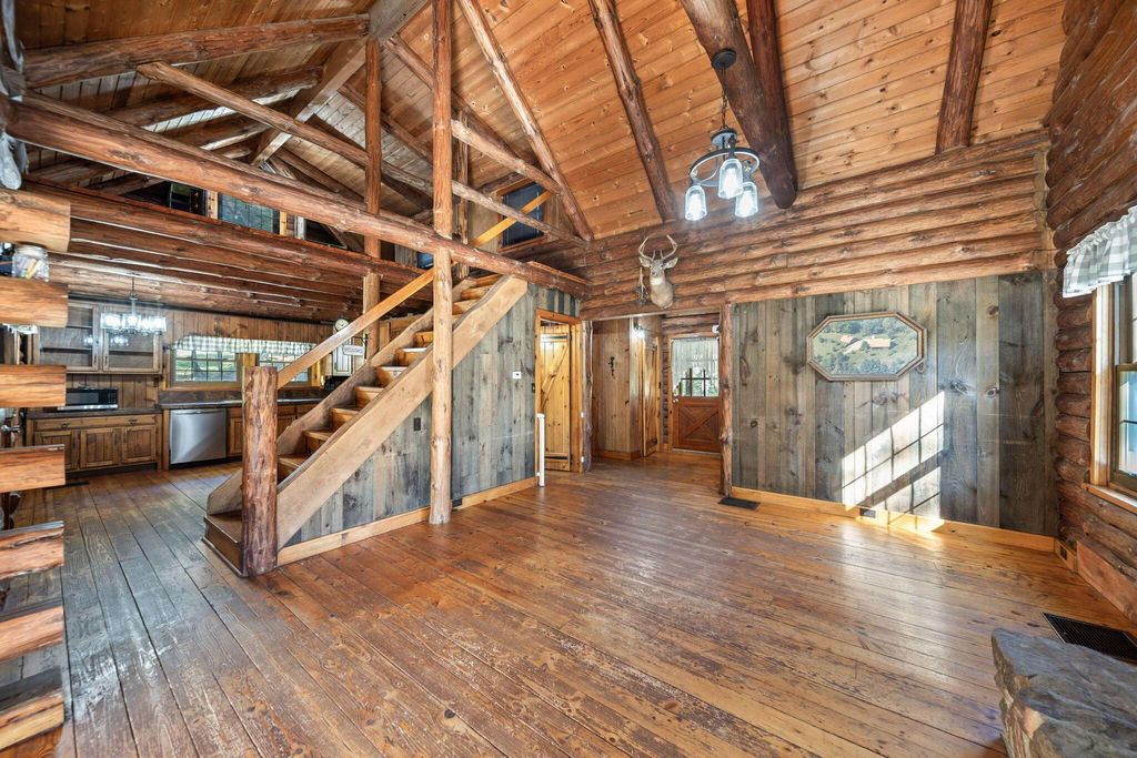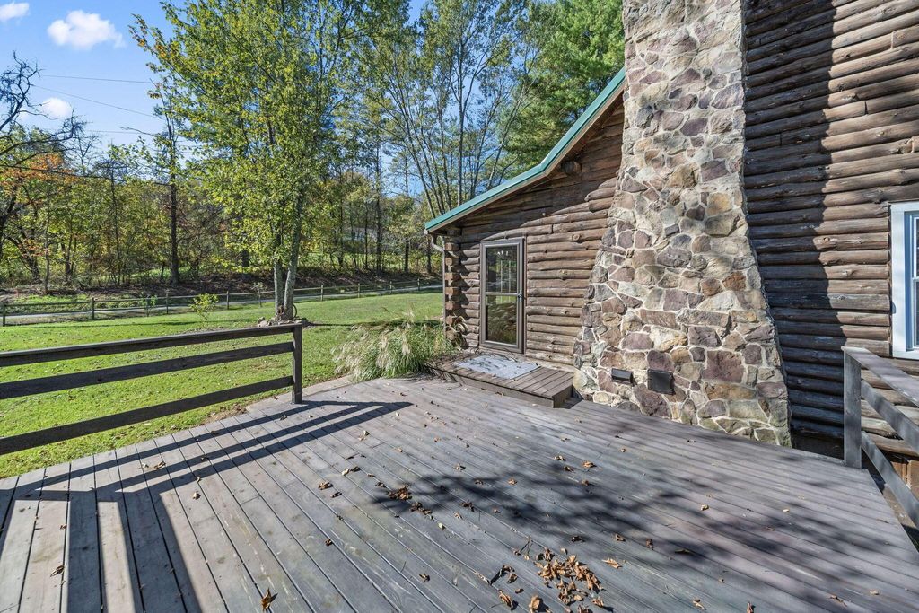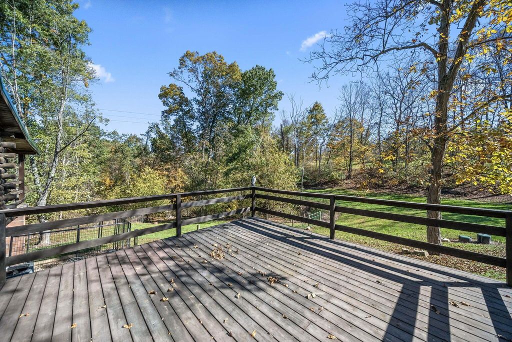 This cozy log home on 1.9+ acres is tucked in the woods and bordering 3 towns centrally located as well as convenient driving distance to Wheeling Wva, Pittsburgh, PA, Columbus, Ohio or the 1st Ohio Settlement in Marietta, Ohio. The area is also known for the it's East Muskingum School district (John Glenn), Muskingum University and The Wilds! This 2,200 approx square-foot log home is a true recreational haven. Fully finished and ready for your next adventure or family home, it serves as the perfect base for hunting, hiking, ATV riding, or simply relaxing in complete privacy. The property is completely fenced in with heavy-duty gates for smaller livestock/pets. The home includes three bedrooms, including the cozy spacious loft and 2 full bathrooms. The property offers a modern private well, septic with new aerator, new metal roof, new furnace/AC, propane whole house generator, updated 110-220 electric service and other utlities that provide comfort without sacrificing independence to be easily made off-grid. The 2-car detached garage with a unfinished bonus room above and oversized driveway has convenient entrance to a possible apartment with bedroom and spacious Lower level laundry closet. Basement is finished with mother-in-law/apartment available. After a day exploring/ hunting white-tail deer or huge turkeys, unwind on the front porch, side 20x20 deck or 10x24 back cement covered porch, surrounded by towering shade trees (and fruit trees) and beautiful wildlife. The property will be sold as is with no contingencies.