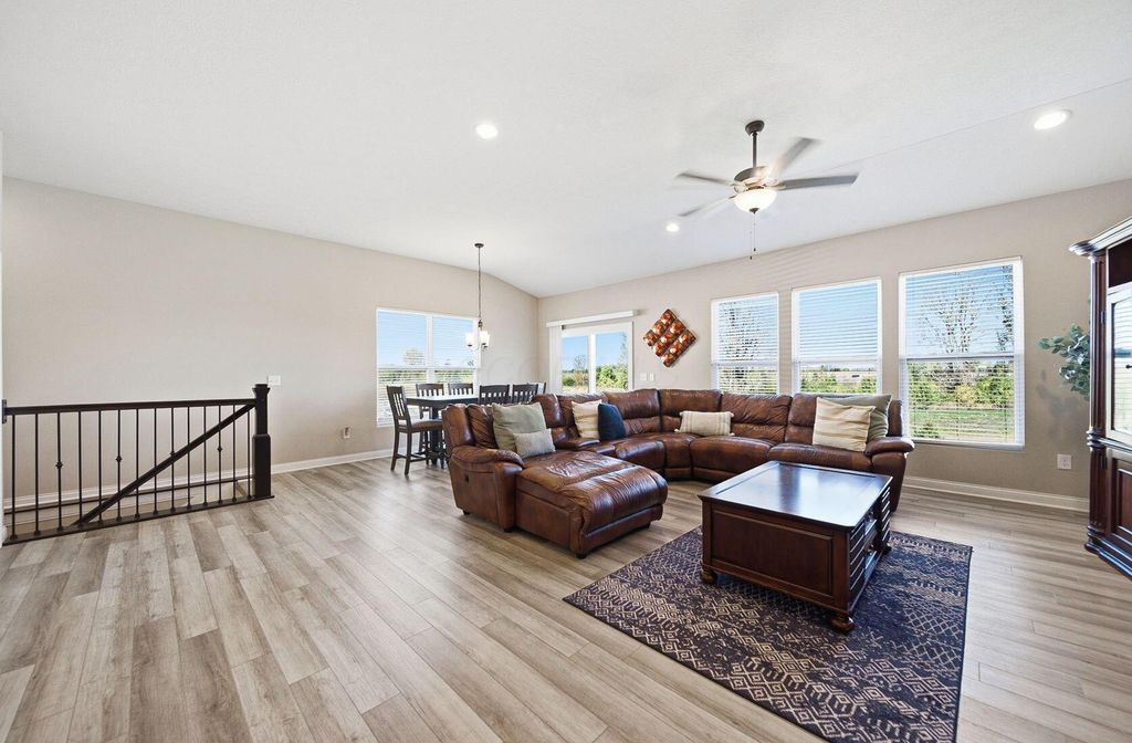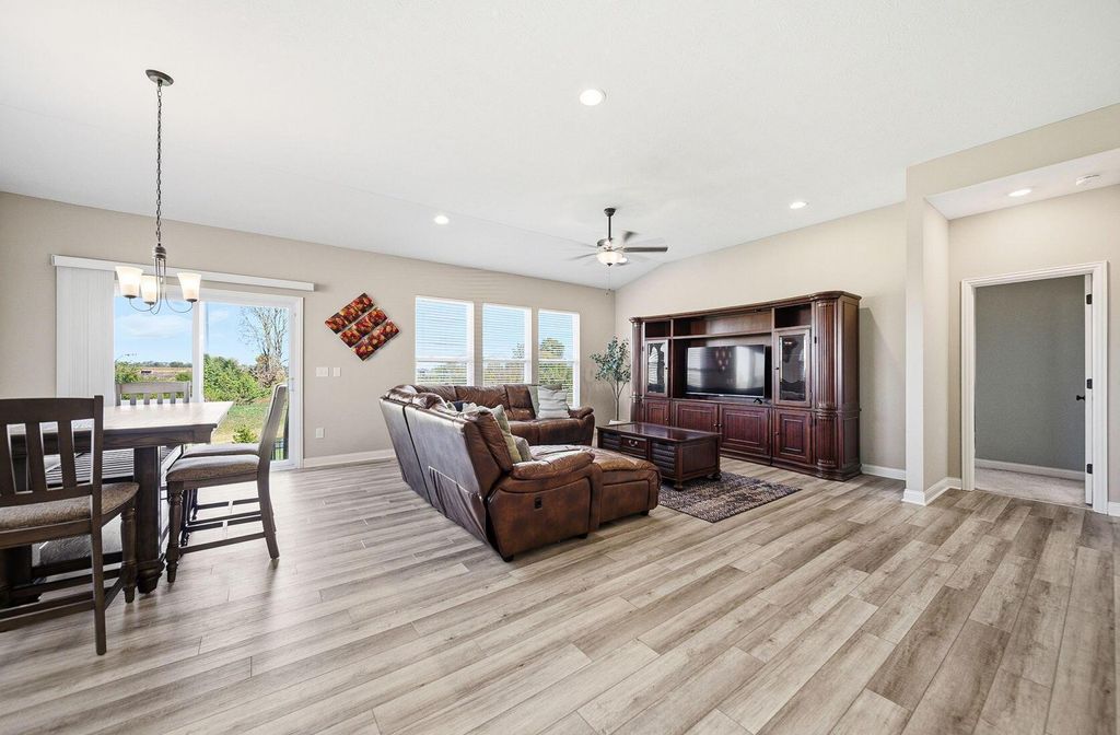 [OPEN HOUSE: 12:00 - 2:00 Saturday 10/25] Some homes invite you to slow down the moment you step inside. This one makes you want to stay awhile. ''The Back Nine'' sits on one of Foxfire's most sought-after lots, where a pond stretches toward a nearby horse farm and the sounds are wind, water, and the occasional golf cart. |+| Built by M/I Homes in 2021, this single-story plan delivers 1,840 sq ft of open living space plus a large basement ready for your next project. Inside, more than $55,000 in upgrades show up everywhere, from quartz kitchen counters and soft-close cabinets to LVP flooring and GE appliances. Nine-foot ceilings and an open layout connect the kitchen, dining, and living room so conversation flows as easily as sunlight. |+| Mornings feel unhurried in the kitchen, coffee steaming on the island while ripples move across the water. Evenings drift to the patio, where a chair turns toward the pond, and small talk turns into real conversation. Indoors, the living room keeps everyone within reach for game night, a favorite movie, or a quiet read when the house finally goes still. |+| The primary suite is tucked away at the back with a cathedral ceiling, a walk-in closet, and a private bath. Two additional bedrooms and a second full bath keep guests comfortable without crowding your routine. Laundry lives on the main level, and the two-car garage adds everyday ease. |+| Out back, the concrete patio faces open sky and water instead of rear neighbors. It is the spot for sunrise reflections, a glass of something at dusk, and the kind of exhale that lingers after the day ends. When you are ready for company, the neighborhood pool, clubhouse, park, and a quick round of golf at The Player's Club are moments away. |+| Homes with this view rarely come back on the market. ''The Back Nine'' is where the best round begins, with calm mornings, slow evenings, and a lifestyle that keeps getting better.