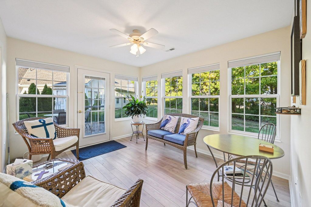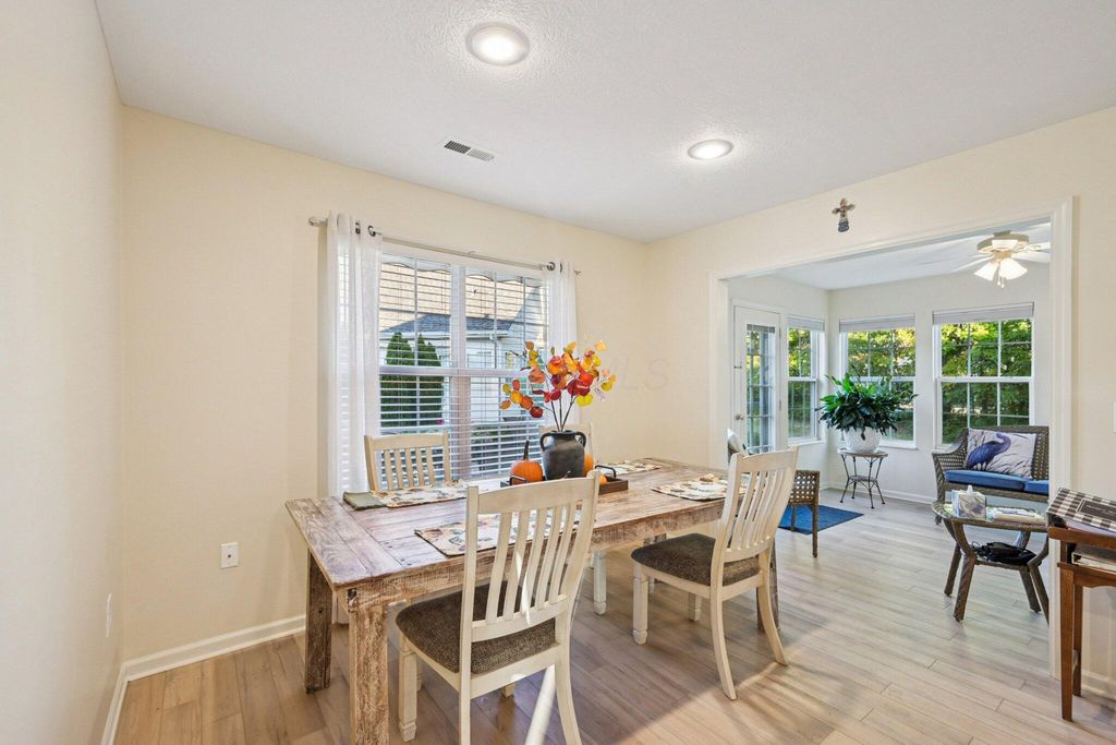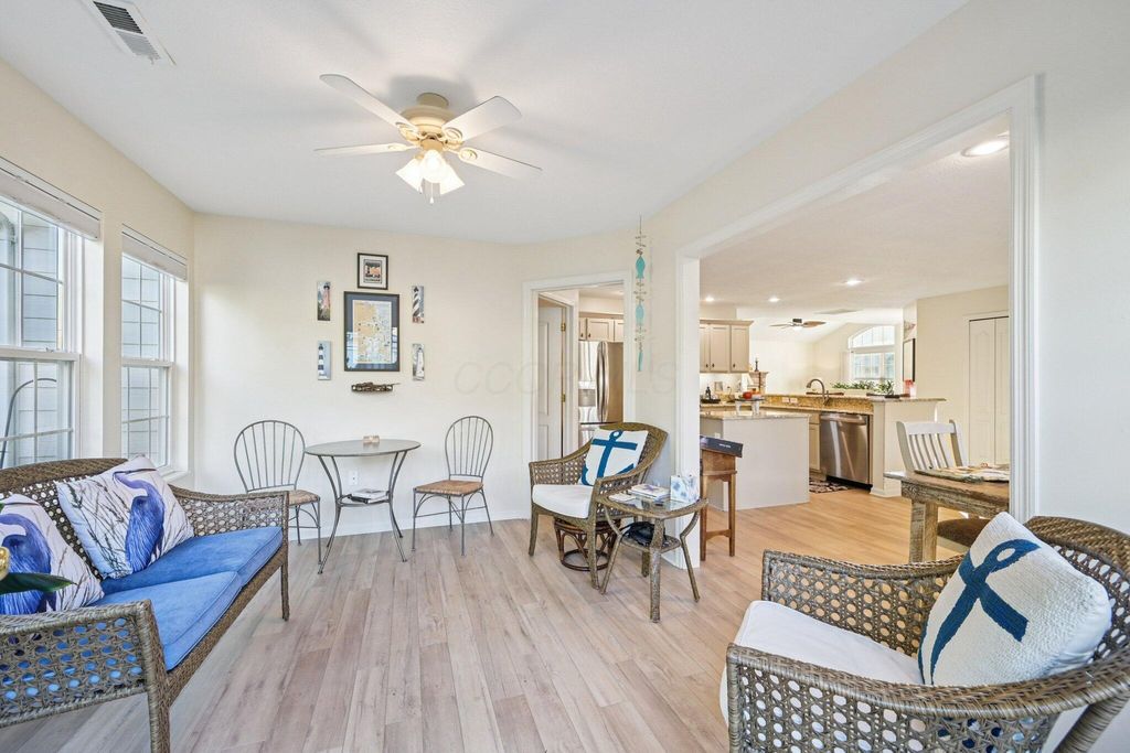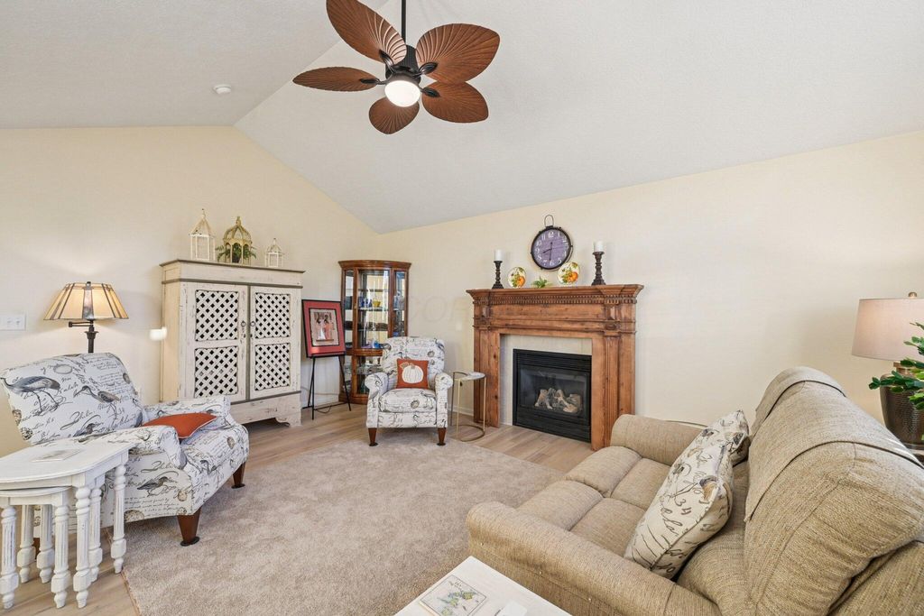 Discover your perfect retreat in this stunning three-bedroom, three-bathroom condo that masterfully blends comfort with contemporary living. Spanning 2,058 square feet, this Newberry-built gem features soaring vaulted ceiling that creates an airy, expansive feel throughout the main living area. The heart of the home showcases a beautiful kitchen, with space to seat 8, that opens into the living space, where a cozy gas fireplace serves as the perfect gathering spot. The opened-up sunroom floods the home with natural light, creating a wonderful indoor-outdoor living experience that extends to your private outdoor sanctuary complete with a Sunsetter awning - ideal for morning coffee or evening relaxation. The flexible den offers endless possibilities as a home office, creative studio, or cozy reading nook, while three generously sized bedrooms and three full bathrooms provide ample space for everyone. Professional closet systems in two of the bedrooms maximizes storage, and extensive recent updates have transformed this space into something truly special. The Commons of Powell's desirable location puts you at the center of it all, with convenient shopping nearby and excellent schools. The local dining scene, like Nocterra Brewing Company and Local Roots, provide fantastic options for date nights or casual meetups - turning your neighborhood into an extension of your social calendar. New roof September 2025, and new landscaping scheduled for installation. Please see docs for a list of all of the many upgrades and improvements. This isn't just a place to live - it's a home that offers the perfect balance of comfort, convenience, and community connection!