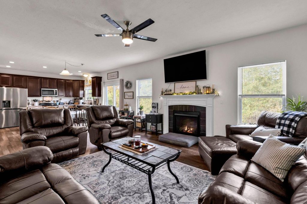 Exceptional One-Owner Maronda Home in Leafy Dell Subdivision! Welcome to this beautifully maintained one-owner home in the desirable Leafy Dell subdivision "” offering space, comfort, and convenience throughout with 4 bedrooms and 3.5 baths! Step inside to an open floor plan perfect for modern living. The main level features kitchen with stainless steel appliances, center island, dining area and open to the living area with a cozy gas fireplace, bright home office with double French doors, a convenient half bath, and a two-car attached garage. Upstairs, you'll find four spacious bedrooms and two full baths, including a large owner's suite with a double vanity, walk-in closet, and private bath for your comfort. The second-floor laundry room adds extra convenience for busy households. The lower level is designed for relaxation and entertainment, offering a partially finished space with a kitchenette and wet bar and a full bath "” perfect for guests, hobbies, or movie nights. The unfinished area provides ample storage and houses the utilities. Enjoy the Cedar fenced rear yard with large gates for ease of yard maintenance, perfect for pets, play, and outdoor gatherings. Plus, this home is within walking distance to the local elementary school, making it ideal for families. The wooded area behind the home offers a perfect back drop for those quit evenings. This home truly has it all "” thoughtful design, functionality, and a fantastic location in one of the area's most sought-after neighborhoods. Don't miss your chance to make this exceptional home yours! Schedule your private showing today!