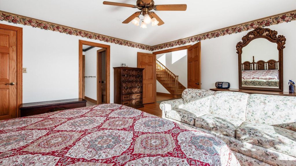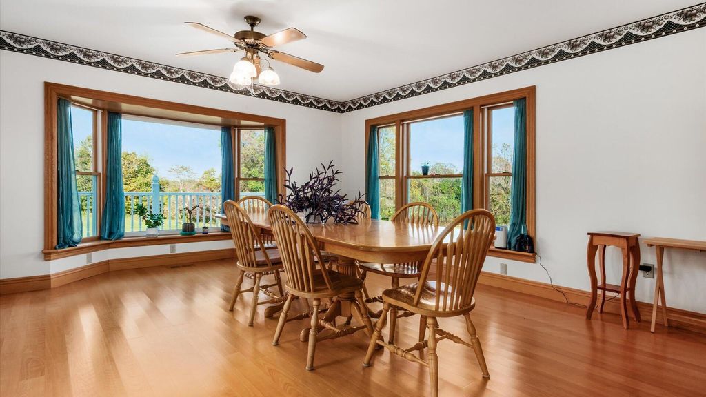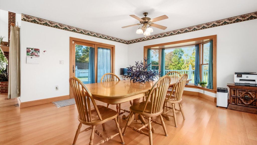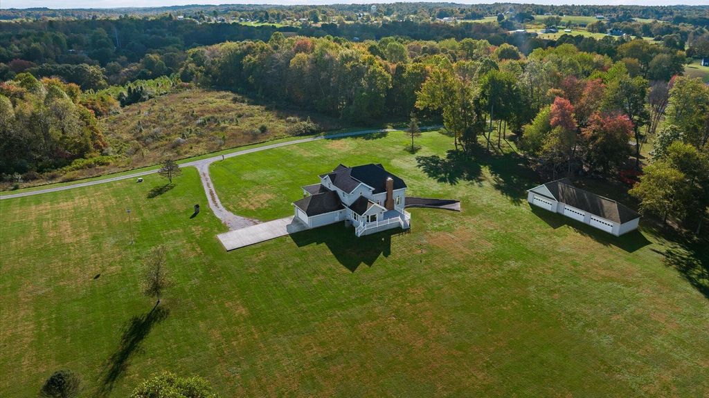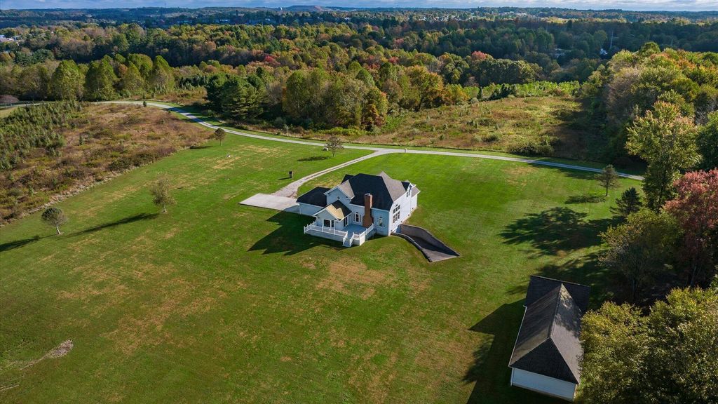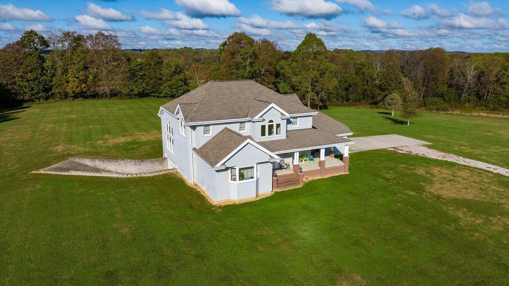Welcome to this beautifully crafted 2-story home, set on 4.53 acres across four parcels at the end of a quiet dead-end road in the New Lexington School District. This rare property blends quality craftsmanship, spacious living, and exceptional outbuilding in a private setting. Inside, you'll find custom woodwork throughout, including an Amish-built stairway, oak trim, and built-in oak bookshelves. This beautiful home offers high ceilings, a family room with bay windows, a versatile dining/office space, and a large living room accented by a fireplace with gas logs. The kitchen features plenty of pantry space and solid oak cabinetry and flows into a bright dining area with access to outdoor living spaces. The home includes 4 bedrooms and 3 1/2 baths. The primary suite offers a bay window, walk-in closet, and private bath with double vanity, tub, and shower. Upstairs, three additional bedrooms include a Jack-and-Jill bath shared by two of the rooms. The third having its own walk in closet and private bathroom. Even more unique, the basement includes a side-entry garage bay with high ceilings"”an impressive space that's partially finished. Step outside to enjoy the large covered front porch with beautiful views, wood siding, and an expansive yard with a back deck perfect for entertaining or peaceful evenings. Garage and workshop space set this property apart. Along with an attached 2-car garage, you'll find a detached 6-car outbuilding with electric, concrete flooring, and a dedicated workshop bay. In total, there's enclosed space for up to nine cars, plus plenty of room for projects, storage, or hobbies. Altogether, this property offers a rare combination of acreage, craftsmanship, privacy, high ceilings, and versatile garage/workshop space"”a one-of-a-kind opportunity!