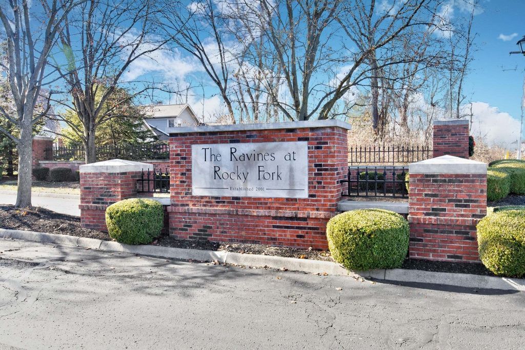 Enjoy one-story living in this extensively updated 2-bedroom, 2-full bath condo in The Ravines at Rocky Fork! The great room greets you with soaring ceilings, brand new LVP flooring, and fresh paint. The bright kitchen offers a breakfast bar, new flooring, new cabinets, new countertops, and all new stainless appliances. Enjoy the primary bedroom suite with new carpet, fresh paint, ensuite full bath with new double sink vanity, updated shower, new toilet, and a spacious walk-in closet! 2nd bedroom has new carpet and fresh paint as well with hall access to the updated 2nd full bath. Duct work has recently been professionally cleaned, and all baseboards have been replaced. Washer & dryer will convey with new cabinetry installed above them. A 3-season Florida room offers options as a den, office, or craft room. The new blinds just installed will convey with this home. New furnace & AC 2025. HWH replaced 2023. Enjoy entertaining?? Great guest parking compliments the spacious 2-car garage. The community clubhouse and pool complete this highly desireable home. Conveniently located close to shopping, restaurants, banks, medical facilities, Hamilton Road, SR 161, and 270 outerbelt, this home is a gem!
