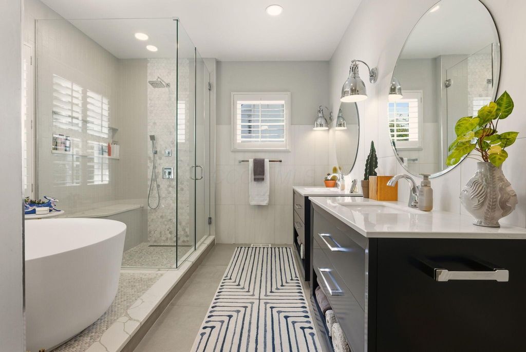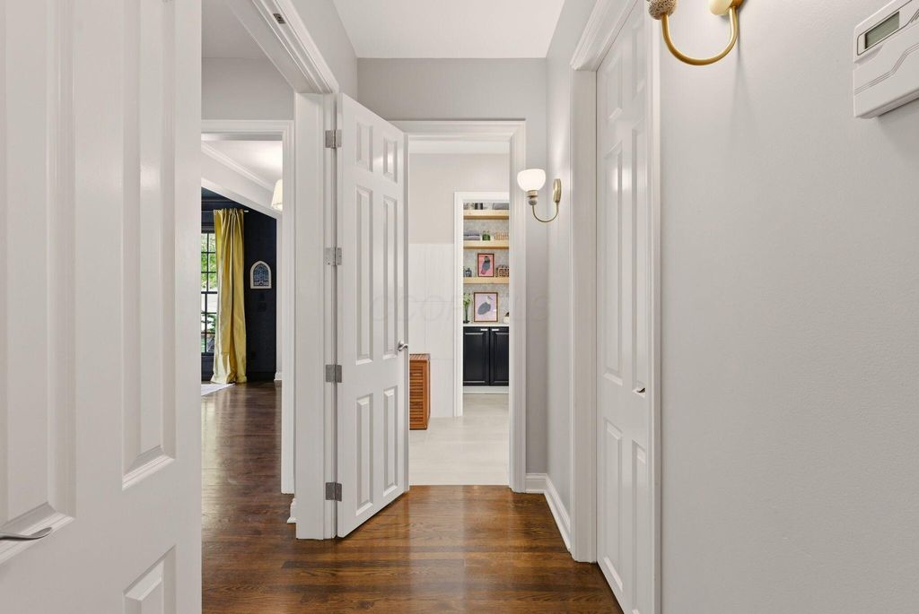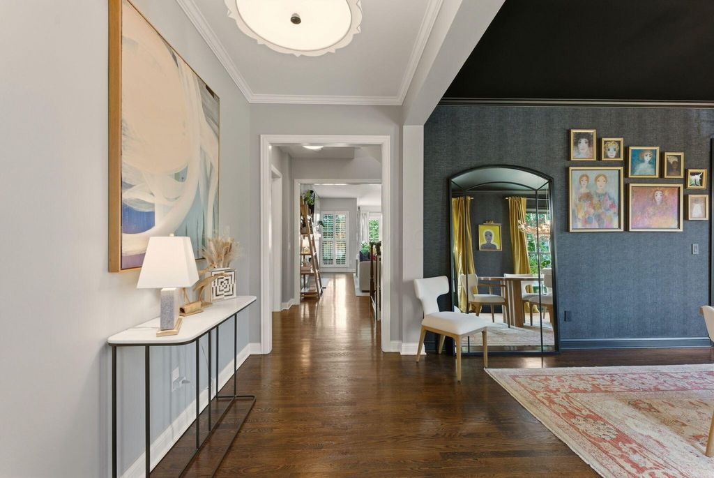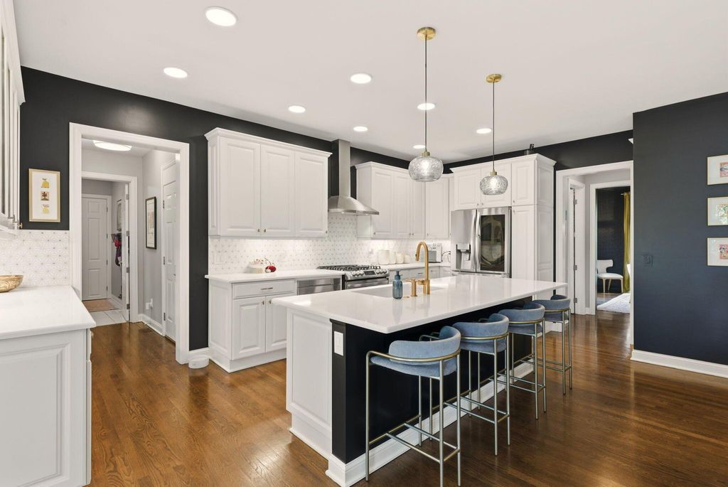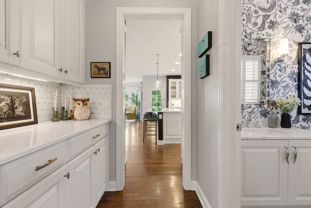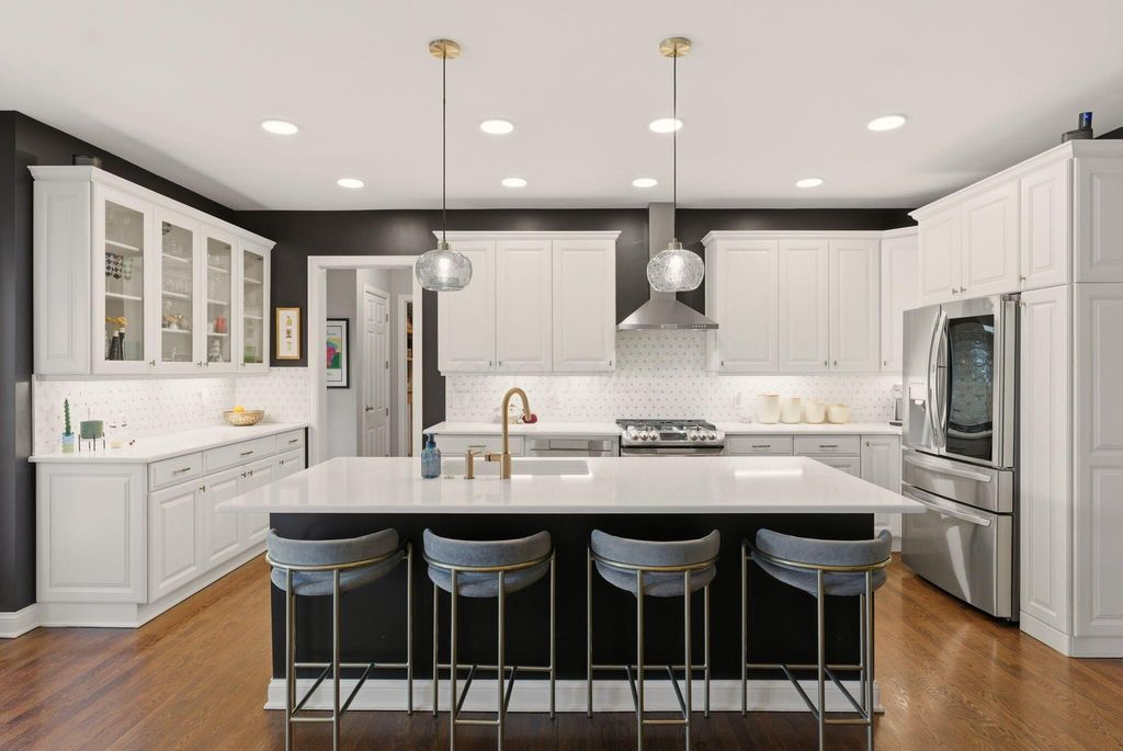 Simply stunning residence in Pickett Place, where timeless elegance meets modern sophistication. Built in 2001, this meticulously maintained home showcases classic white exterior brick and Hardie Plank siding that creates an instantly inviting curb appeal. Step inside to discover over 4,300 square feet of thoughtfully designed and renovated living space featuring hardwood floors and personal touches throughout. The formal dining room, with its refined dark walls and elegant finishes, provides the perfect setting for special occasions and memorable conversations. The home highlights a first-floor primary suite, providing main-level luxury with vaulted ceilings, a bay window nook, and generous walk-in closet. The spa bath, renovated in 2022, showcases designer tile and lighting, a soaking tub, shower with glass enclosure, and custom vanities with quartz countertops. With an additional three bedrooms, each boasting its own private ensuite bath, plus a convenient half bath, this residence offers 5.5 baths total"”perfect for family and guests. The chef's kitchen is a culinary dream, featuring custom 42-inch soft-close cabinets, quartz countertops, signature tile backsplash, premium stainless appliances, and a generous island with seating and bar area. Entertaining flows effortlessly into the open family room with tile feature wall and gas fireplace, and casual dining space flooded with an abundance of natural light. The central and open staircase leads to the finished lower level, providing additional flexible living space with a large office, full bath, and spacious walk-in closet for seasonal storage. The media and recreation room offers endless entertaining options and ample storage throughout. The outdoor living spaces are equally impressive, featuring a screened-in porch, deck, brick paver patios surrounded by professionally updated landscaping. Thoughtful exterior lighting creates an enchanting ambiance. Simply Beautiful.