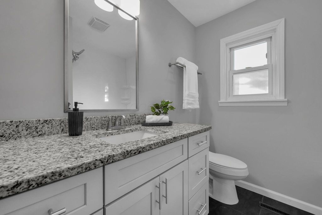 STUNNING! Open Sunday, 10/26 1-3PM. Beautifully updated mid century modern 3BR/1.5BA 3-level split home is located in the Cranford Subdivision (AKA - 'Lower Arlington' by the Neighbors due to its' proximity to UA ) and is short drive to 315, Riverside, OSU, the Olentangy Trail, Smith Park, shopping and dining. An open concept living area welcomes you and is perfect for entertaining or relaxing with family or friends. Modern kitchen with separate dining area boasts newer stainless steel appliances, island for food prep, granite countertops and new flooring. Short flight of stairs up leads to 3 bedrooms and the main fully remodeled bathroom. Updated lighting throughout. Lower level could be an office/second living room or play area with remodeled half bath. New carpet and flooring. Enjoy the treed fenced backyard this Fall from the outdoor patio. Freshly painted inside and out. Replacement windows. New garage door. Neighborhood features and active community. Nothing to do but move in. Don't miss your chance to own this home.