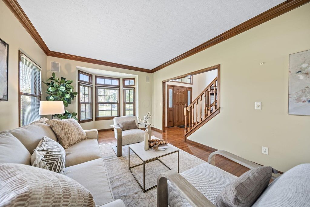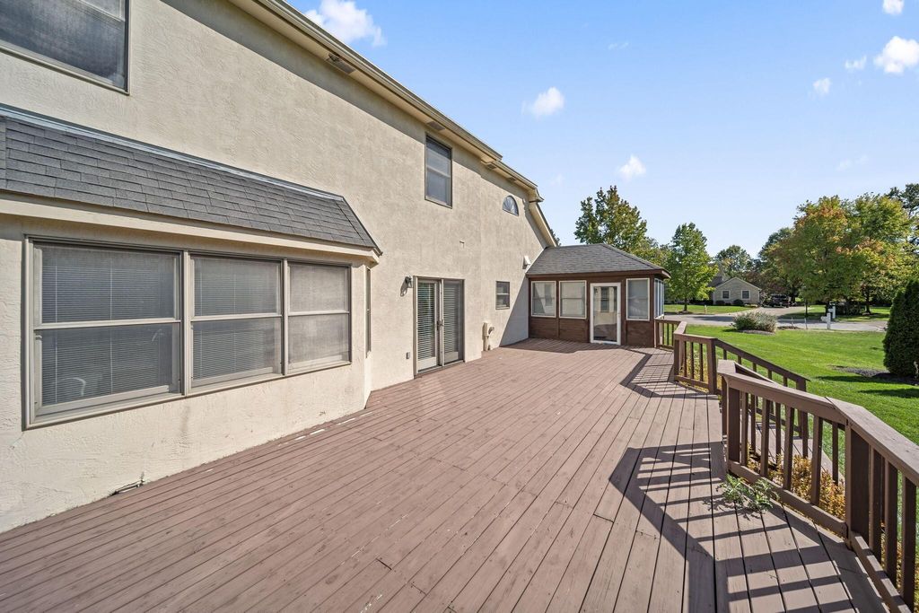 Welcome to this stately 4-bedroom, 3.5-bath brick Colonial offering nearly 3,000 sq. ft. of luxurious yet inviting living space. The grand two-story foyer opens to a bright, elegant interior featuring hardwood floors, detailed wood trim, and timeless craftsmanship throughout. Corner lot offering almost .6 acres of well manicured outdoor space. A spacious layout with brick fireplace, large windows and French doors that fill the home with natural light. Large chef's kitchen blends warmth and sophistication with oversized 6-burner gas range and vent hood, white cabinetry, stainless steel appliances, a butcher block island, and space for casual dining. The formal dining room features a tray ceiling, wainscoting, and charming bay window with built-in seating"”perfect for entertaining. Upstairs, the primary suite provides a peaceful retreat, complemented by three additional bedrooms and well-appointed baths. The large unfinished basement is ready to be transformed into additional living space, offering endless potential for future customization. A basement bathroom has already been roughed in, just needs to be finished. PLEASE NOTE HOUSE IS BEING SOLD AS IS. HOA includes access to community pool and recreation center.