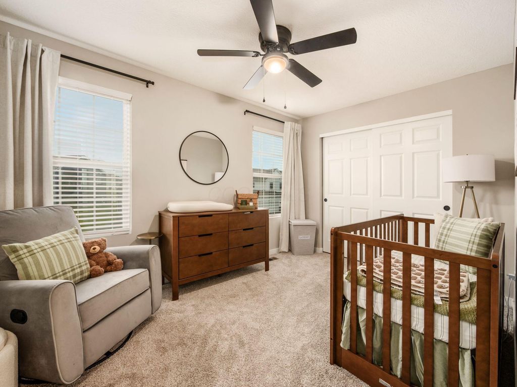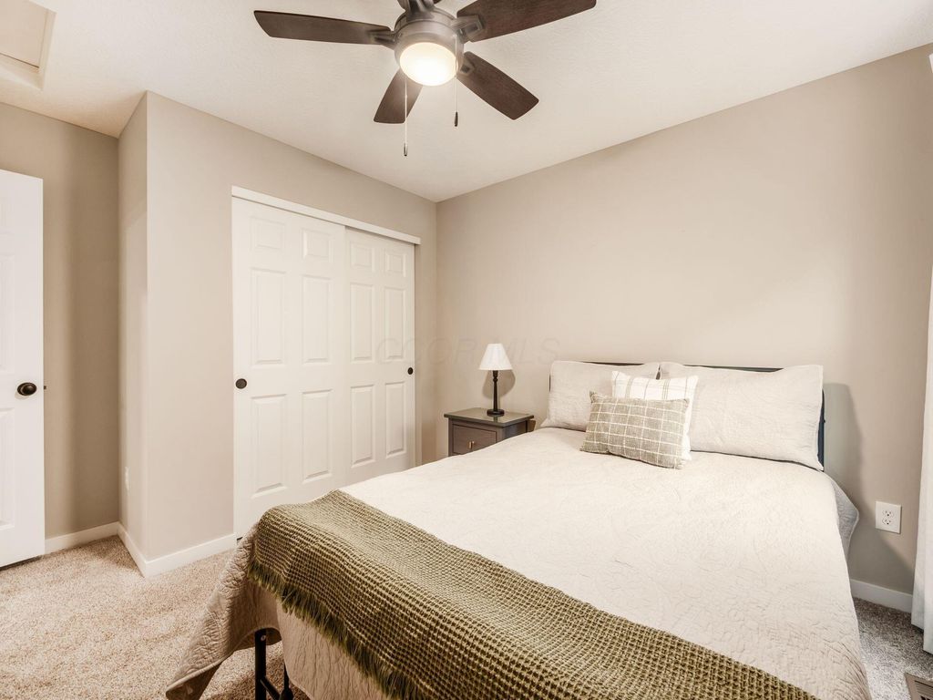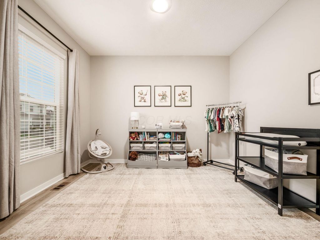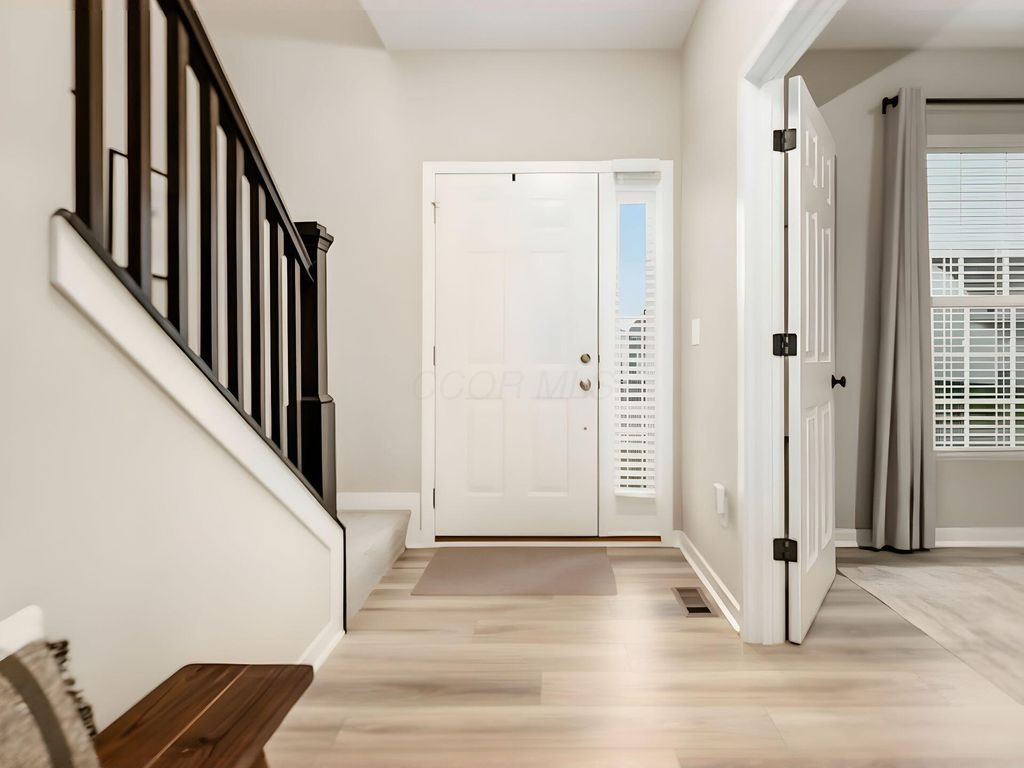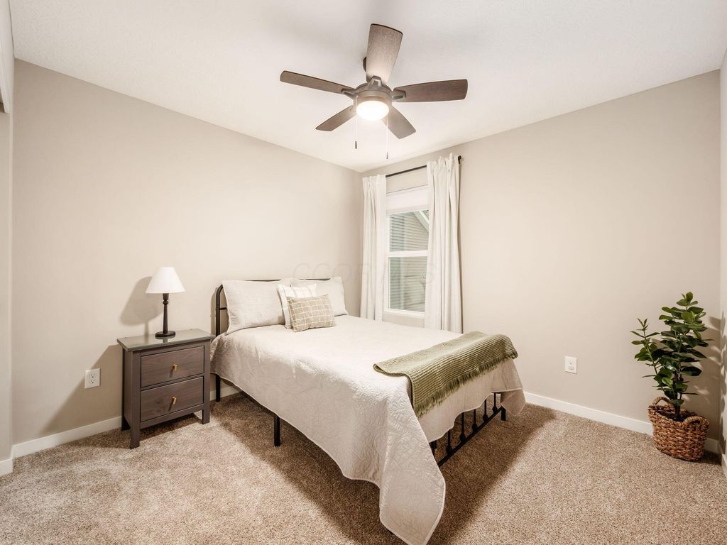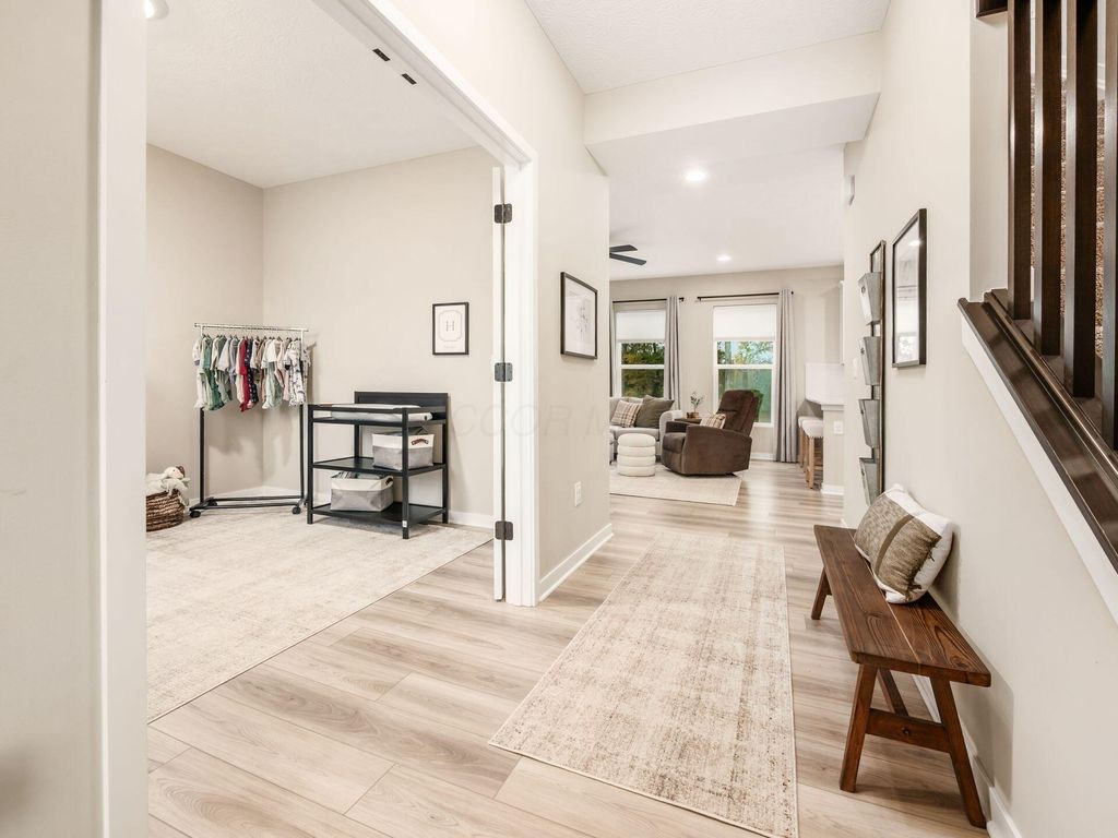 Sellers relocating! Nearly new Dearborn floor plan"”just 1 year old and priced below replication. Features 3 bedrooms, 2.5 baths, plus a rough-in for a full bath in the LL. The first floor offers a private den and open-concept living with LVP flooring. The kitchen boasts white cabinets, quartz countertops, island, stainless steel appliances including gas range, and a sliding glass door to the patio and flat, tree-lined yard"”one of the largest lots in Liberty Grand. Upstairs includes a loft, 2nd-floor laundry, and owner's suite with vaulted ceiling, walk-in closets, and oversized shower. Rare garage bump-out adds valuable storage or workspace. Updated lighting and window blinds throughout. Fast close"”just in time for the holidays!