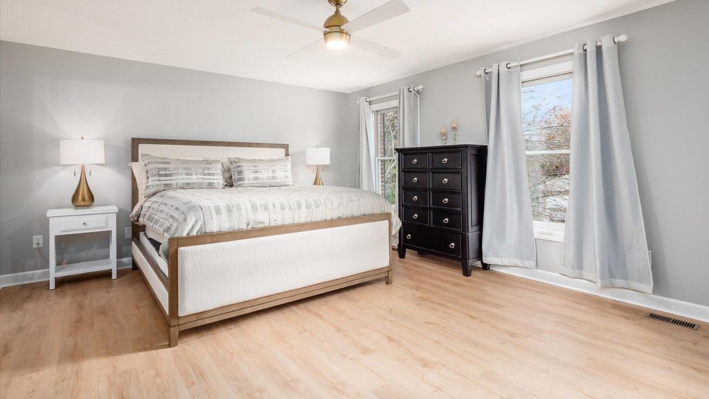Nestled on a quiet, private cul-de-sac in a highly desirable neighborhood just minutes from Lancaster amenities, this beautiful two-story brick Colonial exudes timeless charm and pride of ownership. The home's inviting foyer opens to a formal dining room with French doors leading to the kitchen and a flexible sitting room or den. The updated eat-in kitchen features abundant cabinetry, generous counter space, and modern appliances including a gas range, seamlessly connecting to the bright living room highlighted by a classic brick fireplace flanked by custom built-ins. Natural light floods the home, enhanced by new luxury vinyl plank flooring throughout. A newly remodeled half bath completes the main floor. Upstairs, the spacious master suite offers a large walk-in closet and an en suite bath with double sinks, soaking tub, and separate shower. Three additional bedrooms, all freshly painted with new flooring and roomy closets, share a full bath. You'll appreciate the ample amount of storage closets thoughtfully placed throughout the home, providing convenience and organization for every need. The finished lower level adds even more living space with a cozy family room, built-in shelving, workout area, laundry with folding station, and plumbing for a future full bath. Outdoors, the manicured yard is surrounded by mature trees for privacy, while the rear patio with outdoor fireplace provides a perfect entertaining space. A two-car attached garage, concrete drive, and brick walkway complete this move-in ready gem in a sought-after setting.