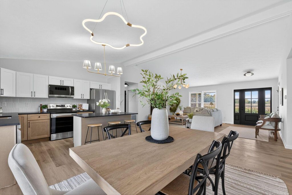 This home is what you've been waiting on. Completely remodeled 5-bedroom, 2-bathroom home situated on just under 10 acres with a pond in the Graham Local School District. This property features an open-concept floor plan with vaulted ceilings, a finished basement, and an appliance package. The spacious kitchen flows into the main living area, creating a comfortable and functional space for everyday living or entertaining. Additional highlights include an attached garage, wooded acres, and a scenic country setting with room to roam. Lot lines and pictures are approximate. Driveway is an easement.