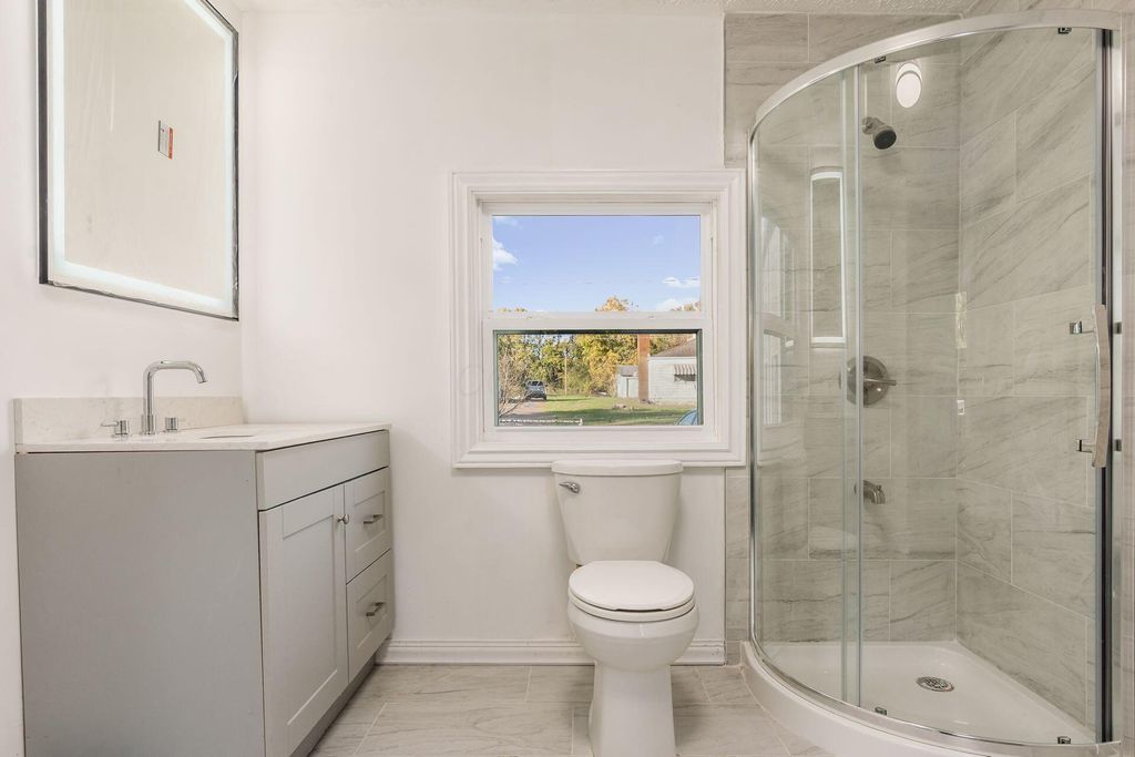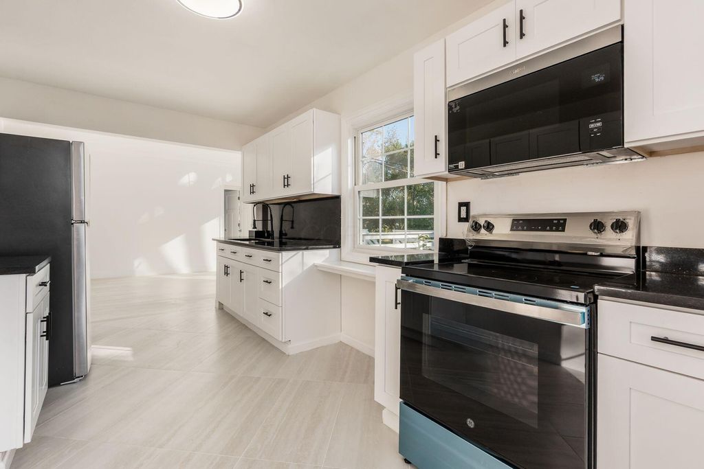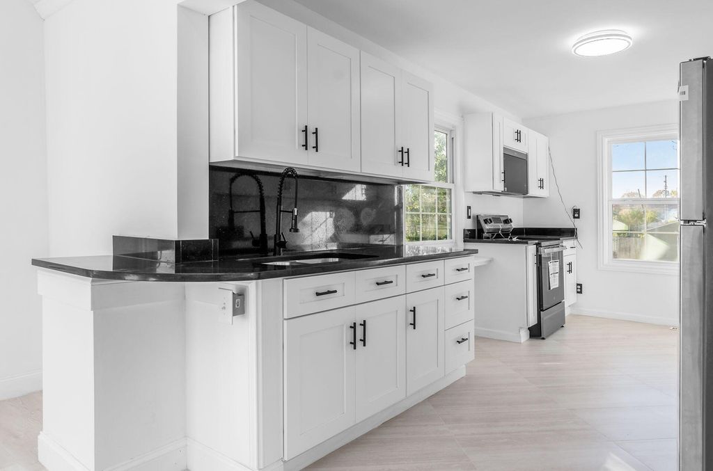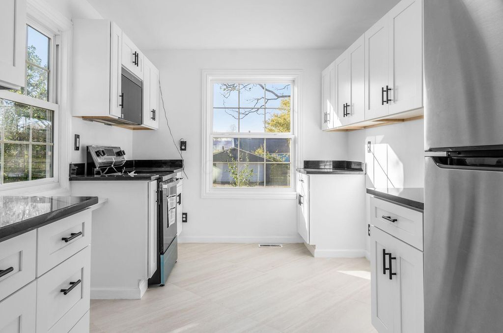 This remodeled ranch in established neighborhood is a must see! Surrounded by new built homes, the home shows like a model. Offering a new wrap around driveway, open floor plan, abundance of windows, 3 spacious bedrooms, 2 full baths, finished basement, large deck and modern finishes! New kitchen with granite and stainless steel appliances, new flooring, fresh paint through out, high end floor to ceiling tile, new vanities and new LED mirrors and much more! Easy to see and move in ready!
