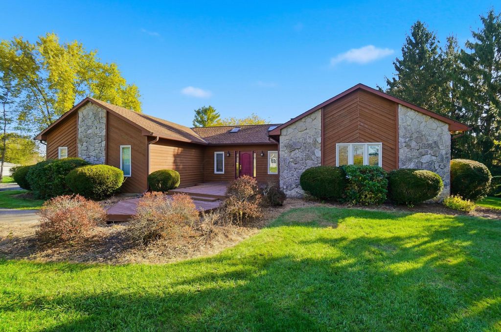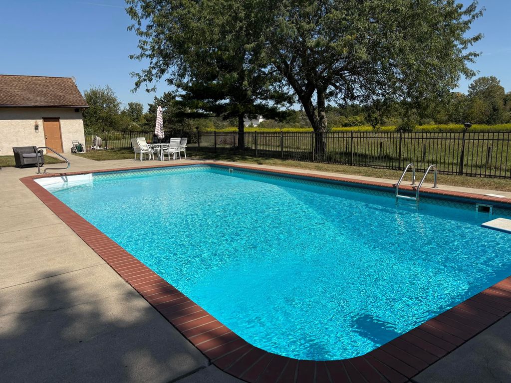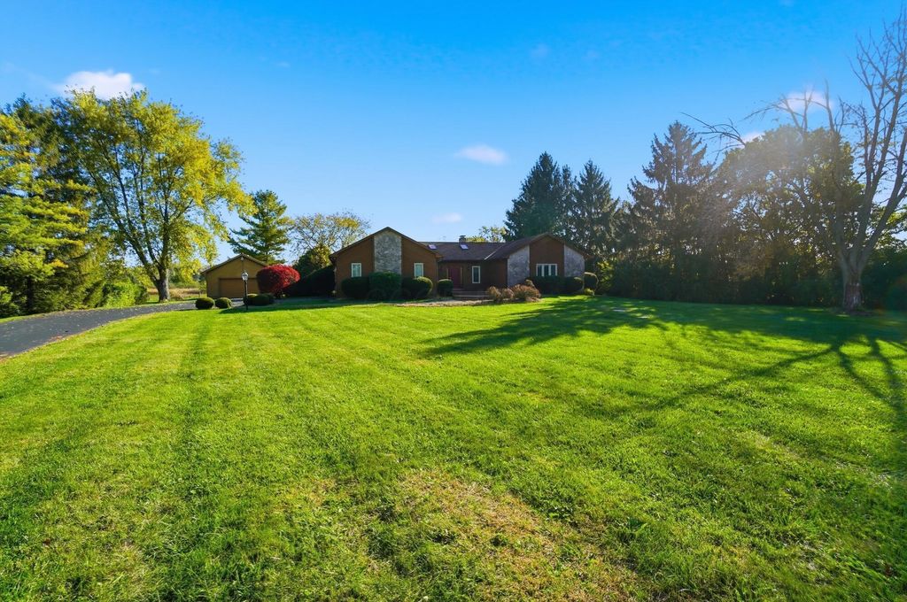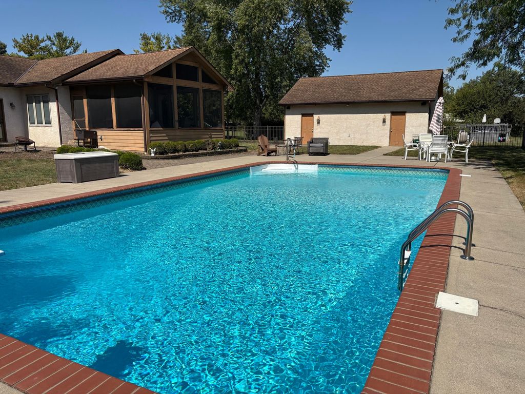 Custom built ranch with full unfinished basement. Open floor plan with 40 x 20 Ingound/salt system pool. Pool liner was replaced 2017 by Surface Side Pools & Spas, they open and close the pool every year. You enter the home into a large foyer which overlooks the huge great room with raised hearth, stone faced gas fireplace. The kitchen has Amish built cabinets, counter-top range, wall over & microwave, 2015, Dishwasher 2017, also included is a trash compactor. Views of the large formal dining room with double french doors opens to screened porch which overlooks in-ground pool area. Great room is also fully visable from the kitchen. Off the dining room is a huge walk-in pantry and laundry area. The bedroom area consists of master bedroom suite, 2 additional bedrooms with double closets and ceiling fans. Guest bathroom is also located in this area along with large guest closet. Basement has been water-proofed and 2 sump pumps installed with battery back-up, 2015. Large rec room, half bath, utility area with 200 amp electrical service, Furnace and AC, hot water tank and water softener 2016/2017, additional area, could be office, home gym or bedroom. This home is plumbed with pex plumbing. Rositi replacement windows and front door installed in 2016, solid wood 6 panel doors are also throughout the home. New driveway in 2023, water heater 2020, great room floors 2020, water softener 2017. 2 car attched garage with opener and 2 car detached garage with 1/2 bath and workshop/storage. Lot size is 1.41 acres and rear of the home has a paver patio and walks. Pool equipment is located at the rear of the detached garage. Iron fencing surrounds the salt water pool and overlooks an open field in the rear. Enjoy this all electric country home! Easy to show and available at closing.