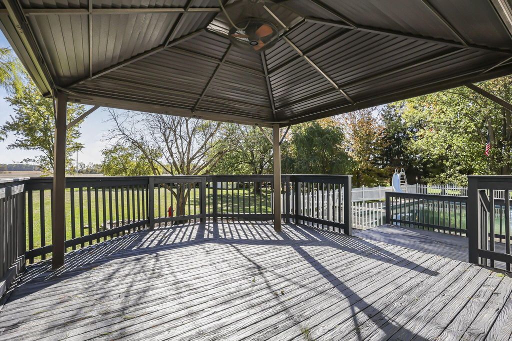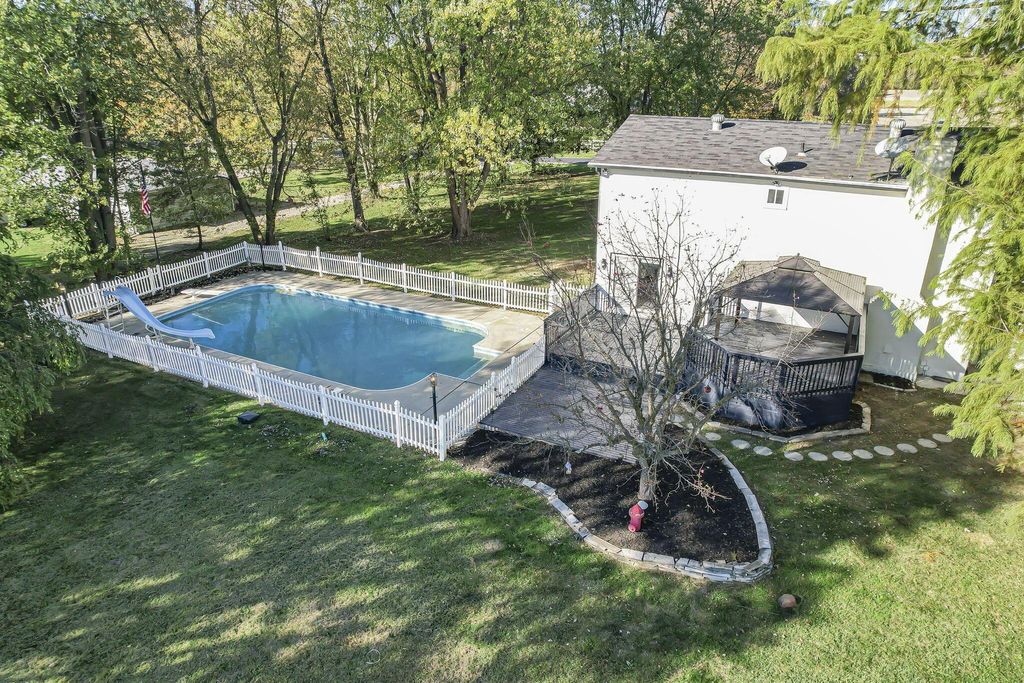 Welcome to this stunning, fully renovated 4-bedroom, 2.5-bath home on 1.34 private acres. The property features a massive 3-car pole barn, 2-car attached garage, and a sparkling in-ground pool with diving board, slide, and full fencing for safety. A covered back porch and gazebo overlook the pool area, while a fire pit and open yard create the perfect setting for gatherings and relaxation. Inside, you'll find an open-concept layout with bright natural light and thoughtful updates throughout. The designer kitchen showcases quartz waterfall countertops, new stainless steel appliances, and shaker cabinets The family room is anchored by a cozy wood-burning stove, adding warmth and charm to the main living space. Upstairs, the primary suite offers a private retreat with a luxury bathroom featuring a walk-in tile shower and double vanity. Three additional bedrooms and a second full bath provide plenty of space for family or guests. The large, dry basement adds valuable storage or future finishing potential. Perfectly balancing modern comfort and country living, this home delivers the space, style, and amenities rarely found together"”just minutes from Johnstown, New Albany, and the rapidly growing Intel corridor.