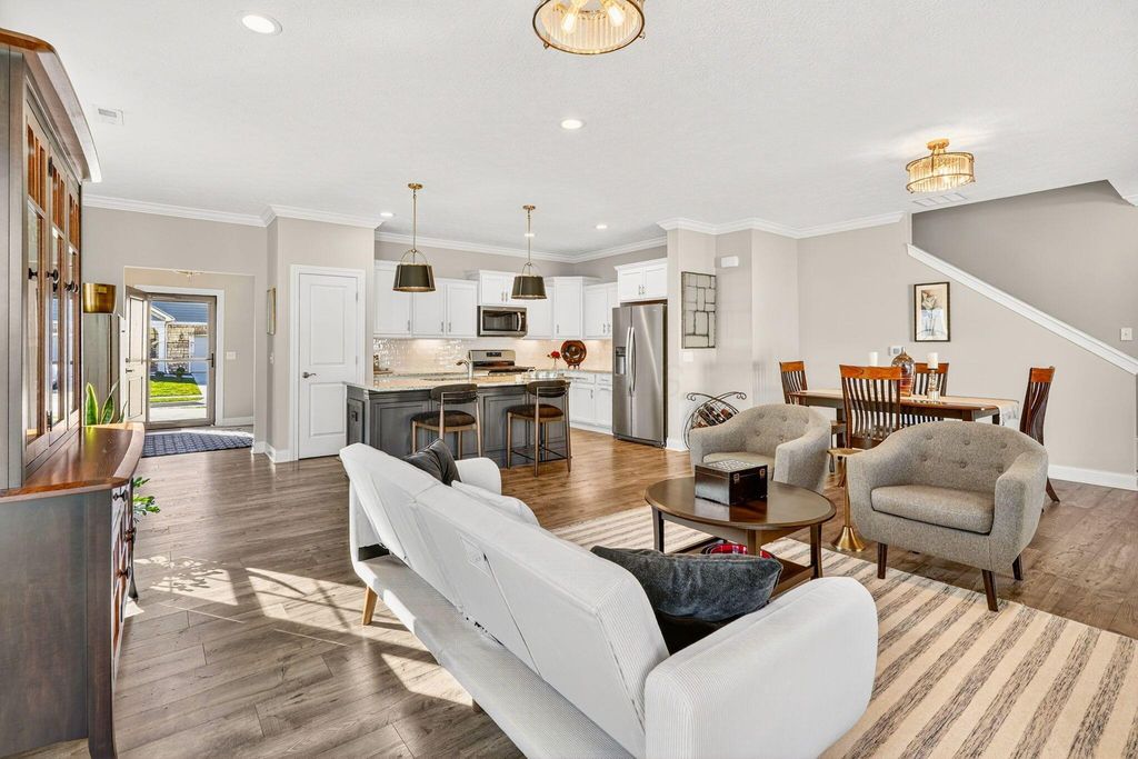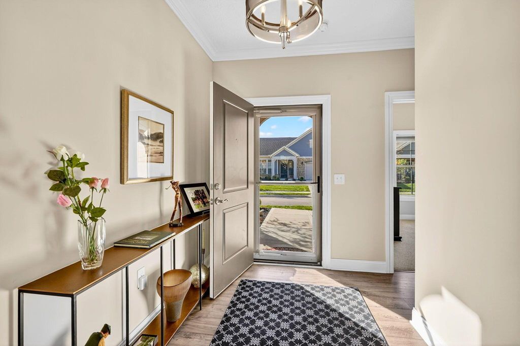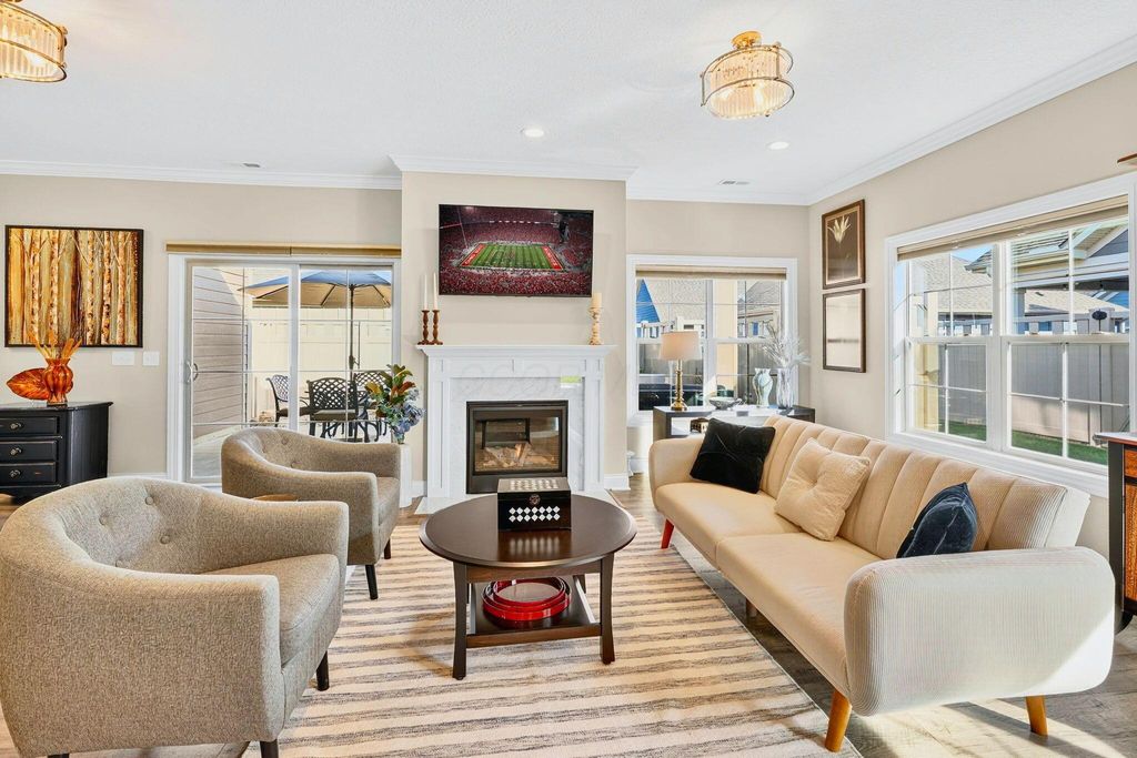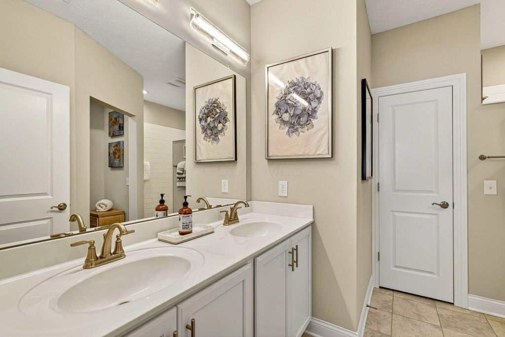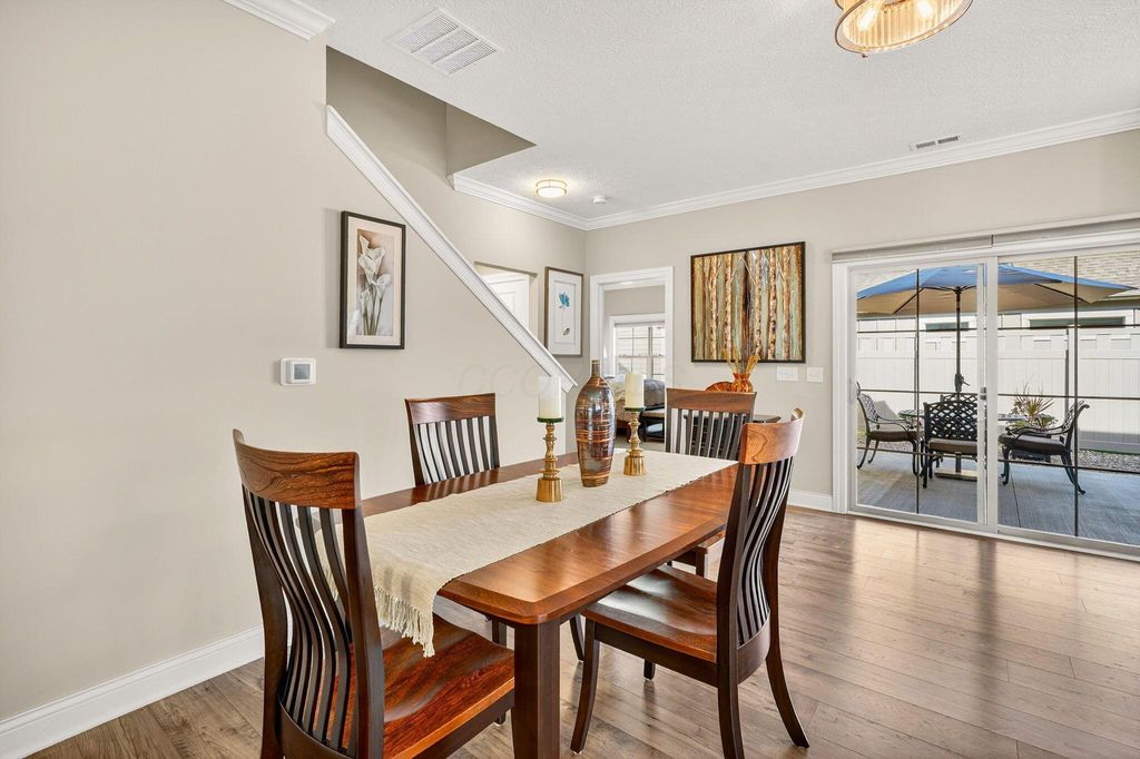 Immaculate 3 bedroom condo in Powell! This Epcon built home offers an open floor plan with tons of natural light and upgrades throughout. The kitchen features staggered white cabinetry with granite counter tops, tile back splash, newer Whirlpool appliances (2024), a large island with single bowl sink, pendant lighting & a large pantry. The spacious living room has a 32' gas log fireplace with mantel & tech tube for wall mounted television, Mohawk luxury plank flooring, large windows with views of the back yard, and a patio door leading to the fenced courtyard. Also conveniently located on the first floor you will find the primary bedroom and a guest bedroom, which can be used as a den or home office, 2 full bathrooms and a laundry room with built in cabinetry and storage. Upstairs you will discover a large bonus room/flex space, another bedroom & full bathroom and even more storage. Other features in this home include a full view storm door, upgraded trim package throughout, upgraded lighting, custom window treatments, upgraded carpeting & pad in bedrooms, large walk in closets, added storage in closets, pantry and garage, an expanded courtyard for additional outdoor living space and a 2.5 car attached garage. Community amenities include a large clubhouse with gathering room, fitness room, swimming pool, pickle ball and bocce ball courts - enjoy a low maintenance lifestyle in a very active community located close to downtown Powell with great shopping and restaurants. Possession can be at closing!