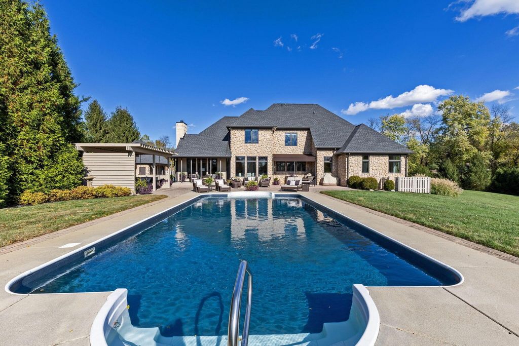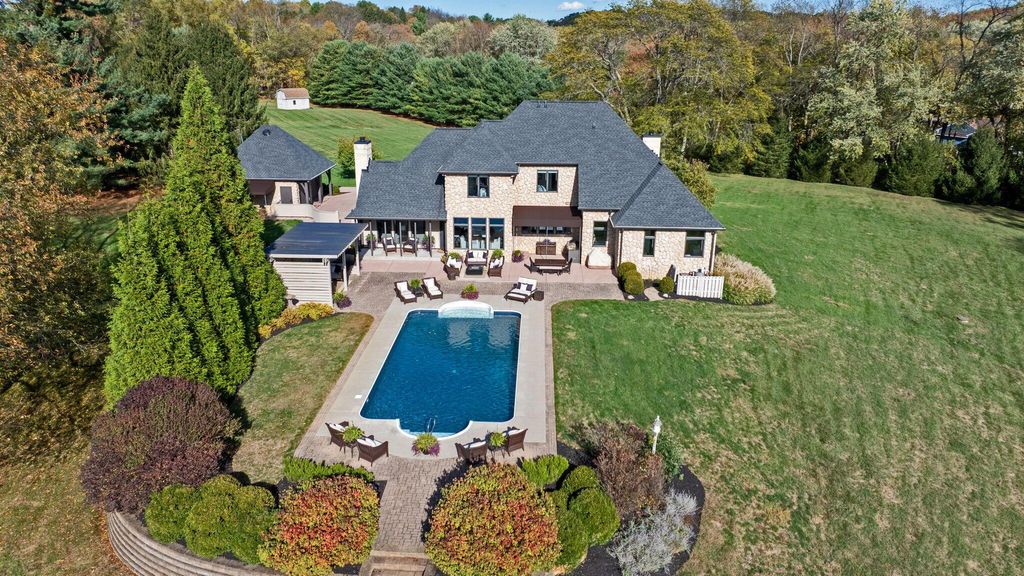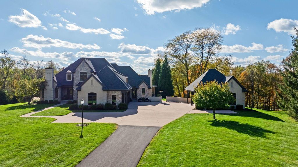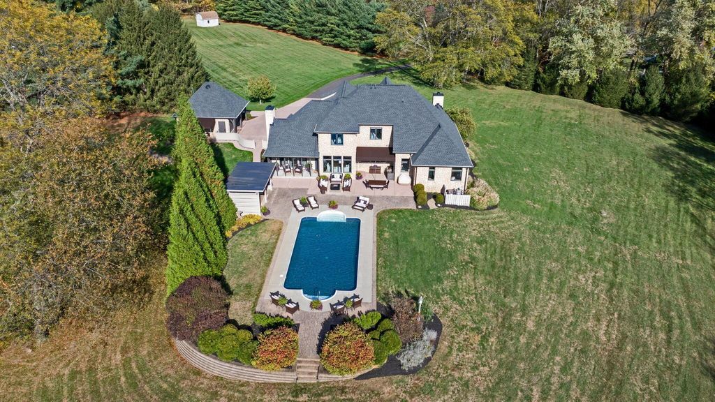 Stunning 10-Acre Estate Minutes from Granville Village. Experience resort-style living and timeless design in this extraordinary 10-acre estate offering unmatched privacy, expansive frontage, and breathtaking views just moments from the heart of Granville Village. Every detail of this property reflects architectural excellence, fine craftsmanship, and modern luxury. A dramatic cathedral foyer welcomes you into an open and light-filled floor plan designed for both comfortable living and elegant entertaining. The renovated gourmet kitchen serves as the heart of the home, featuring luxury appliances, quartz countertops, all-new custom cabinetry, and a wet bar complete with built-in beer taps. The kitchen flows seamlessly into the morning room and great room, where walls of windows overlook the resort-style backyard complete with a heated pool, expansive patio, and pergola, creating the perfect backdrop for gatherings and relaxation. The first-floor owner's suite is a true retreat, offering serene views of the grounds, a spa-inspired bath, and a large walk-in closet with custom built-ins. Additional highlights on the main level include a private office with a fireplace and built ins, an elegant dining/sitting room, and a beautifully updated laundry room. Upstairs, you'll find spacious family bedrooms, each with its own ensuite bath, along with a bonus room ideal for a playroom or hobby space. The expansive lower level is designed for entertainment and comfort, featuring a theater room, family room with bar area, workout room, and a murphy bed for guests. A 3 car attached garage, heated 2 car detached garage and a storage outbuilding complete the property, providing abundant space for vehicles, hobbies, or potential equestrian use. This one-of-a-kind property combines the best of country tranquility and refined living, offering a private sanctuary just minutes from the charm of Granville Village, schools, shopping, and dining.