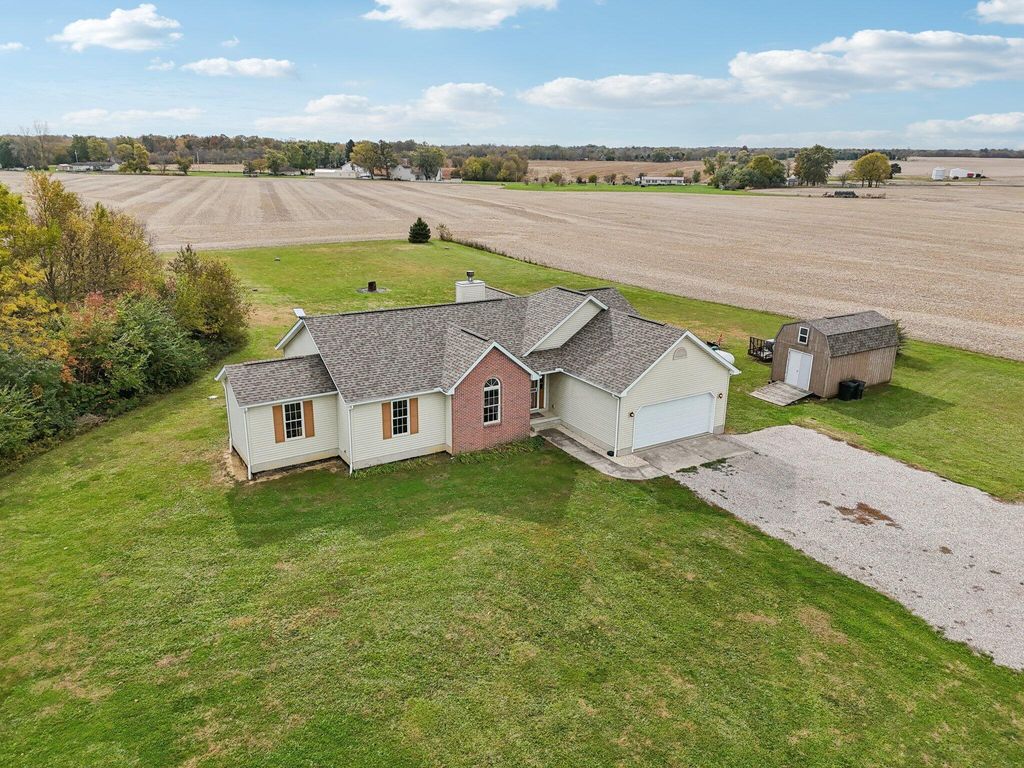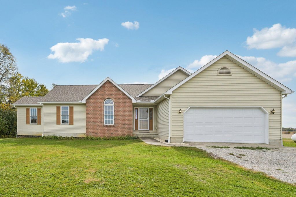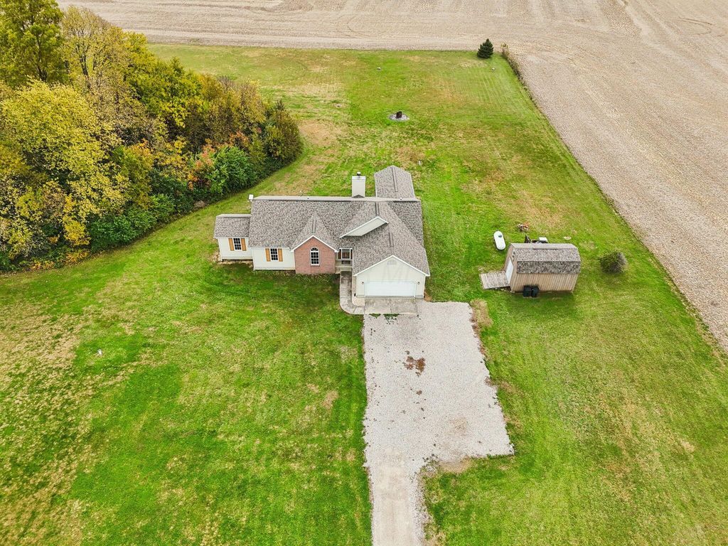 Buy your very own piece of country heaven! Maybe even build yourself a mini farm. There is plenty of room to build pastures & barns. You will not want to miss out on this nearly 2,100-square-foot, four-bedroom, two-full-bath ranch home, boasting another 2,100 sq. ft. of potential living space in the full, ready-to-be-finished lower level. All this is located on a quiet, scenic 3.59-acre country lot! This contemporary floor plan features a huge great room with cathedral ceilings and a raised-hearth wood-burning fireplace with a gas starter, a formal dining room with a chair rail, a large country kitchen loaded with oak cabinets, all stainless steel appliances, and a breakfast dinette. The breathtaking sunroom has extra tall windows, perfect for viewing the distant countryside and an area of mature woods (almost half an acre) along with all the wildlife, including deer, rabbits, squirrels, and birds. Upgrades and extras include easy-to-care-for LVP floors throughout, a poured wall foundation, Culligan Water Softener, Lennox Propane Furnace, convenient first-floor laundry, a brick front, a long gravel driveway with plenty of extra parking spaces, a 12 x 20 ft. storage shed, and a new roof installed in 2022. Bring your RV, your boat, and all your toys! There's room for them all! This awesome, quiet location is only a couple of minutes away from I-71 and about 15 minutes north of Deer Creek State Park. Attention Agetns: See ATA remarks and offers instructions doc.
