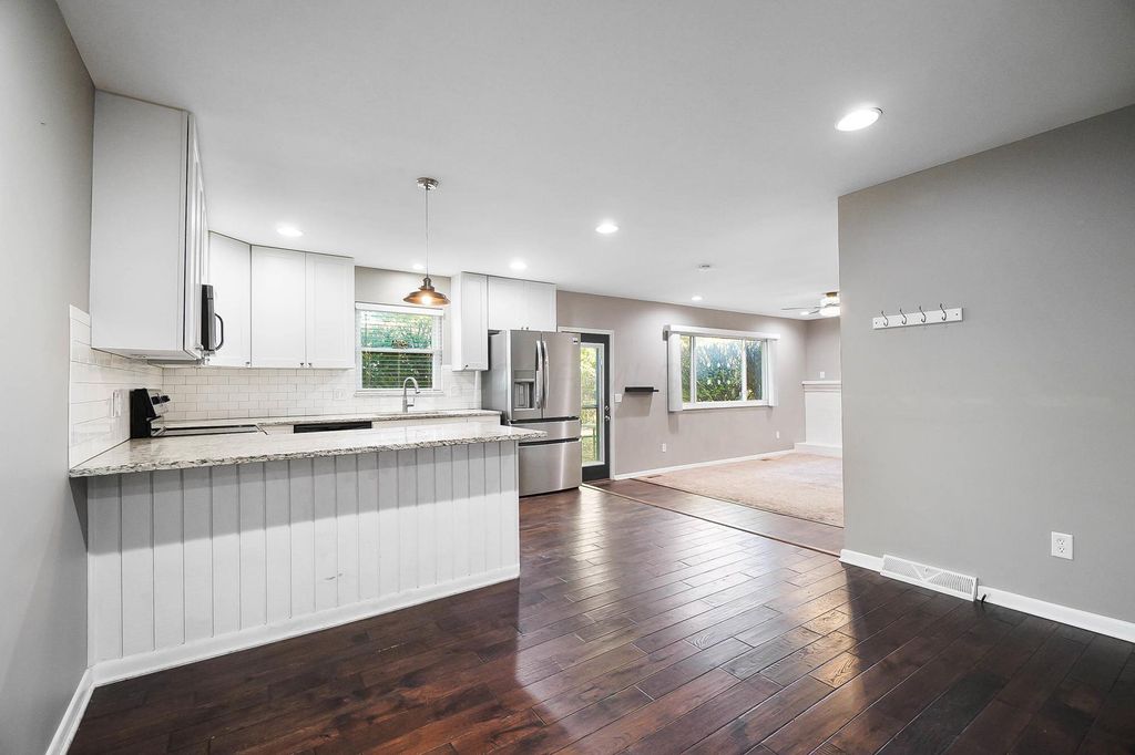 Updated, move-in ready 3 bedroom, 2 full bathroom ranch home with fully fenced yard and 2 car attached garage located in Westerville Schools with Columbus taxes! Open floor plan with wood laminate flooring in main living areas. Kitchen features white shaker cabinets, granite counters, and stainless-steel appliances. White 2-inch blinds and newer lighting throughout. Major updates include: roof (2021), garage door & opener (2019), front/back/garage interior doors (2018), back storm door (2024), HVAC (2017), hot water tank (2018), radon mitigation system (2018), windows (approx. 2017), and whole-house humidifier (2020). Clean basement ready to finish. Convenient to schools, shopping, and interstate access.