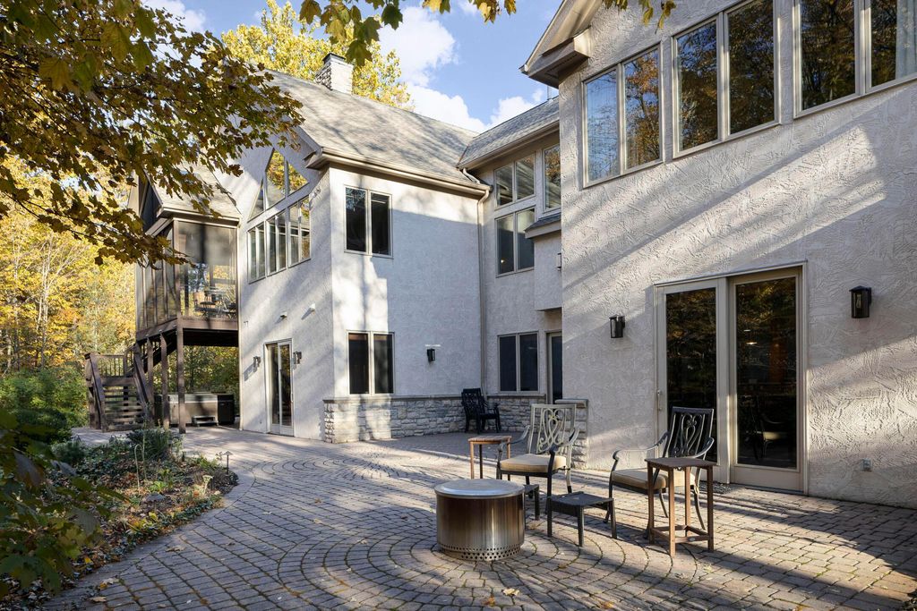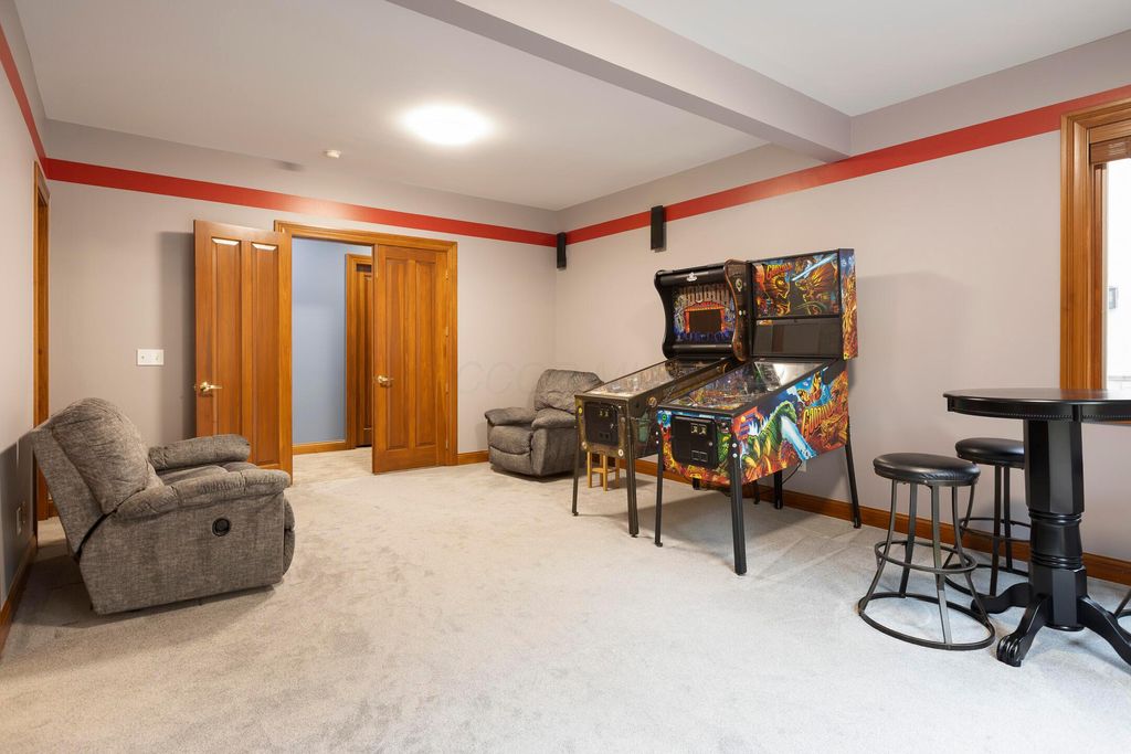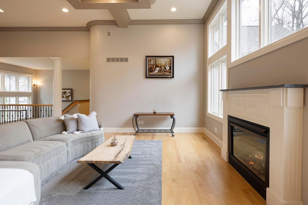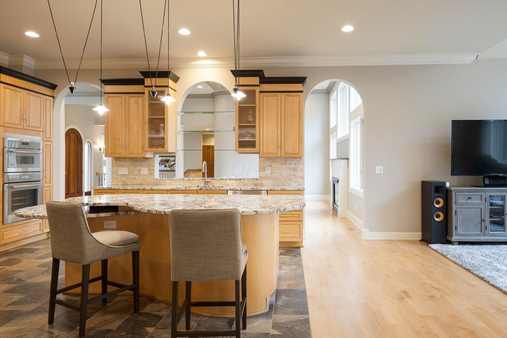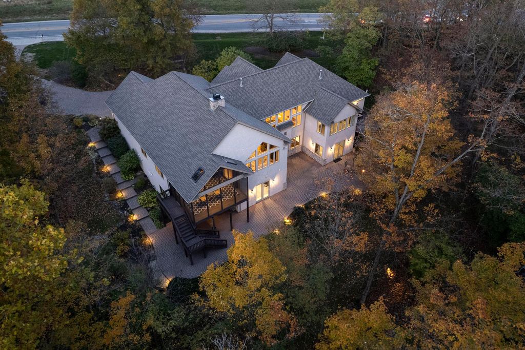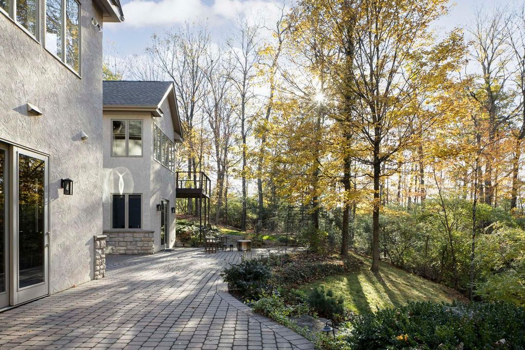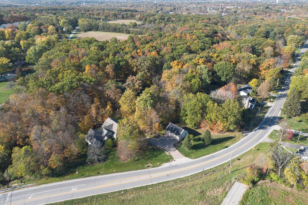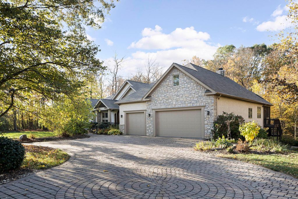 Nestled on a private, wooded 2-acre lot in Westerville, this custom stone and stucco ranch blends refined craftsmanship with serene natural surroundings. Designed for seamless indoor-outdoor living, the home backs to a picturesque ravine with a tranquil waterfall feature and offers multiple outdoor gathering spaces, including a screened-in and covered porch, expansive decks, and a custom paver patio"”perfect for both entertaining and quiet evenings alike. Inside, 10-foot ceilings and oversized windows fill each room with natural light while framing treetop views. The great room and primary suite both feature coffered ceilings, enhancing the home's architectural sophistication. The gourmet kitchen has been fully updated with new countertops, backsplash, and premium finishes, featuring a Thermador range and wall oven and a Sub-Zero fridge. Throughout the main level, all maple hardwood floors have been professionally refinished, adding warmth and elegance. Every bathroom has been beautifully renovated, and the laundry room has been fully remodeled with stylish finishes and functional upgrades. The walkout lower level extends the living space with new tile and carpet flooring, along with dedicated areas for a gym, game room, and lounge, all opening to the private wooded setting overlooking the ravine and waterfall. Car enthusiasts and hobbyists will appreciate the 3-car attached garage plus an additional 4-car detached garage equipped with solar panels. A rare combination of privacy, thoughtful design, and high-end finishes, this one-of-a-kind home delivers an exceptional wooded retreat just moments from Westerville amenities, parks, and New Albany.