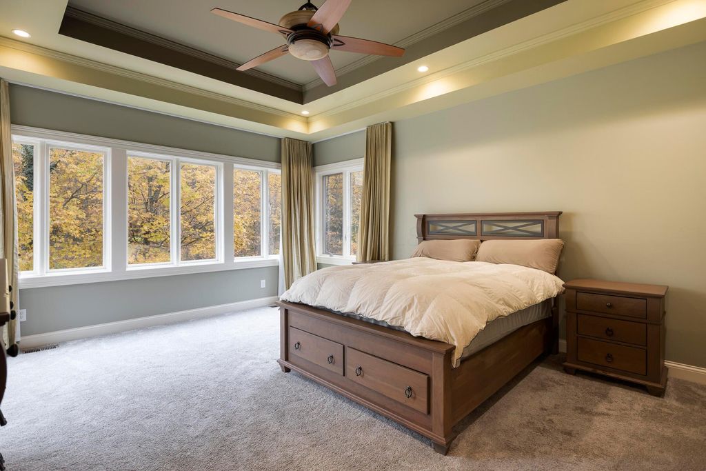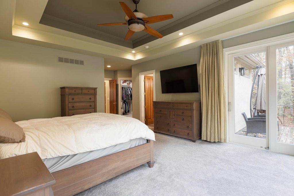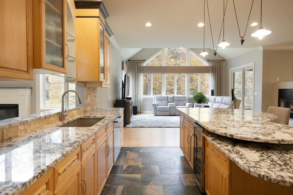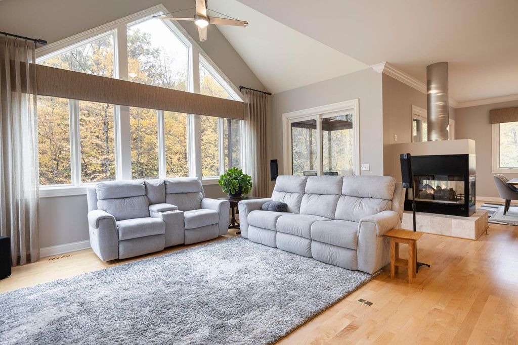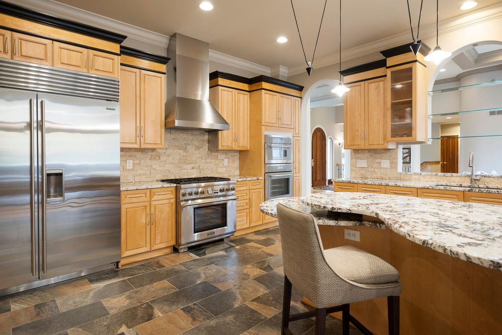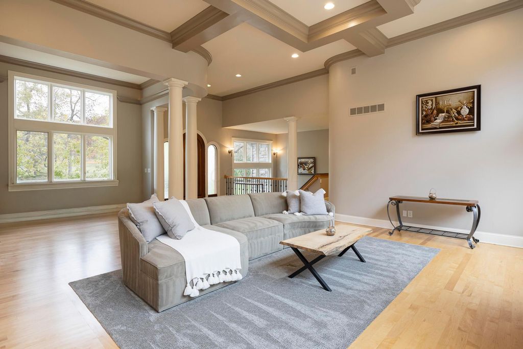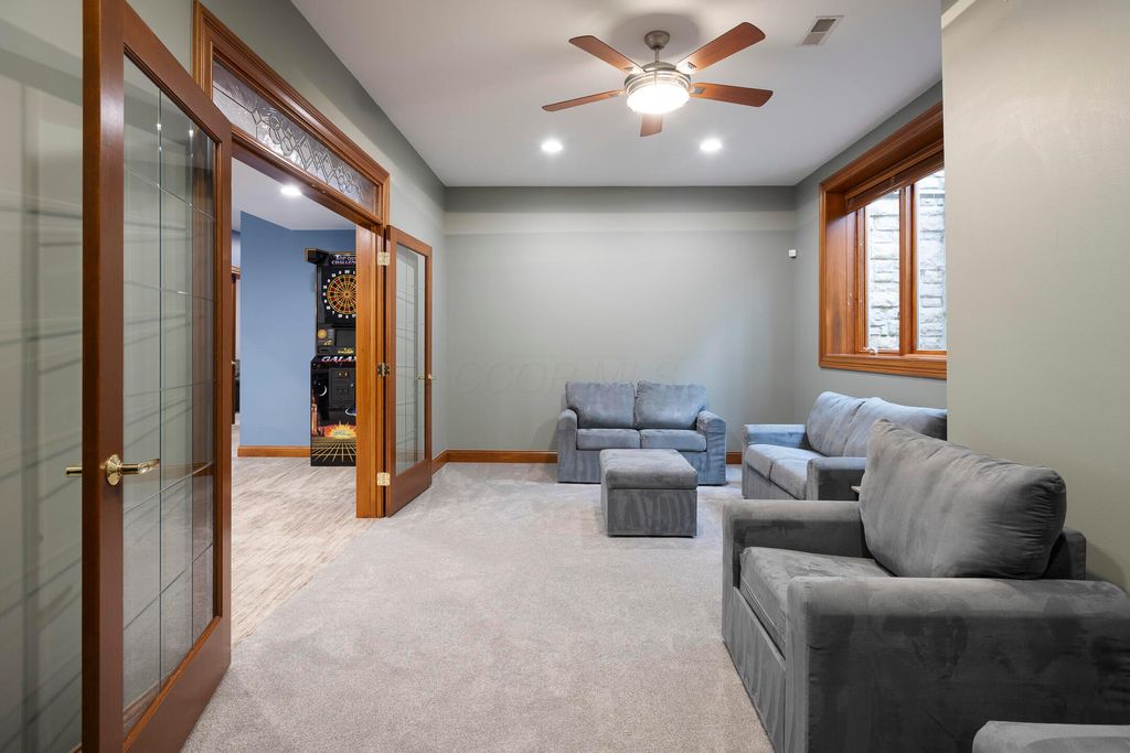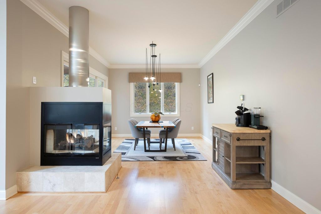 Nestled on a private, wooded 2-acre lot in Westerville, this custom stone and stucco ranch blends refined craftsmanship with serene natural surroundings. Designed for seamless indoor-outdoor living, the home backs to a picturesque ravine with a tranquil waterfall feature and offers multiple outdoor gathering spaces, including a screened-in and covered porch, expansive decks, and a custom paver patio"”perfect for both entertaining and quiet evenings alike. Inside, 10-foot ceilings and oversized windows fill each room with natural light while framing treetop views. The great room and primary suite both feature coffered ceilings, enhancing the home's architectural sophistication. The gourmet kitchen has been fully updated with new countertops, backsplash, and premium finishes, featuring a Thermador range and wall oven and a Sub-Zero fridge. Throughout the main level, all maple hardwood floors have been professionally refinished, adding warmth and elegance. Every bathroom has been beautifully renovated, and the laundry room has been fully remodeled with stylish finishes and functional upgrades. The walkout lower level extends the living space with new tile and carpet flooring, along with dedicated areas for a gym, game room, and lounge, all opening to the private wooded setting overlooking the ravine and waterfall. Car enthusiasts and hobbyists will appreciate the 3-car attached garage plus an additional 4-car detached garage equipped with solar panels. A rare combination of privacy, thoughtful design, and high-end finishes, this one-of-a-kind home delivers an exceptional wooded retreat just moments from Westerville amenities, parks, and New Albany.