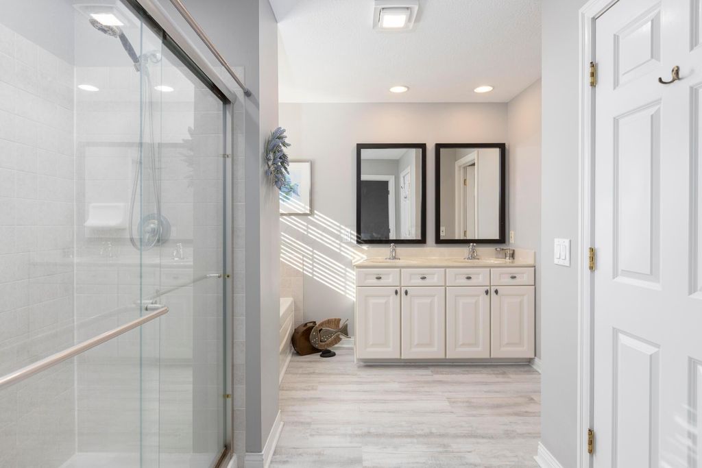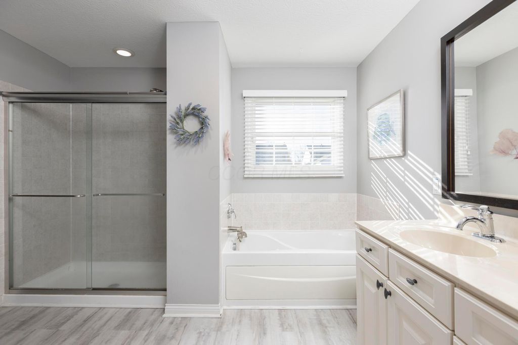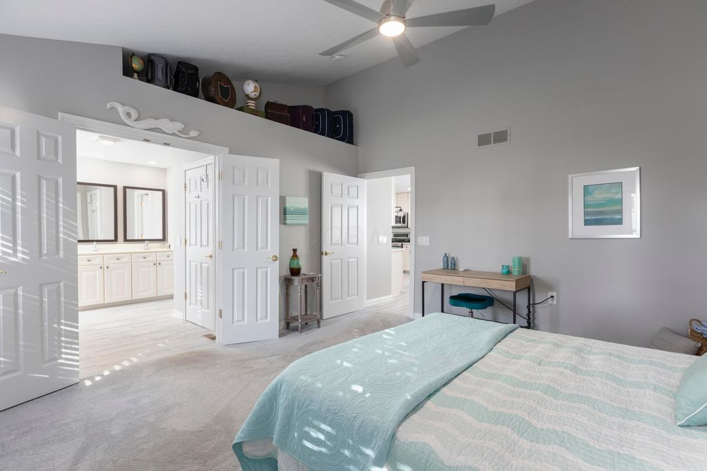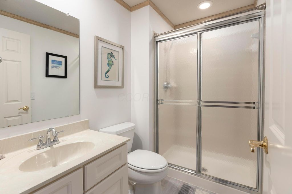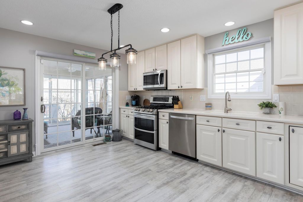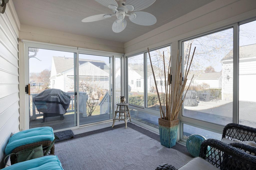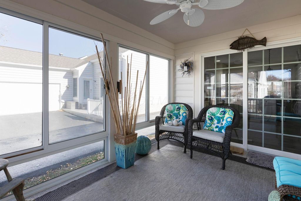 Rare oversized lot in the Dominion Club offers spacious ranch living with an open floor plan, 3 bedrooms, and 3 full baths. The kitchen features tile flooring, Corian countertops, new stainless-steel appliances, and direct access to a large screened-in porch perfect for morning coffee or evening gatherings. The main level includes three bedrooms, including an expansive primary suite with a walk-in closet and a newly remodeled ensuite bath with a walk-in shower. Two additional bedrooms share a full hall bath. The lower level dramatically expands your living space with a generous rec room with egress, a full bath, and a large workshop/storage area. Major improvements provide added peace of mind: all mechanicals were replaced in 2018, and the roof was updated in 2020. Enjoy a relaxed, low-maintenance lifestyle in this welcoming 55+ community featuring a clubhouse, pool, and easy access to parks, shopping, and local dining. Lawn care and snow removal are included, giving you more time to enjoy the amenities.