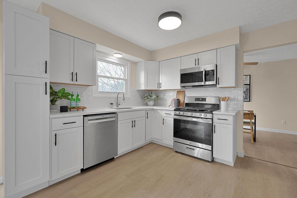 NEW Listing! Open House Sunday 11/30 from 12-2pm! Fully renovated with brand-new features throughout, this spacious 5-bedroom, 3.5-bath home offers modern living at its finest with nearly 3,300 square feet of finished living space! The entry level features new flooring, a large living room with a gas fireplace, a fully remodeled kitchen w/ quartz countertops, tile backsplash, new cabinets, & all new appliances featuring a gas stove, plus an eating area AND a formal dining room. A convenient first-floor laundry room, half bath, & a versatile flex room"”ideal for a playroom or home office"”add to the functionality. Upstairs, you'll find four bedrooms& two full baths. The primary bedroom features a large en-suite bathroom with a soaking tub! The walkout basement includes a fifth bedroom with a full bath and multiple rec/flex room. Outside, enjoy a huge deck, a large patio, and a fully fenced backyard with a high privacy fence. Situated on a quarter-acre lot with a 2-car attached garage, this home truly has it all.