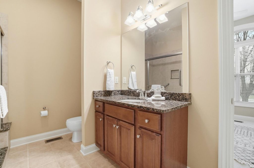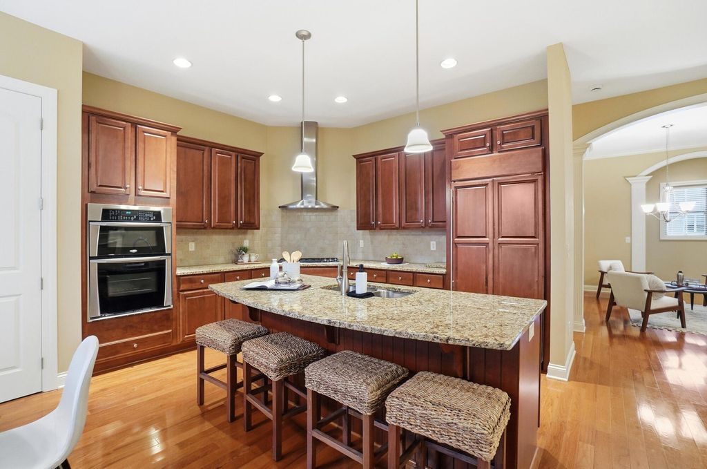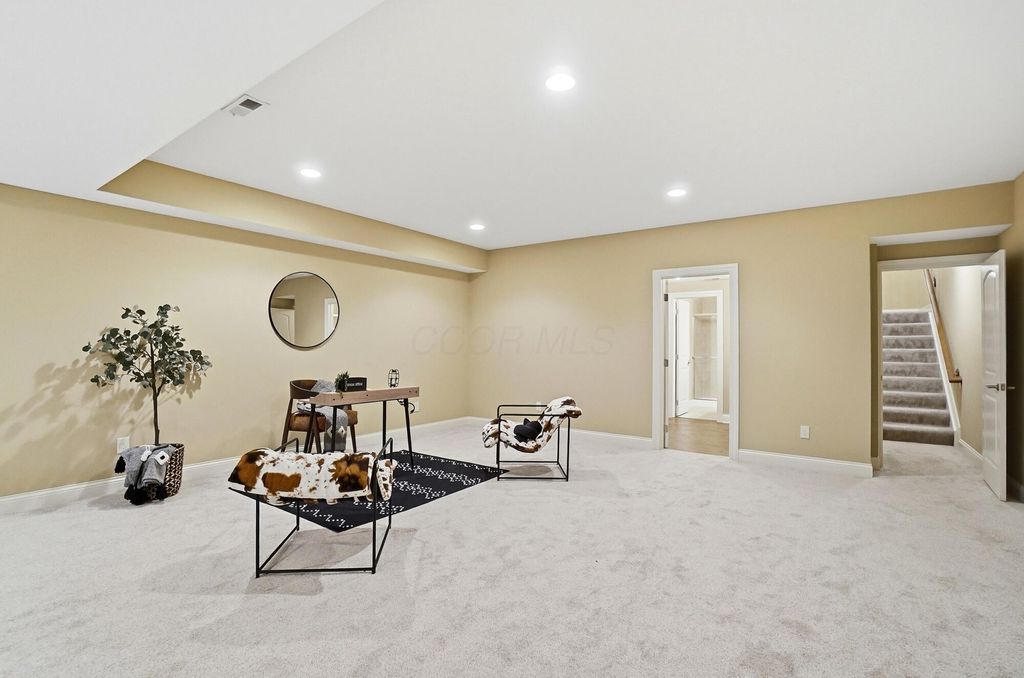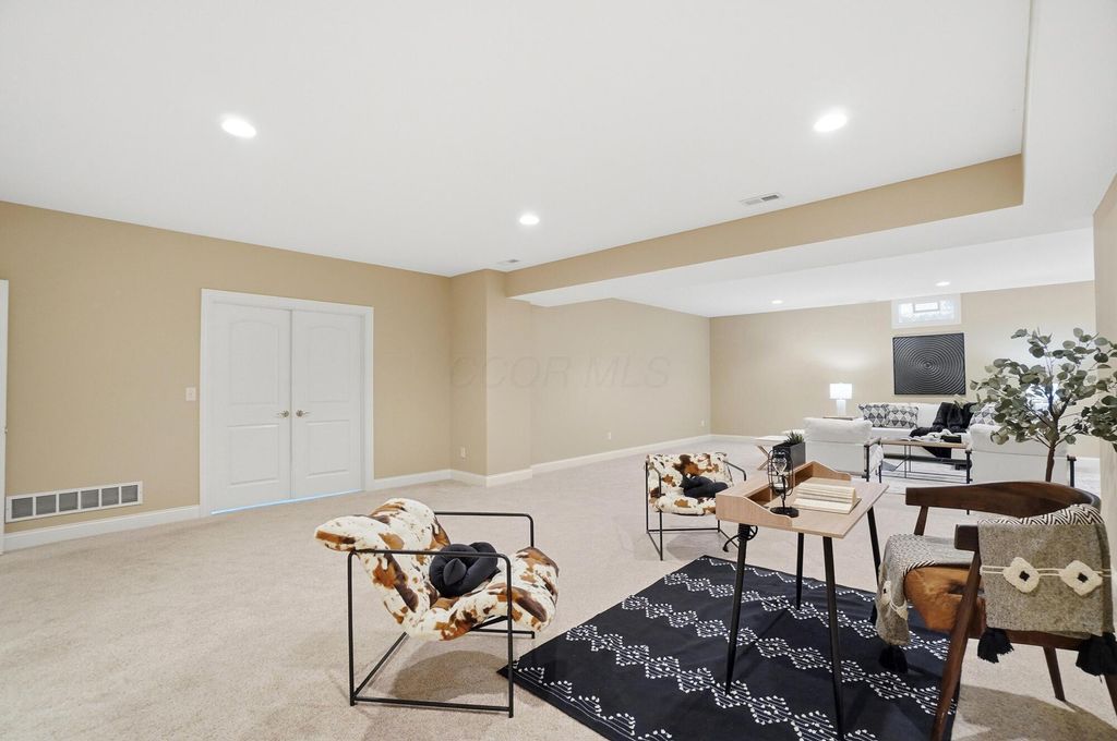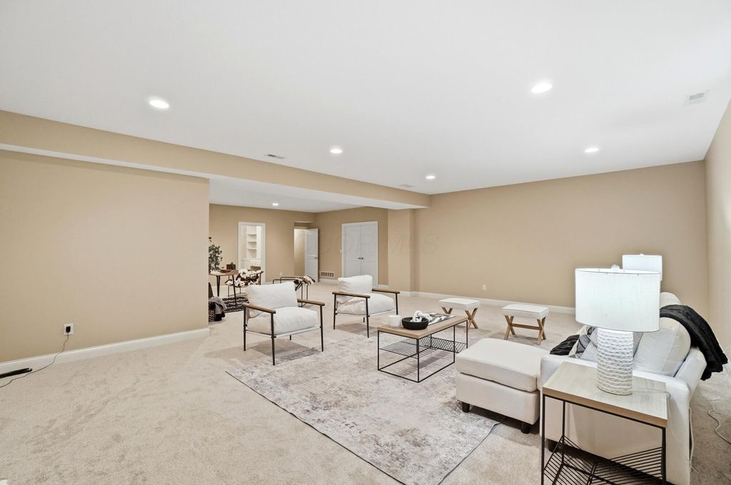 Welcome to this exceptional end-unit condo that perfectly balances elegance with practicality. This former model home showcases the superior craftsmanship that Romanelli and Hughes are renowned for, featuring thoughtful upgrades throughout that elevate everyday living. The heart of the home boasts custom maple cabinets paired with stunning granite countertops, creating a kitchen that's both beautiful and functional. Rich hardwood floors flow seamlessly through the foyer, great room, and kitchen areas, while newer carpeting adds warmth to the remaining spaces. The spacious primary suite opens directly to a delightful screened porch, offering a private retreat where morning coffee tastes even better. The primary bathroom pampers with a luxurious whirlpool tub, perfect for unwinding after long days. The basement truly sets this property apart, featuring a massive recreation room, dedicated office space, workout area, and full bathroom - essentially a second living area with endless possibilities. Additional unfinished space provides generous storage for life's necessities. Practical touches include a Generac whole house generator, ensuring comfort regardless of weather surprises. Privacy is afforded by this thoughtfully positioned end unit, while the meticulously maintained community offers resort-style amenities including a clubhouse, fitness facility, and sparkling pool. The location provides convenient access to Powell's charming downtown restaurants and shopping, combining suburban tranquility with urban convenience. This two-bedroom, two-bathroom home represents quality construction, thoughtful design, and move-in readiness - a rare combination that transforms houses into homes and creates the foundation for countless future memories.