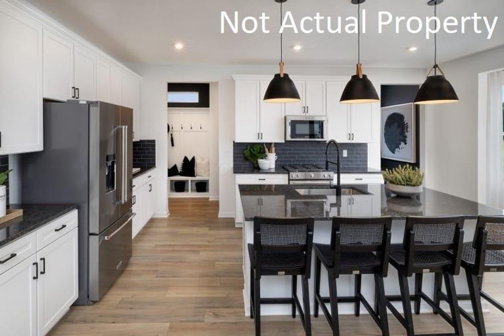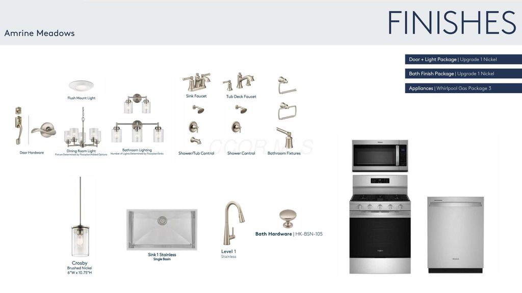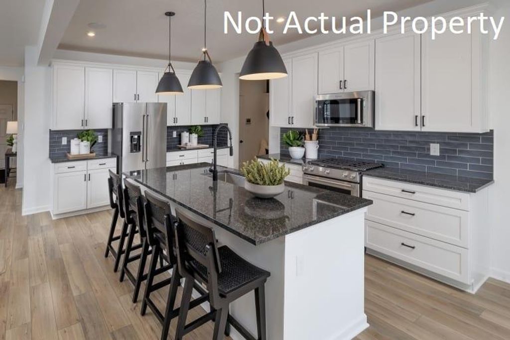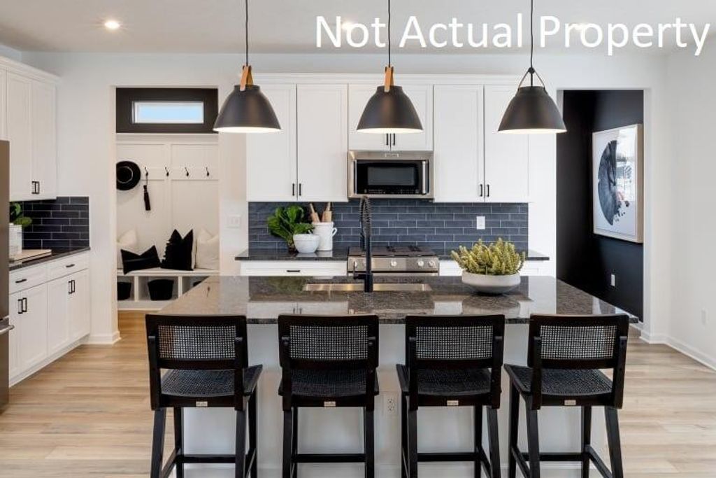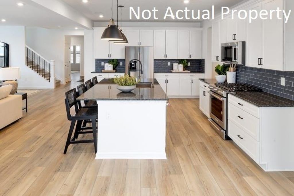 ESTIMATED COMPLETION BY THE END OF JANUARY. This is a wonderful new 4 bed 2.5 bath home in Amrine Meadows. The kitchen has stainless Whirlpool gas appliances, dana white purestyle cabinets, lyra quartz counters, warm gray hues cement backsplash, an upgraded stainless steel single bowl sink with a sleek moen faucet, a pantry, a spacious island with room for seating and beautiful pendant lighting. The primary suite has a private bath with a double bowl sink, blanco maple quartz counter, a walk-in tile shower, a linen closet and a huge walk-in closet. An add'l 3 bedrooms, a full bath with double bowl vanity and a laundry room with storage. An open great room and eating space, a home office with French doors, a powder room and 2 car garage. Full 8' basement with rough-in plumbing and an egress window. Nickel finishes and fixtures. Painted white rail and wrought iron spindles. Luxury vinyl plank flooring main level. Smart home features included. Great location with easy access to everyday conveniences. Interior photos are of a model, not the actual home.