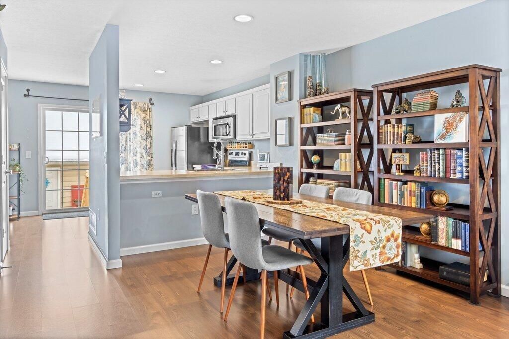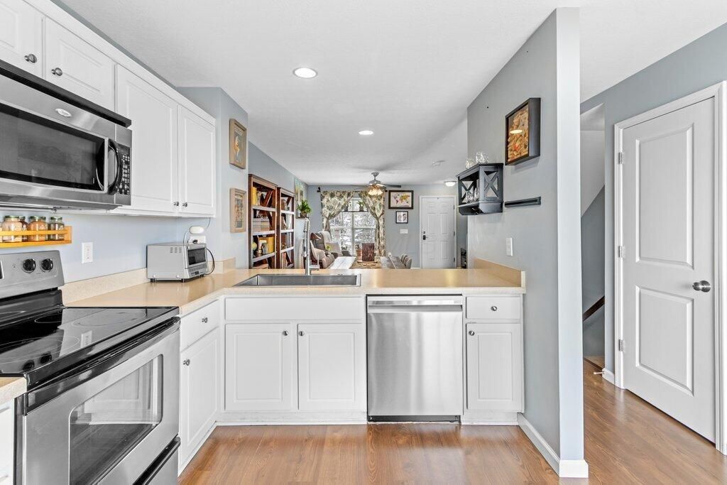 Nothing to do but move in and enjoy this well maintained 2 bedroom, 2.5 bath condo with a finished lower level and a 1 car detached garage. The open first floor features a spacious living room, dining area, and kitchen with eating space, stainless steel appliances, farmhouse sink, and pantry. Upstairs offers a large primary suite with a private full bath and two closets, plus a second generous bedroom and an additional full hall bath. The finished lower level with half bath provides extra living space, along with a separate laundry room and ample storage. The community includes a pool, clubhouse, weight room, cardio room, yoga studio, park, and plenty of green space. Conveniently located near The Goat, shops and grocery .5 miles away! Updates include: new carpet and paint in 2020, new dishwasher in 2024, new kitchen sink, disposal and hot water heater in 2025.