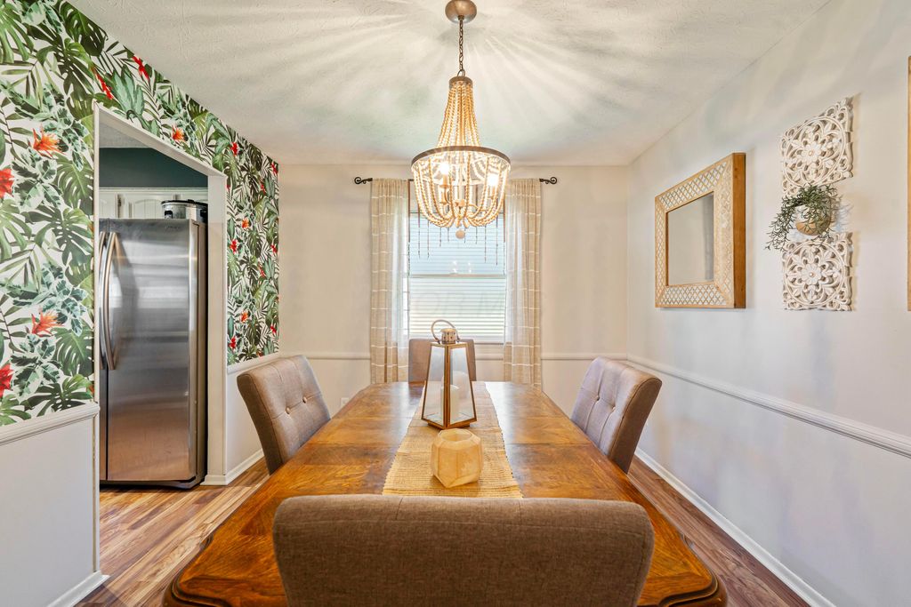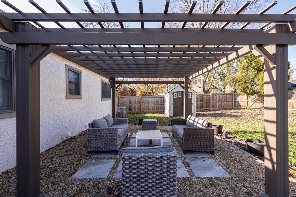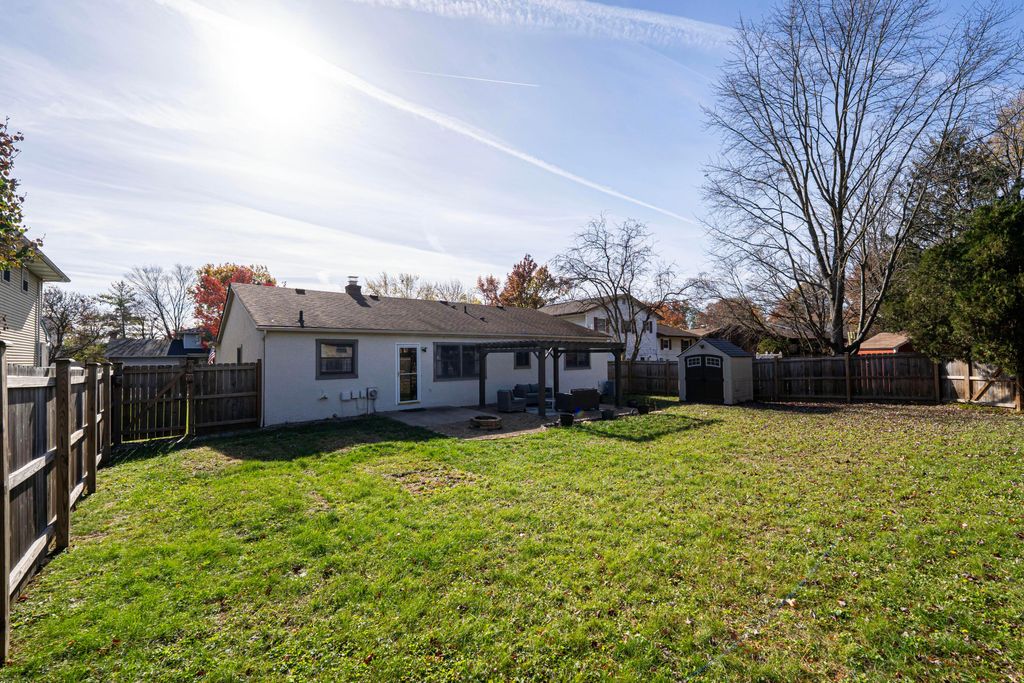 Tastefully updated and charming ranch style home located in Northern Woods. As you enter the property, the inviting living room has been upgraded with wainscoting, a tiled fireplace and laminate flooring. The kitchen and spacious dining area are complete with white cabinetry + stainless steel appliances. The main bath boasts a subway tiled surround, ceramic flooring and a updated vanity. The owner's bedroom is complete with new LVP flooring, and attached bath with upgraded vanity and tiled shower. The living space also includes two additional generously sized bedrooms, a first floor laundry area, and a den that has been converted to a home gym (can easily be converted back if desired). A finished basement rec-room adds additional space, and a fully fenced-in back yard with new pergola +patio round out the property. Other updates include: Electrical Panel (2025), Radon system (2021), A/C unit (2023), Wooden Fence & Gate (2022), Hot Water Heater (2023), Gutters (2023), Basement Carpet (2024), Pergola/Patio (2023). This well cared for home is a must see. See listing for complete list of updates.