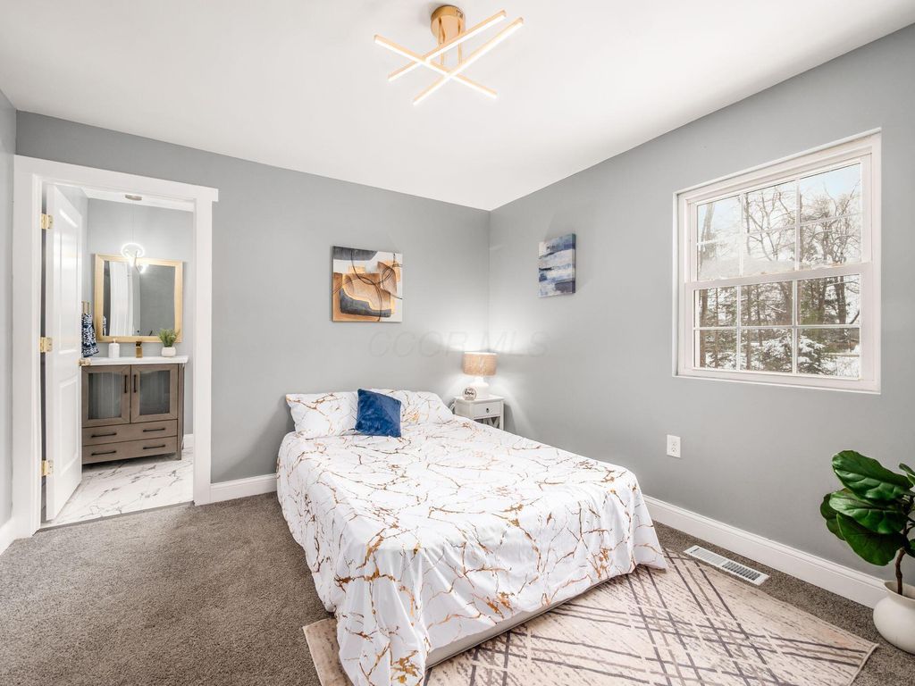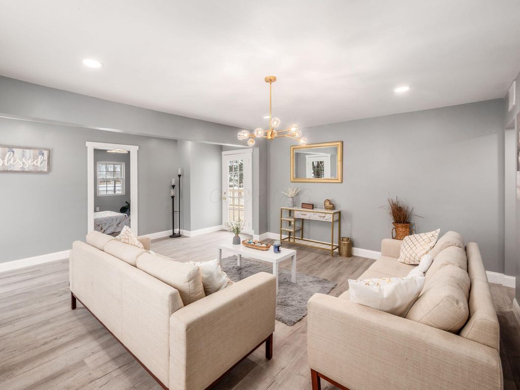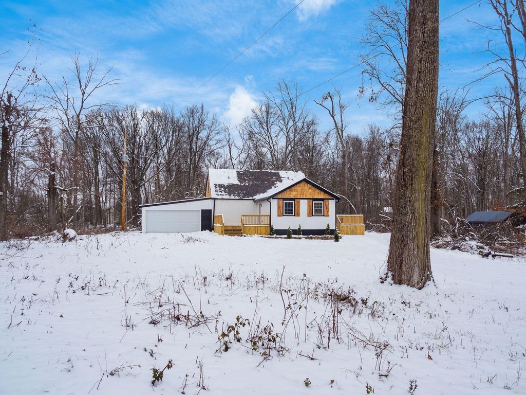Tucked away in a wooded setting, this inviting 1.5-story home offers modern living with plenty of privacy on nearly two acres. Inside, the bright and open main level features new flooring, updated lighting, and windows that bring in natural views from every direction. The beautifully remodeled kitchen includes brand-new cabinetry, quartz countertops, stainless steel appliances, and stylish gold accents, giving the space a clean, contemporary feel. The first-floor primary suite provides convenient single-level living with its own fully updated bathroom, while two additional bedrooms on the main floor offer flexibility for guests, a home office, or hobbies. A first-floor laundry room makes day-to-day routines simple and efficient. Upstairs, the spacious fourth bedroom offers even more flexibility"”great for an office, playroom, studio, or private retreat. Both bathrooms have been thoughtfully redesigned with modern tilework, updated vanities, and fresh finishes for a move-in-ready experience. Outside, two brand-new decks extend your living space outdoors and are perfect for relaxing, hosting, or enjoying the wooded surroundings. A long driveway leads to the home, offering privacy from the road and plenty of parking. With nearly two acres to explore and a comfortable, updated interior, this home blends peaceful outdoor living with stylish indoor updates, creating a welcoming retreat that's ready for its next owner.