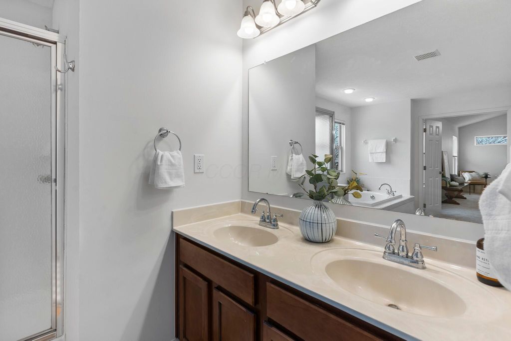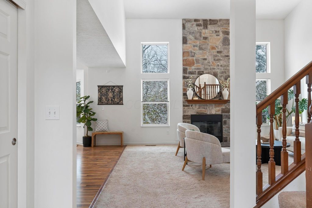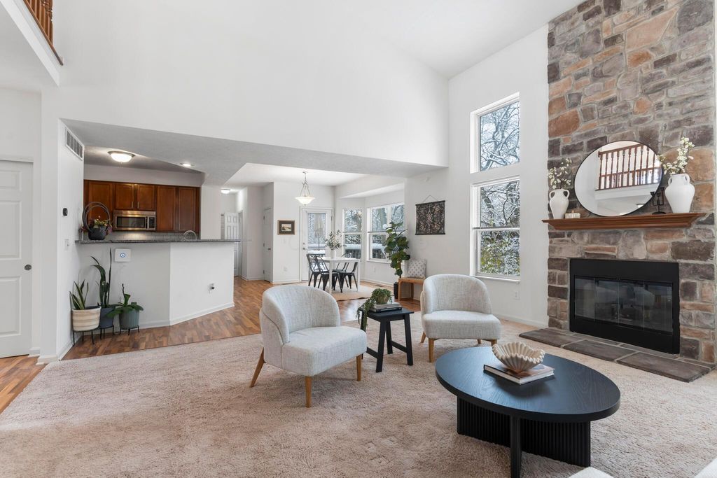 Welcome to this immaculate 2-story home with 2,568sf of living space located in Dublin's Cramers Crossing neighborhood! First floor features 2-story foyer with storage space, sitting room/office, dining room, laundry room, half bathroom, spacious kitchen with stainless-steel appliances (gas stove), custom cabinets and granite countertops, cozy eat-in space overlooking the backyard, and massive great room with stone fireplace. Second floor features 4 bedrooms and 2 full bathrooms. Huge owner's suite with vaulted ceiling opens to ensuite with soaking tub, shower, walk-in closet and spacious vanity with 2 bowls. Unfinished basement provides plenty of storage options and includes 2 egress windows. Attached two-car garage with side exterior access. Raised, two-story deck overlooks private, tree-lined backyard. .22-acre lot has neighbors on only one side"”other side is a wooded, unbuildable lot. Property located across the street from Dalmore Park. Roof new in 2024. HVAC new in 2023. New paint throughout in 2025. Feeds into Hilliard Schools with quick access to shopping, restaurants, and over 150 miles of Dublin's recreation paths!