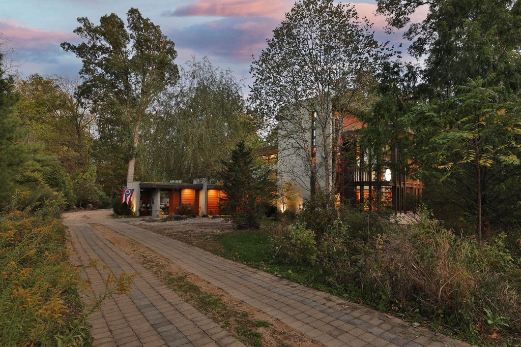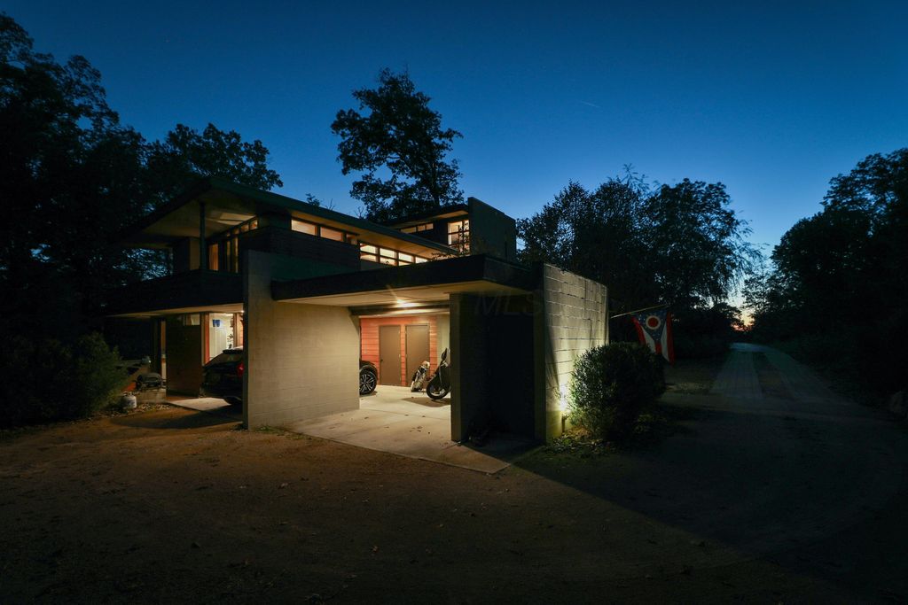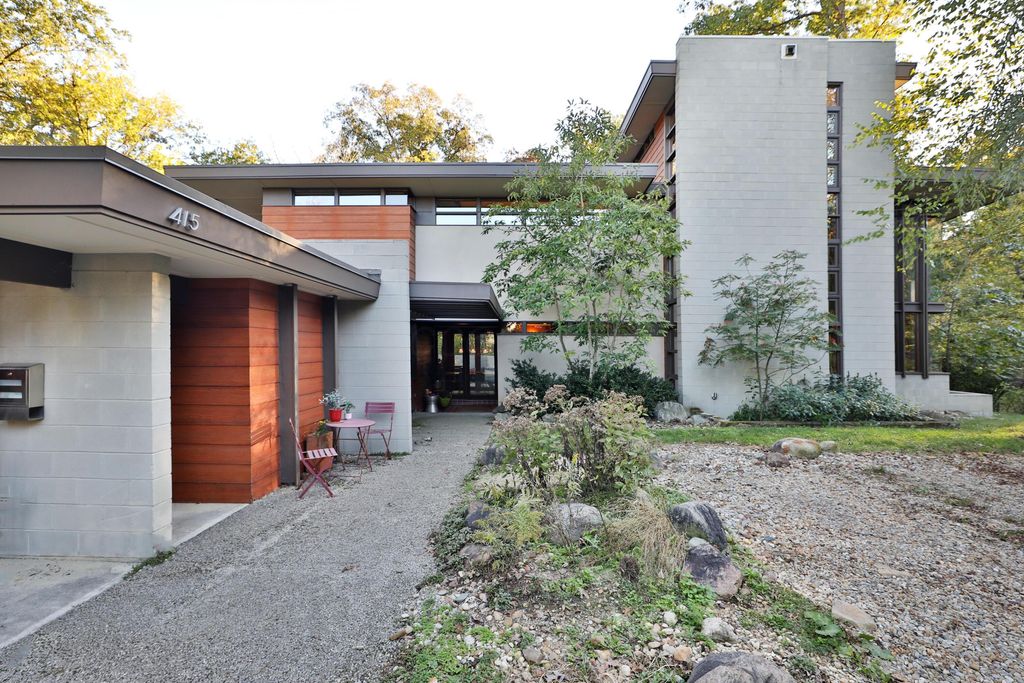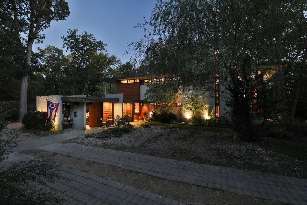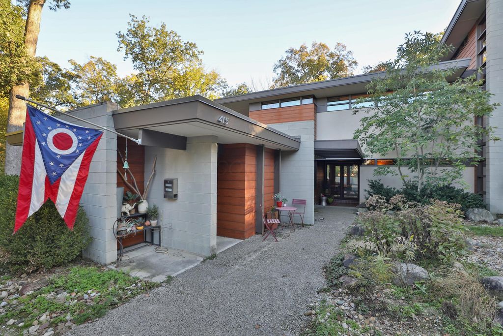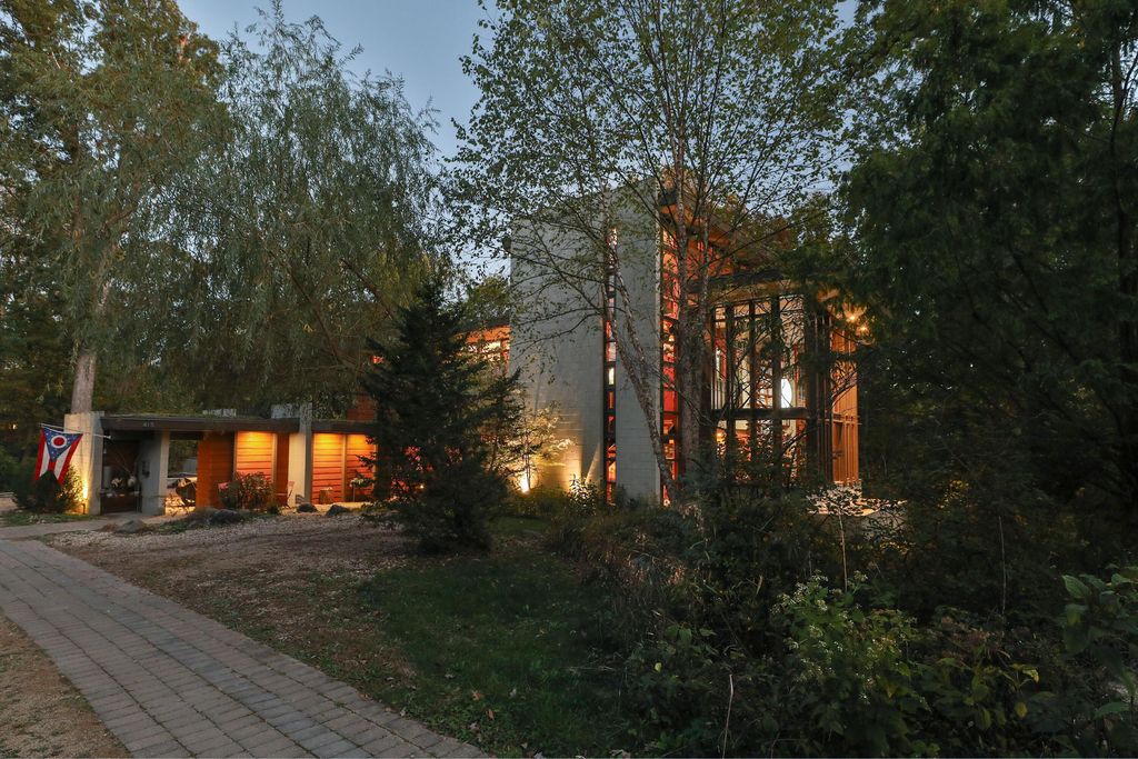 Discover a once-in-a-lifetime opportunity in Rush Creek Village, Worthington's most architecturally significant enclave. Thoughtfully crafted to honor the principles of organic architecture, 415 E South St stands as Central Ohio's first privately funded LEED-certified residence"”a landmark achievement in sustainable, site-responsive design. Perfectly integrated into its natural ravine setting, this 4-level contemporary home offers 4 bedrooms, 2.5 baths, and an effortless connection between indoor comfort and the surrounding landscape. Expansive windows invite wooded views into every level, creating a sense of serenity and privacy rarely found this close to the heart of Old Worthington. A separate studio/guest suite provides exceptional flexibility for creative pursuits, multigenerational living, or a private retreat. Outside, the peaceful ravine backdrop enhances the home's quiet, modern character while the location places you just steps from Worthington's village shops, restaurants, parks, and schools. More than a home, this is a legacy property"”a rare chance to live within one of Ohio's most distinctive architectural communities, inspired by the timeless, nature-driven principles of Frank Lloyd Wright.
