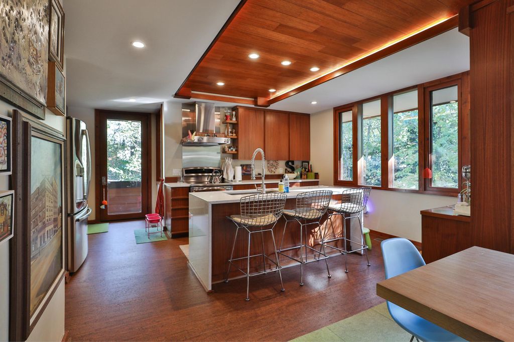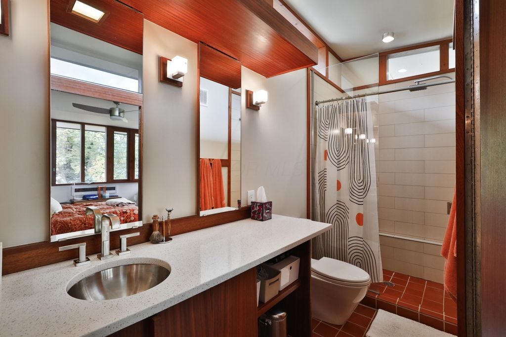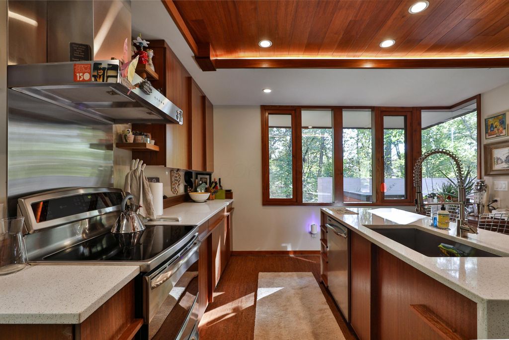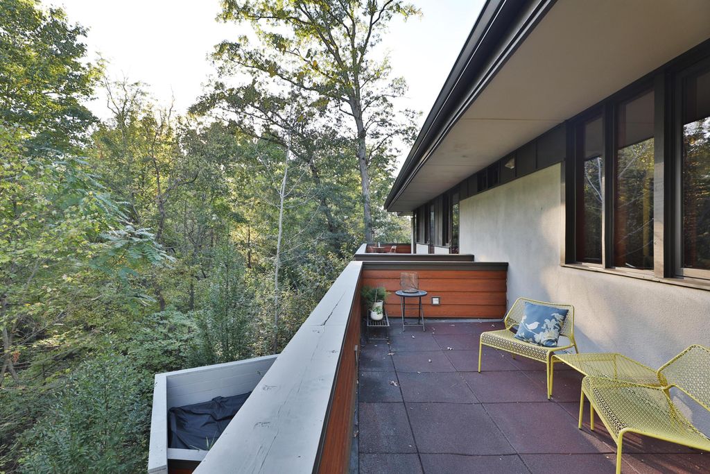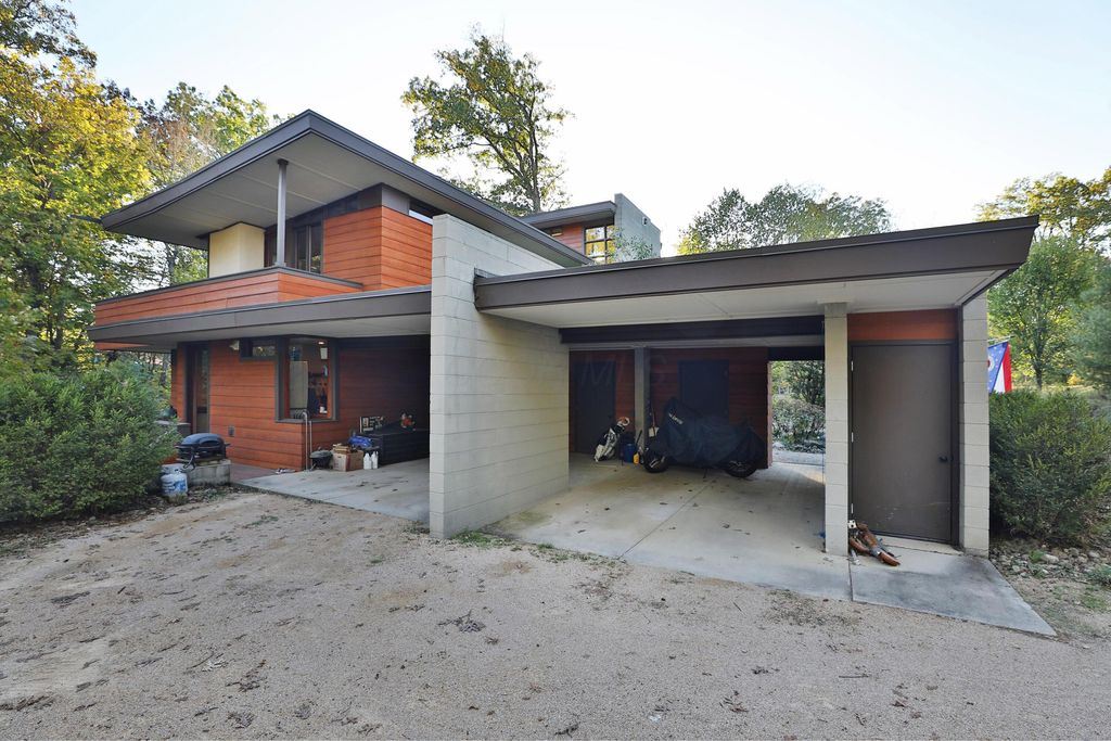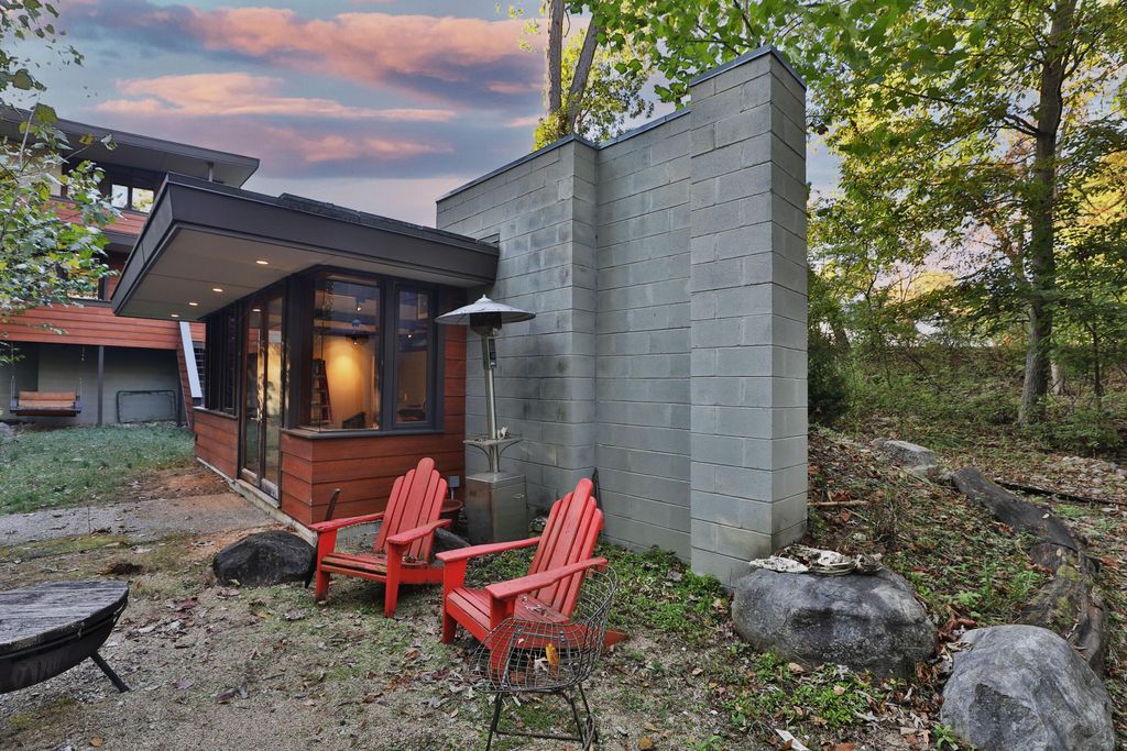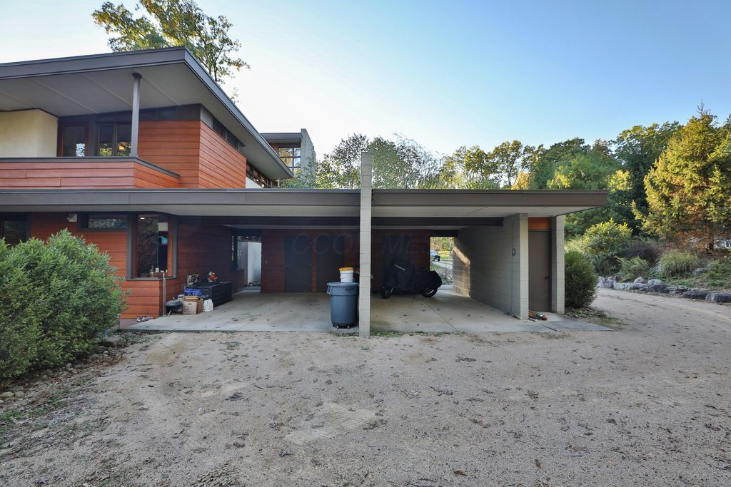 Discover a once-in-a-lifetime opportunity in Rush Creek Village, Worthington's most architecturally significant enclave. Thoughtfully crafted to honor the principles of organic architecture, 415 E South St stands as Central Ohio's first privately funded LEED-certified residence"”a landmark achievement in sustainable, site-responsive design. Perfectly integrated into its natural ravine setting, this 4-level contemporary home offers 4 bedrooms, 2.5 baths, and an effortless connection between indoor comfort and the surrounding landscape. Expansive windows invite wooded views into every level, creating a sense of serenity and privacy rarely found this close to the heart of Old Worthington. A separate studio/guest suite provides exceptional flexibility for creative pursuits, multigenerational living, or a private retreat. Outside, the peaceful ravine backdrop enhances the home's quiet, modern character while the location places you just steps from Worthington's village shops, restaurants, parks, and schools. More than a home, this is a legacy property"”a rare chance to live within one of Ohio's most distinctive architectural communities, inspired by the timeless, nature-driven principles of Frank Lloyd Wright.