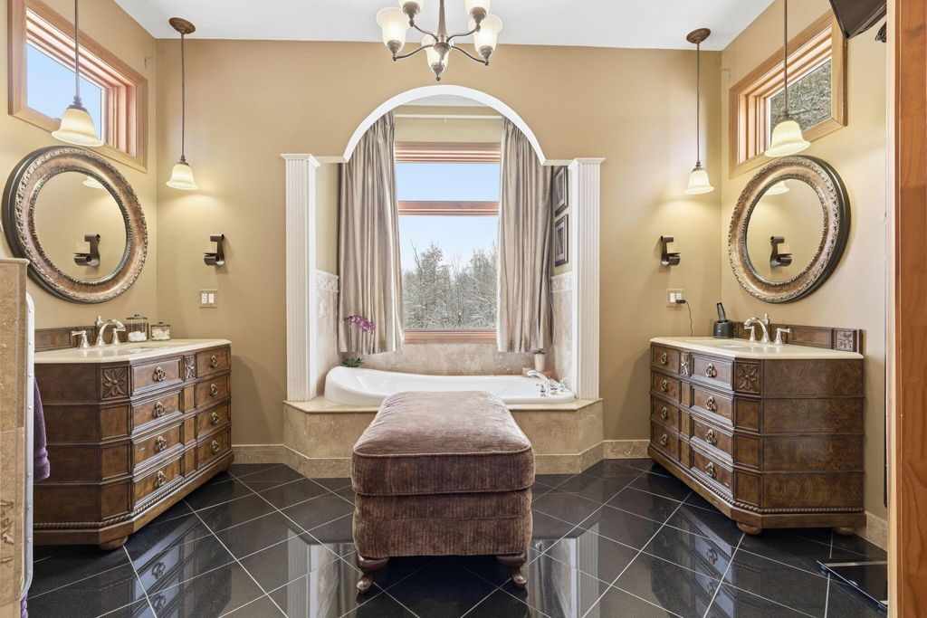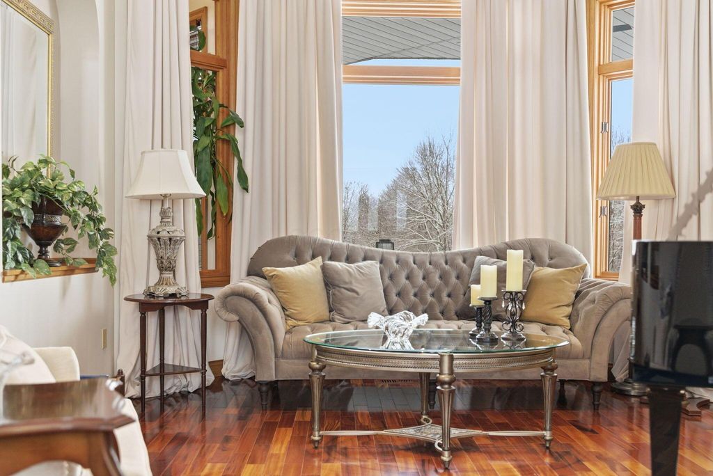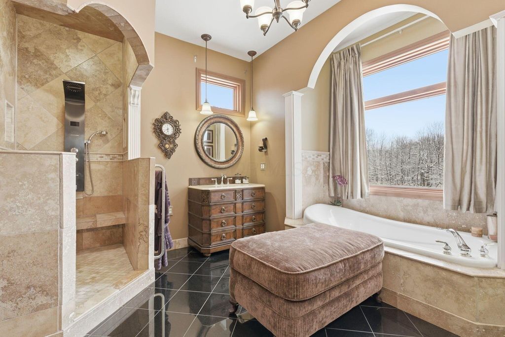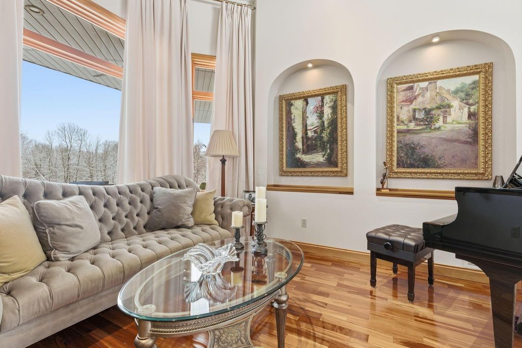 Discover the retreat you've been dreaming of"”an exquisite custom gated estate nestled on nearly 7 acres of secluded, private grounds. This one-of-a-kind residence was masterfully crafted for refined living and effortless entertaining, featuring a picturesque pond with pavilion and a tranquil rear porch that gazes out over lush woods and a gentle stream. Inside, every detail has been intentionally curated. The chef's kitchen is a true showpiece, boasting dual islands, two ovens, double dishwashers, a touchless faucet, and an oversized refrigerator"”perfect for hosting on any scale. Elegant living spaces include a formal living room, an expansive great room with a gas/wood-burning fireplace, a dedicated office, a formal dining room, and a sunlit eat-in area. French doors lead into the first-floor primary suite which is a sanctuary unto itself, offering a spacious sitting area with a gas/wood fireplace and a spa-inspired en-suite featuring heated floors, a heated-jet soaking tub, and a separate shower. Two additional first-level bedrooms with the second full bath provide comfort and convenience. The impressive lower level is designed for entertainment and relaxation, complete with a stylish kitchenette, a large recreation and theatre space with a gas fireplace, two egress bedrooms, the third full bath, a versatile flex room, abundant storage, and a crawl space. A generous 2+ car garage anchors the property, with ample room to expand should you desire. This is luxury, privacy, and craftsmanship at their finest.