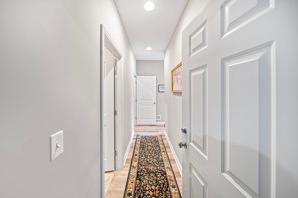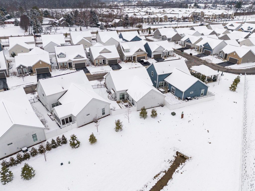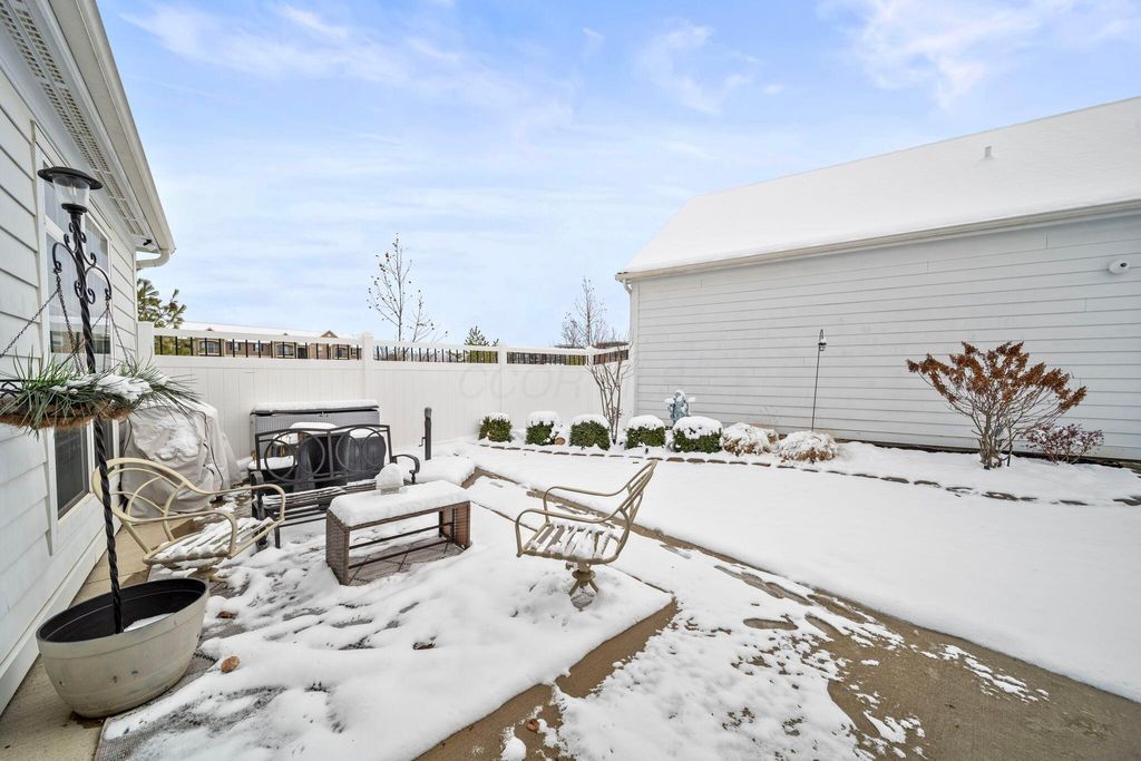 Located in the desirable private community of Villas of Castleton, this meticulously maintained ranch-style home blends modern comfort, refined design, and rare outdoor space. The open-concept layout flows from the great room's cozy gas-log fireplace into a bright white kitchen featuring a walk-in pantry, exterior-vented hood, upgraded plank flooring, and a large entertainer's island. The serene owner's suite offers a beautifully designed bathroom with a large stand-up shower, elegant tilework, and contemporary fixtures, creating a spa-like retreat. In addition to two spacious bedrooms, a versatile office/den provides the option for a third bedroom or recreation room, adding valuable flexibility. Convenience is further enhanced by first-floor laundry and an attached two-car garage. Step outside to one of the largest fully fenced backyards in the entire community, complete with a patio, ideal for relaxation, entertaining, or outdoor dining. Built in 2020 and cared for with true pride of ownership, this home offers low-maintenance living just minutes from Tuttle Crossing, Dublin Methodist Hospital, parks, dining, and quick access to I-270"”delivering exceptional comfort and lifestyle in a prime Dublin location