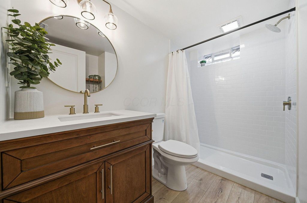 Beautifully renovated home just minutes from German Village and Nationwide Children's Hospital! This 3-bed, 2-bath ranch showcases comprehensive renovations to include new flooring, paint, and updated lighting, trim, doors and hardware throughout. The modern kitchen boasts a new backsplash, stainless steel appliances, quartz countertops and custom solid wood shelving. Modernized lighting enhances the ambiance, and professionally installed new HVAC system ensures year-round comfort. The finished basement adds valuable living space, complete with two rooms that can be used as bedrooms, a great room and a full bathroom complemented by a new fenced in yard for privacy with huge concrete patio perfect for entertaining or relaxing. All right across the street from Karns Park. All new windows, roof, vinyl siding, gutters, garage door, garage door opener, glass block windows, concrete driveway, walkways, and exterior doors.