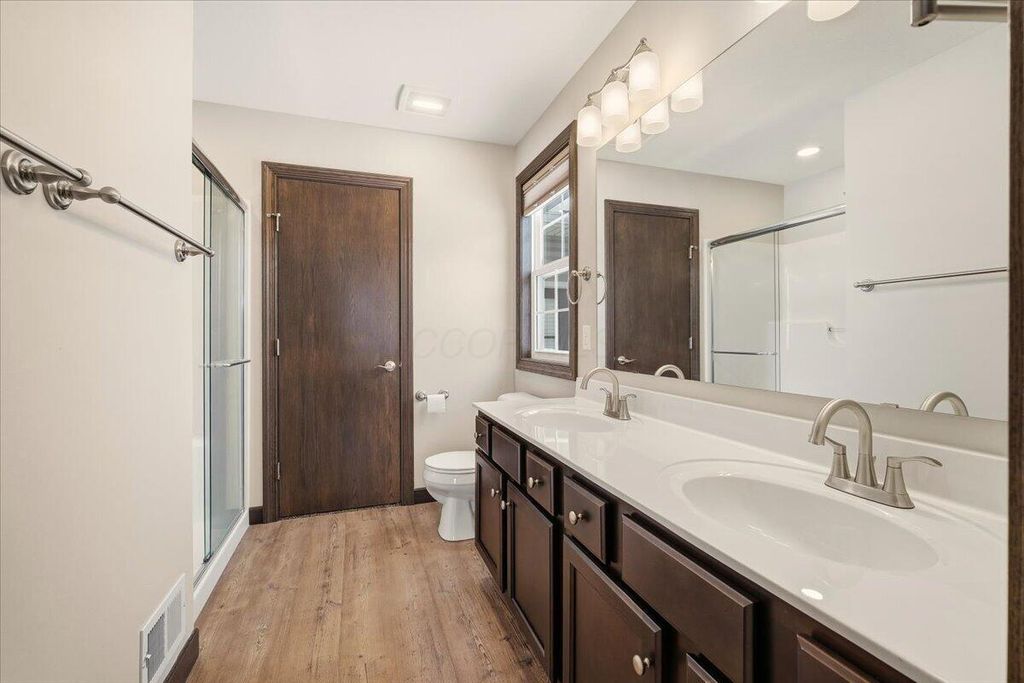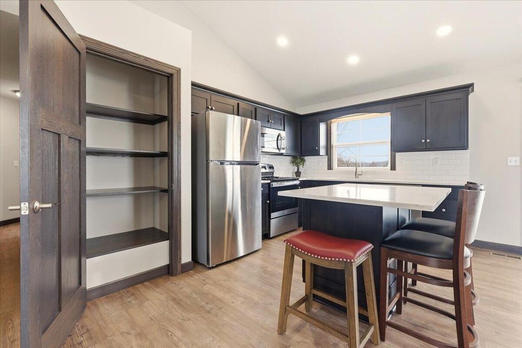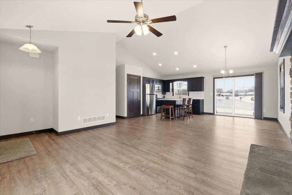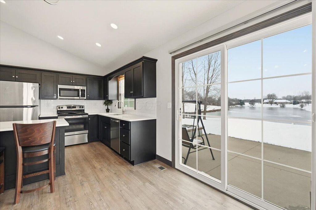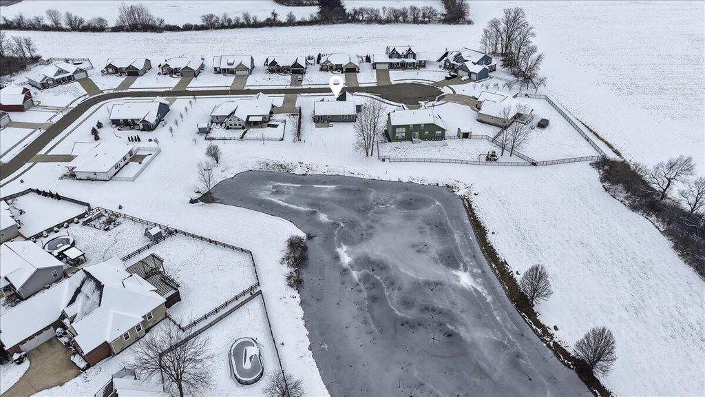 Such a Rare Find with ''WALKABILITY'' and VIEWS! Like-new Schlabach custom-built ranch on a .27 acre lot, - perfectly situated on a quiet court in front, and backing to a huge scenic pond in the back! Enjoy uninterrupted and scenic water views from nearly every rear window, or step out onto the 16x16 patio to relax, grill, and take in the peaceful, picturesque sight! From the moment you enter, you'll be impressed! The bright, vaulted great room features a stunning floor-to-ceiling stone fireplace with raised hearth and mantle and is open to a spacious dining area and gorgeous granite kitchen. The kitchen features a center-island eating bar, walnut-stained paneled cabinetry, Laminate hdwd floors, a huge pantry and elegant white granite counters. The primary suite offers a double-vanity bath with seated shower & walk-in closet. Fantastic 3-car width concrete driveway leading to an oversized 21' x 29' garage (room for an extra small car), a full basement with bath rough-in for easy finishing and a whole-house Generac generator. Walk to Centerburg coffee shops, diner, pizza, tavern, library, markets, banks, churches and the Heart of Ohio Trail and Memorial Park! Built in 2020, move-in condition!
