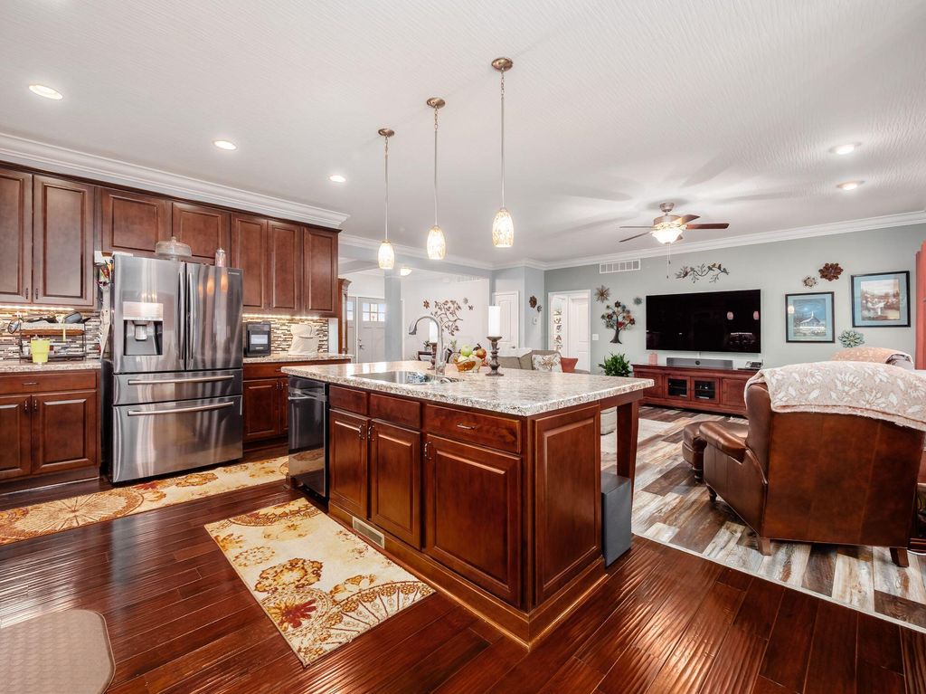 Welcome home to this custom 3 bedroom, 2 bath retreat nestled on 1.6 partially wooded acres in the highly sought after Hainsview Estates. A charming covered front porch sets the tone as you step inside to an inviting open concept layout. The stunning stone fireplace immediately catches your eye. The warmth of the living area flows seamlessly into the kitchen, complete with island, large pantry, ample cabinetry and modern finishes. Beyond the main living room, this home offers exceptional flexibility with a formal dining room, family room, and a spacious lower level den. The primary suite offers Trey ceilings, walk in closet, and private bath complete with shower, dual sinks, and soaking tub, while main floor laundry makes everyday living effortless. The expansive lower level is already plumbed for a third full bath, giving you endless potential to expand or customize the space to fit your needs. With its peaceful setting, thoughtful layout, and room to grow, this home is truly designed for all the days of your life.