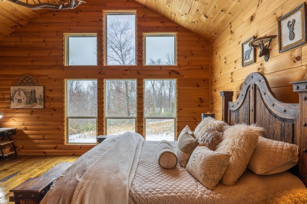 Discover a rare 60-acre retreat where rustic comfort meets incredible outdoor living. This 3-bedroom, 2-bath cabin welcomes you with warm wood interiors, soaring vaulted ceilings, and stunning wide-plank floors crafted from Athens County timber. Three wood-burning fireplaces, including one on the front porch,create cozy gathering spaces throughout the seasons. The open layout flows into a bright kitchen and living area, while the loft offers untapped potential for extra sleeping space, quiet reading nook or storage. Step outside with super easy access to a hunter's paradise: established food plots of turnips, clover, and soybeans, multiple deer stands, feeders, and watering holes, everything in place to attract and sustain trophy whitetail. A spacious barn with storage and a loft keeps equipment organized and sheltered. The hilltop setting delivers unforgettable sunrise and sunset views, with hunting literally a few hundred feet from your back door. You'll feel worlds away, yet you're just minutes to shopping, dining, and all of Athens' conveniences. Whether looking for a weekend retreat, hunter's paradise, or primary residence, this is a view you'll never forget!