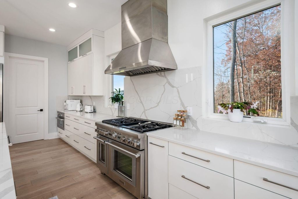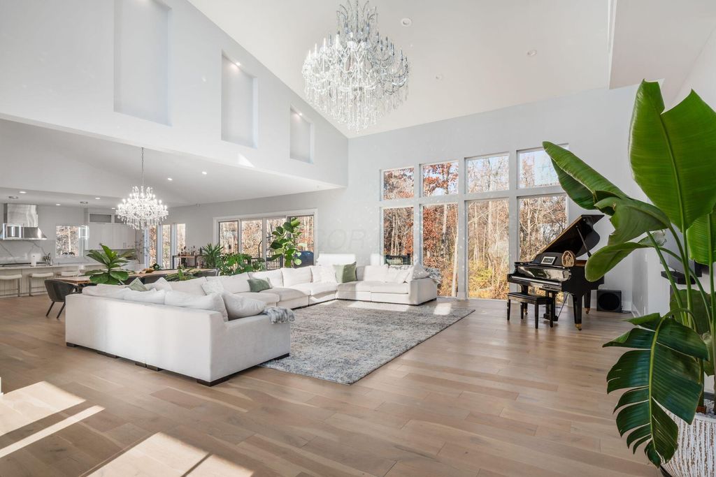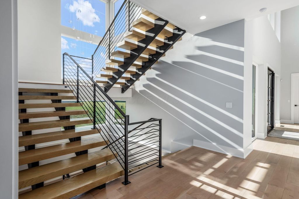 Luxury living at its finest awaits at 6427 Longview Dr., a stunning custom-built residence by one of the area's premier builders, perfectly positioned in the coveted Nelson Farms community within the prestigious Olentangy School District. Set on an expansive 4.7 acres, this exceptional home features 6 bedrooms, 6.5 bathrooms, and over 8,400 square feet of thoughtfully designed living space tailored for both refined everyday living and unforgettable entertaining. The main level showcases soaring ceilings, sun-filled living spaces, a gourmet kitchen enhanced by an adjoining prep kitchen and expansive walk-in pantry, and a luxurious first-floor primary suite with generous closets and a beautifully appointed spa-like bath. A guest suite is also located on the first floor, offering convenience and privacy for extended-stay guests or multi-generational living. The second floor showcases three generously sized bedrooms, each with its own ensuite bath, ensuring every family member and guest enjoys their own private retreat. This level also includes a dedicated office overlooking the great room, providing an inspiring and functional workspace with stunning architectural views. Car enthusiasts will appreciate the massive 4-car garage, thoughtfully designed with the space and height to easily accommodate vehicle lifts, allowing room for up to 8 cars without sacrificing functionality or convenience. The expansive walkout lower level extends your living and entertainment options, opening to beautifully landscaped grounds. This level includes a versatile bedroom perfect for a home gym or workout space, along with a private cedar sauna, a luxurious sanctuary designed for relaxation and rejuvenation. This remarkable property seamlessly blends elegance, comfort, and functionality, offering a rare opportunity to own a truly exceptional home on a stunning acreage setting. Schedule your private showing today and experience the unparalleled lifestyle that awaits.