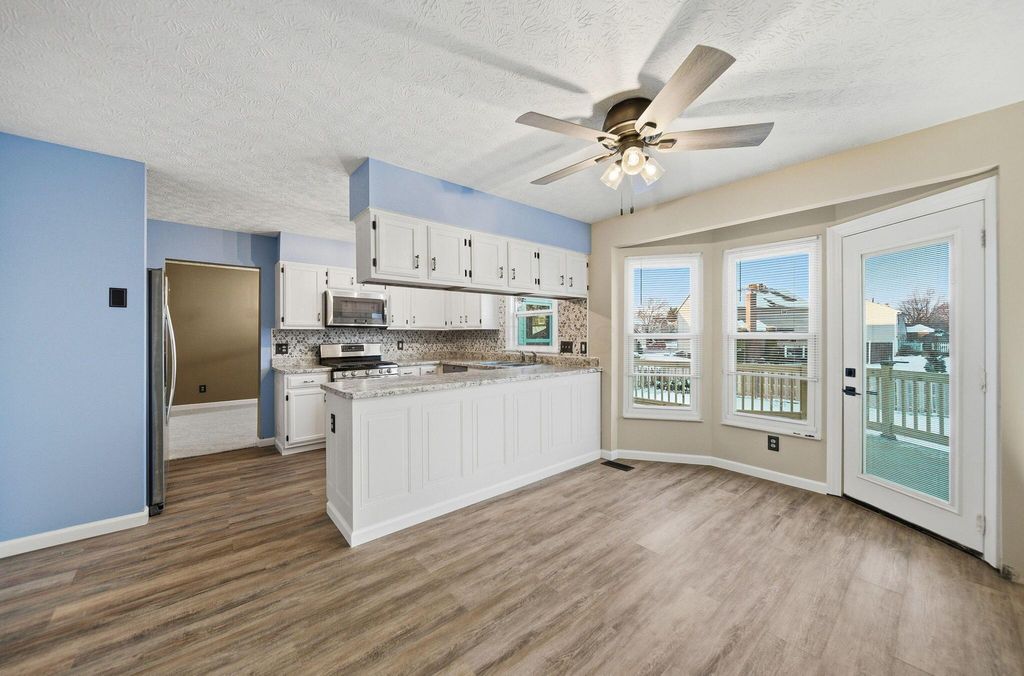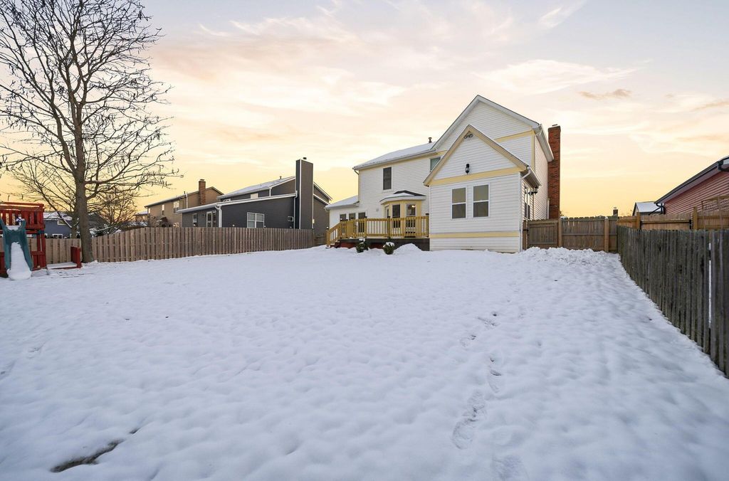 Welcome to this beautifully renovated home in a well-established neighborhood! This move-in ready property features walk out basement that adds additional sq footage with a fresh paint, new flooring throughout, and modern updates in every room. The spacious main level offers an inviting living room with brick fireplace, formal dining room, and a bright kitchen with white cabinetry, granite countertops, stainless steel appliances, and stylish backsplash. The primary suite boasts vaulted ceilings and a stunning renovated bathroom with dual vanity and glass-enclosed tub/shower. Additional bedrooms provide versatility for family, guests, or home office. The finished basement adds significant living space, perfect for recreation, entertainment, or flex space. Outside, enjoy the expansive fenced backyard with new deck, mature trees, and play structure"”ideal for gatherings and outdoor living. The attached two-car garage provides convenient parking and storage. This home combines modern comfort with practical living spaces in a desirable, established community. Don't miss this opportunity! Please note: Some photos have been virtually staged to showcase the home's potential.