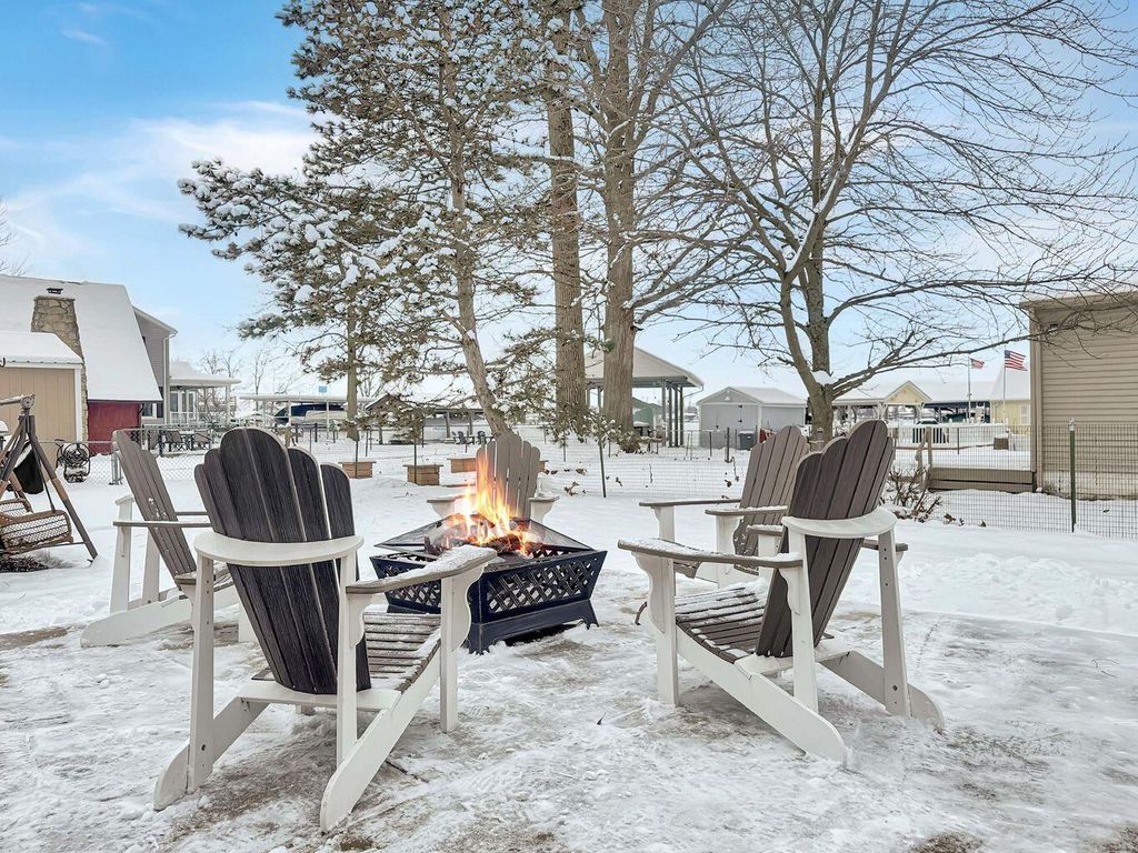 Welcome to your fully furnished lakeside retreat on beautiful Orchard Island, just a short walk to Spend-A-Day Marina. This turnkey 2-bedroom, 1 bath cottage (sleeps up to 7) is perfectly positioned only steps from the water, offering peaceful lake views from the open concept kitchen and living area as well as from the spacious back patio. Thoughtfully updated, the home features new concrete parking, new outdoor furniture, new fire pit, new fascia, gutters, downspouts, a new water softener, new well and sewer lines, and fresh furnishings throughout. Enjoy cozy evenings around the fire pit, grilling out with friends, or unwinding inside with a 55'' living room TV and TVs in each bedroom. The kitchen is equipped with stainless steel appliances including refrigerator, range, and microwave, and the home also includes a washer and dryer for convenience. An attached storage and workshop area provides additional space for lake gear and tools. Currently used as a successful short-term rental on Airbnb, this property is truly move in ready and offers a wonderful opportunity for a relaxing getaway, a primary home, or an investment property. Experience easy island living, just bring your bags and start enjoying the lake.