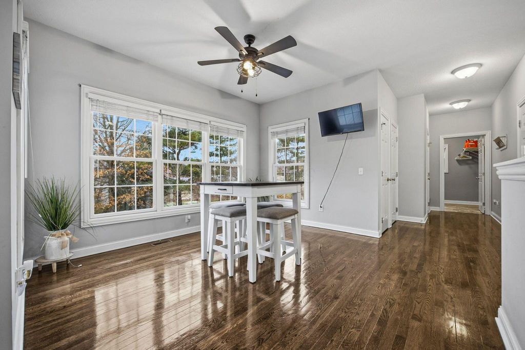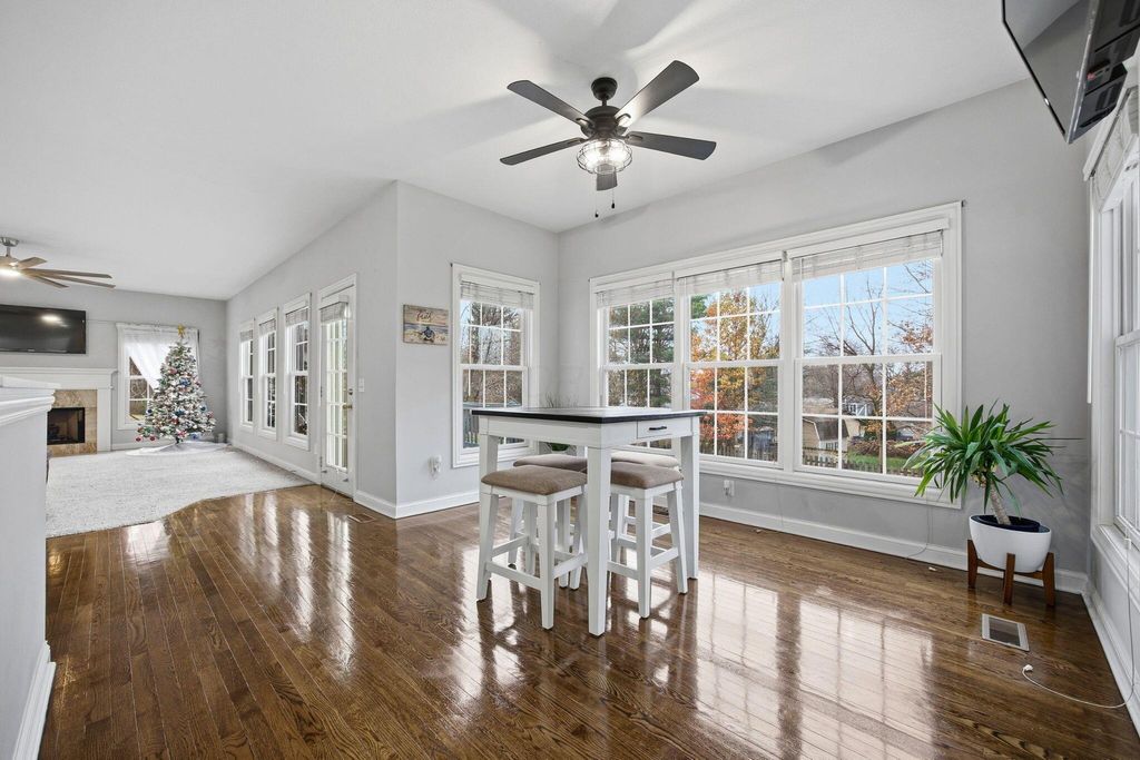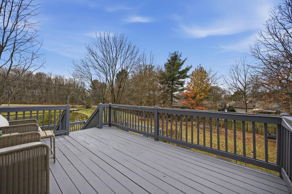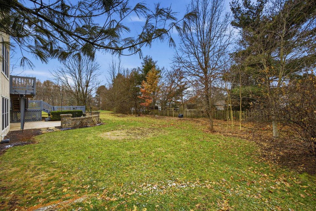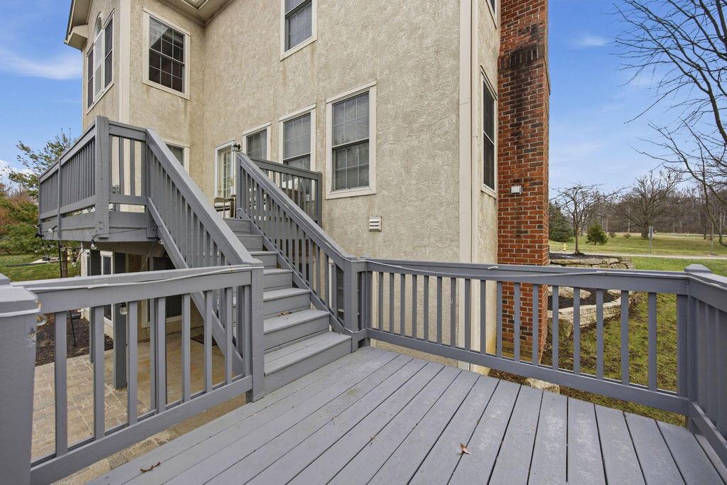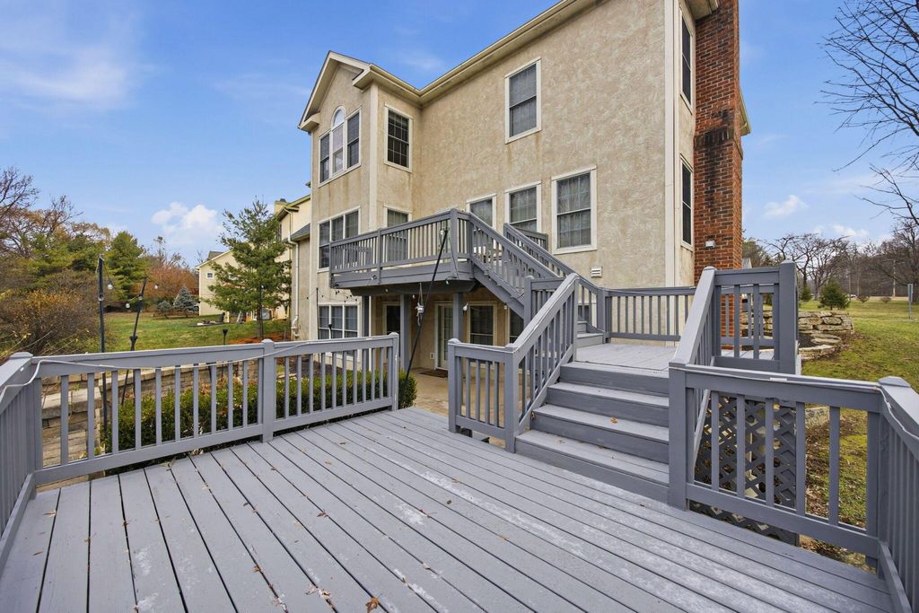 An entertainer's dream home featuring a corner lot with both wooded and fountain views. This more than 4,000 square foot home opens to a soaring entry way, dining room, second living room/office space, as well as a chef's dream kitchen with granite counters and backsplash, stainless steel appliances, including a gas range, two pantries, and beautiful hardwood floors, as well as first floor laundry and half-bath. The main open living room has a beautiful fireplace with a door leading out to the recently refreshed and painted three-tier deck. The upstairs boasts three spacious bedrooms with a jack and jill bath, walk-in linen closet, and a spacious primary suite with a bump out great for reading or lounging, an oversized bath with two walk-in closets, a linen closet, dual vanity, shower, and jetted soaking tub. The finished lower level is an multi-generational suite with a full bath and massive flex area with a walk-out to the private paver patio with lush landscaping. New roof, water heater, and radon mitigation system. Close to shopping, dining, and schools.