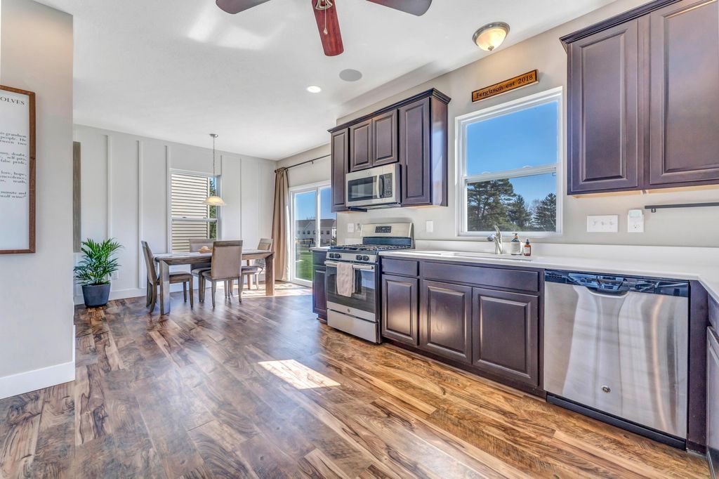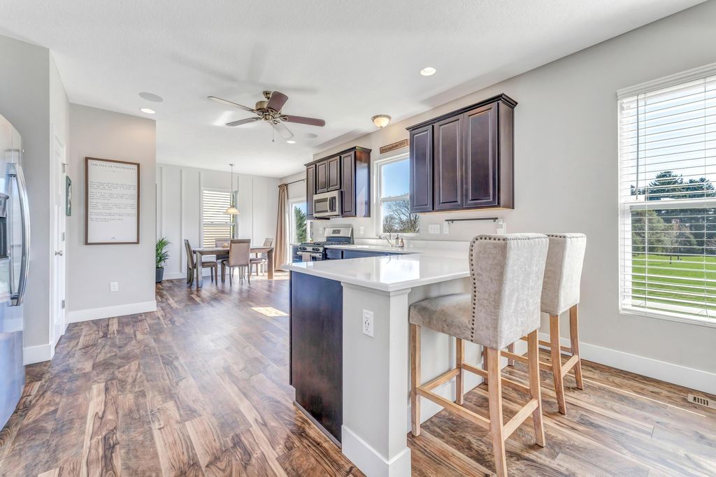 You won't want to miss this newer, beautifully updated 4-bedroom home designed for the host! The kitchen is the star, centered around a huge, 7-foot peninsula that provides endless counter space and seating. The open-concept design flows perfectly to the living areas. Additional features include a full basement with a full rough-in for unlimited expansion possibilities. Outside, enjoy coffee on the front patio or watch the kids play in the yard that backs up to lush green space. Located near three excellent schools, this home offers everything for the modern family.