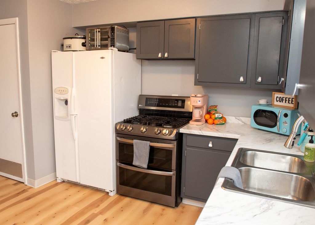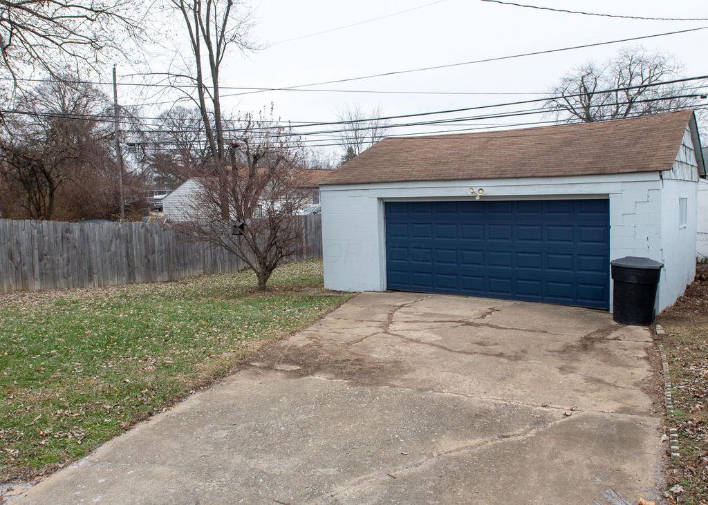 Welcome home to this beautifully updated single-family residence in Columbus, located minutes from Bexley. This cozy remodeled home offers 2 bedrooms and 1 full bathroom. Step into the inviting living room, highlighted by a charming bay window that fills the space with natural light and a fireplace that adds warmth and character. The updated kitchen features brand new cabinets and countertops, complemented by a delightful garden window. Recent improvements include new flooring throughout, fresh interior and exterior paint, and new light fixtures. Major system upgrades provide peace of mind, including a newer air conditioning unit and heater (both 5 years old), new hot water heater, new electric panel and outlets, and new garbage disposal. This home also offers a full basement, providing excellent potential for additional living space, storage, or home office. Outside you will find a partially fenced back yard and a spacious 2.5 car detached garage, ideal for vehicles, tools, or hobbies. This move-in-ready home has thoughtful updates and flexible space. Don't miss the opportunity to make it yours!