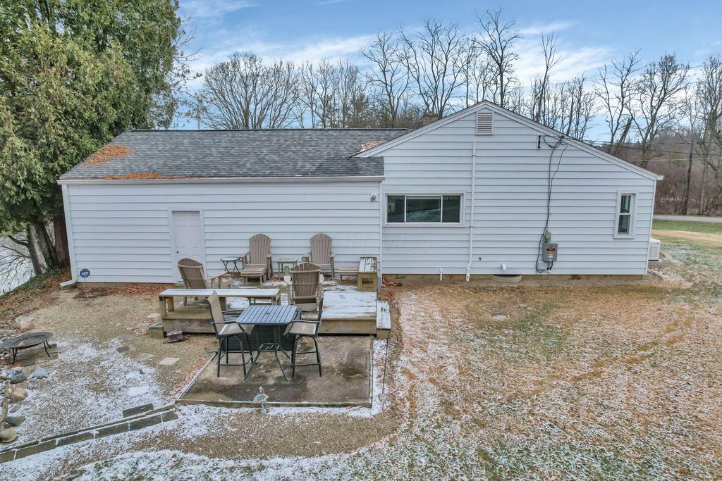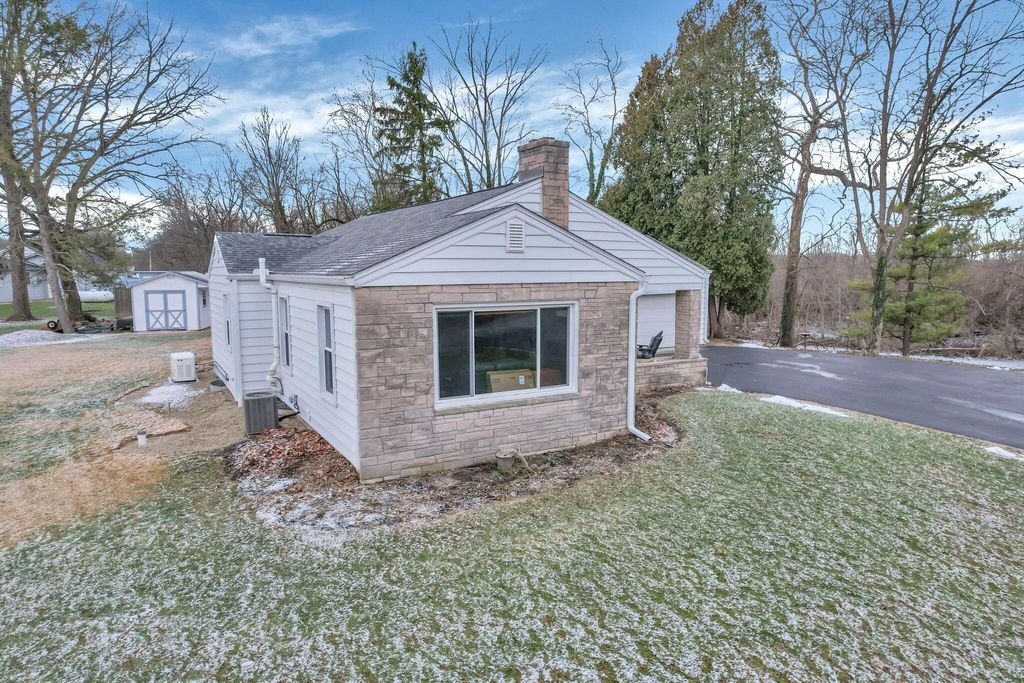 THIS VIEW!! An absolutely beautiful view of the Big Darby with access for canoeing, kayaking. Custom built 2 BR/1 BA home with huge kitchen & living room with stunning stone fireplace and built in bookcase. Basement has one bedroom, sitting area, storage & laundry area. 1.4 acres with frontage along the Big Darby Creek, 2 storage sheds & deck. Front porch to relax & enjoy the view.